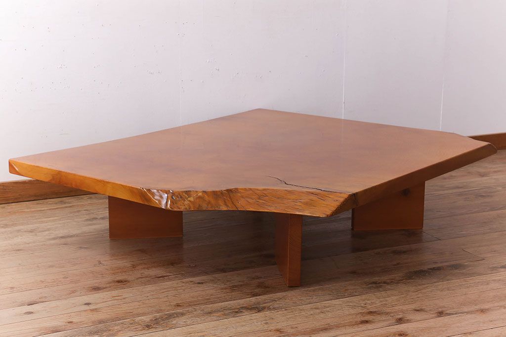 ラフジュ工房> 民芸家具 > 中古 松材一枚板 特大座卓(センターテーブル、リビングテーブル、ローテーブル)(R-023385)
