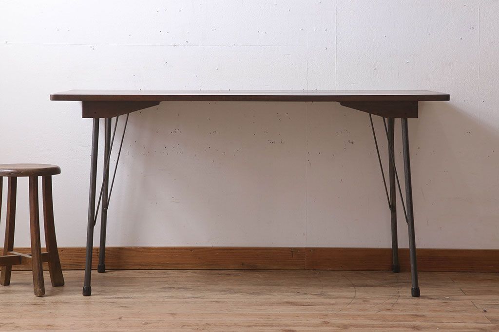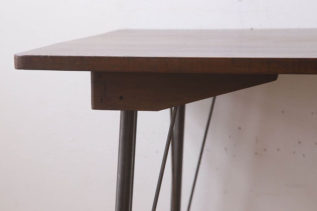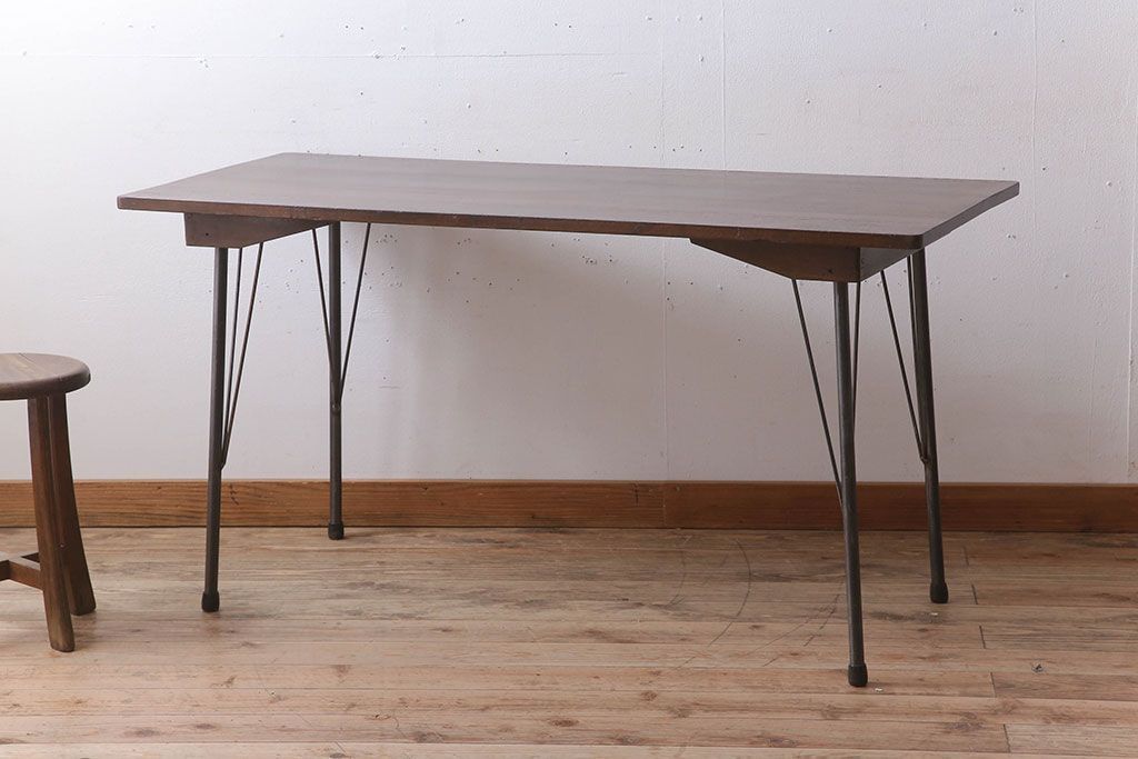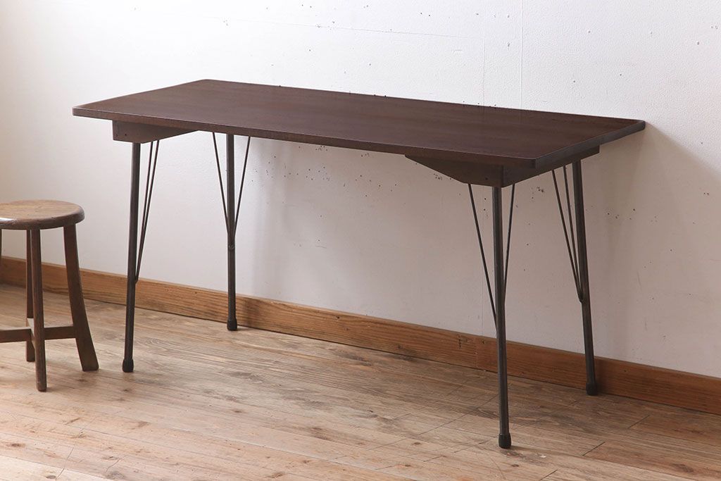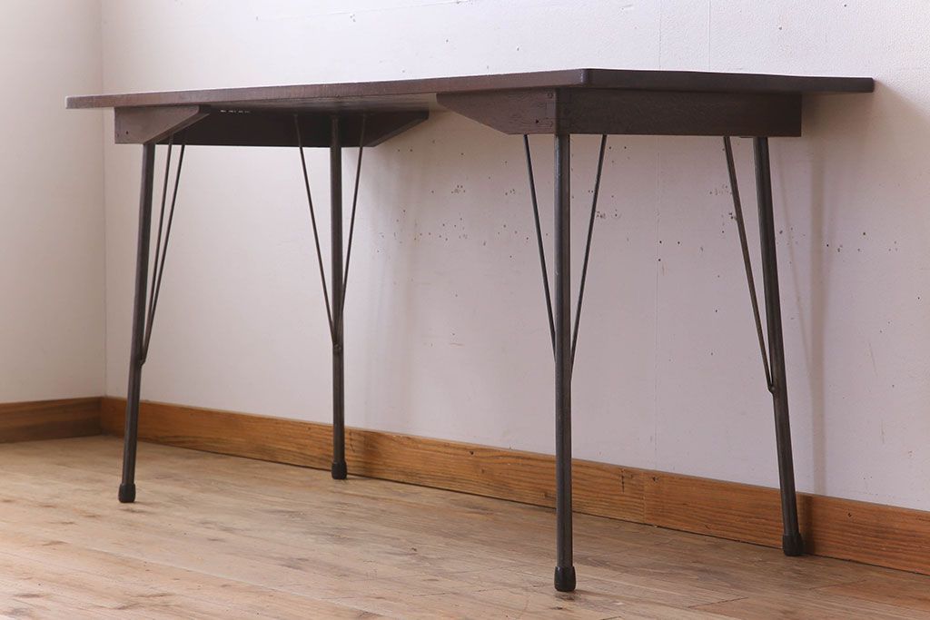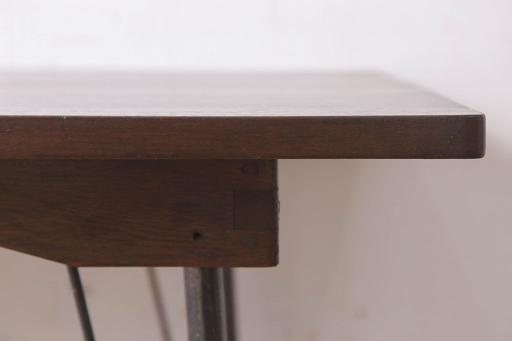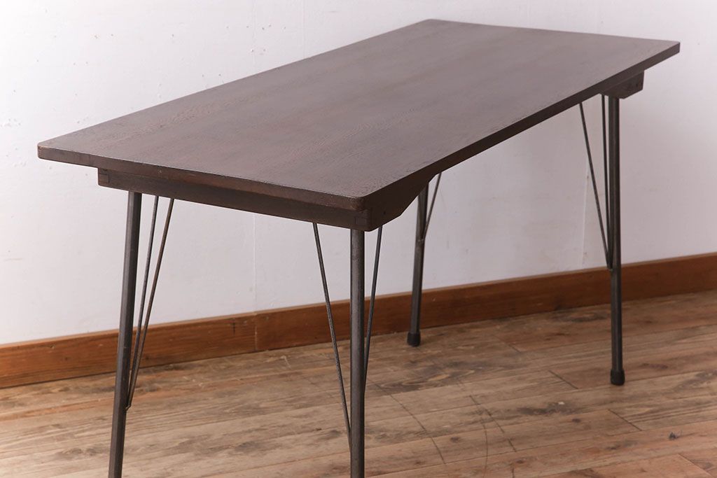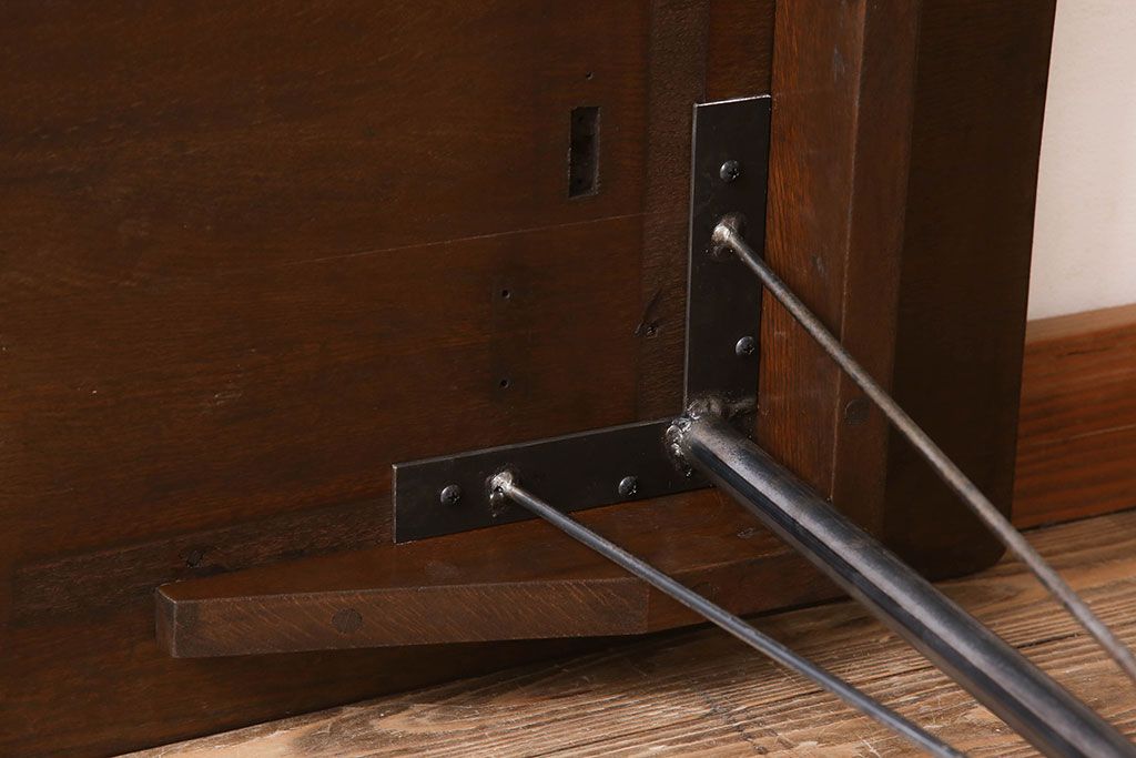 アンティーク家具 天板ナラ古材 アンティーク シンプルな鉄脚テーブル(2)