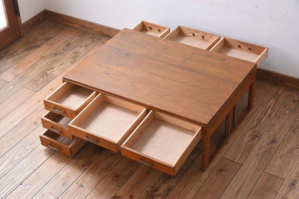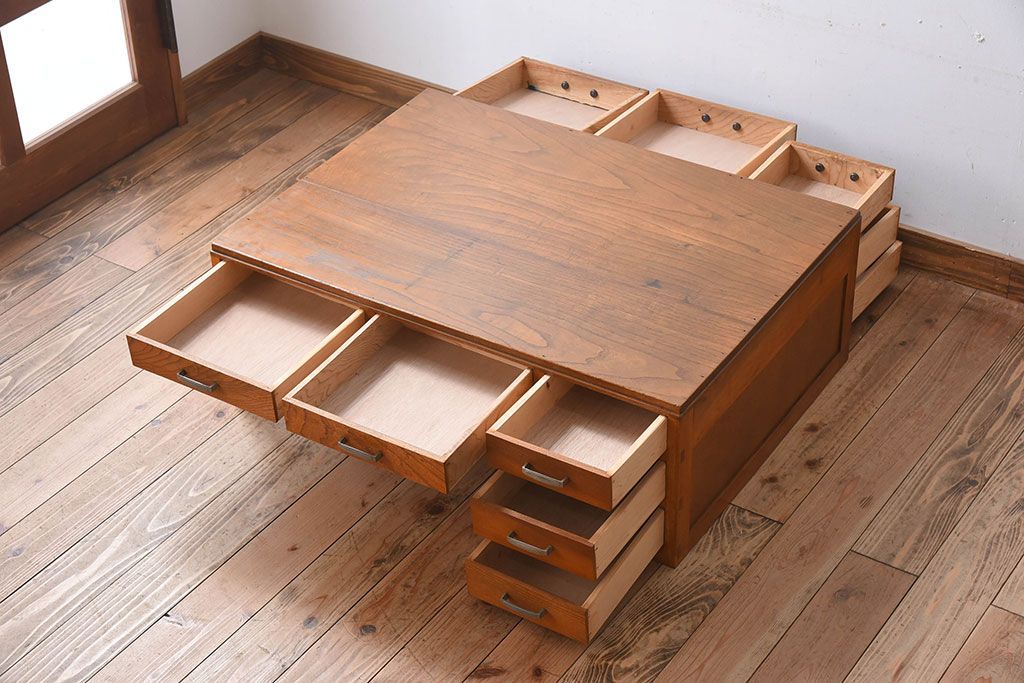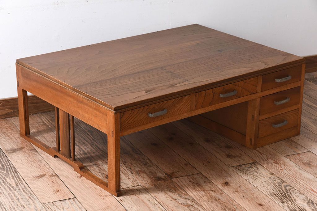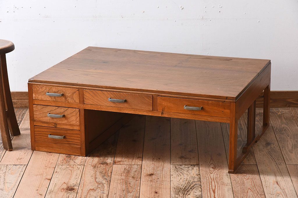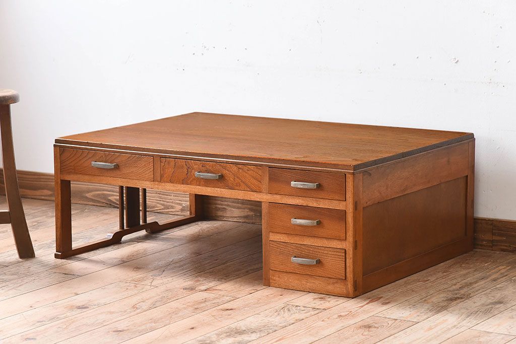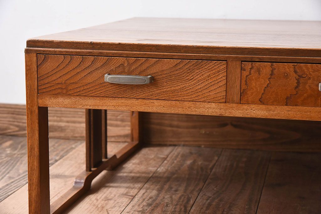 ラフジュ工房> テーブル> カフェテーブル・コーヒーテーブル > アンティーク家具 和製アンティーク 栗材製 両面引き出しの文机