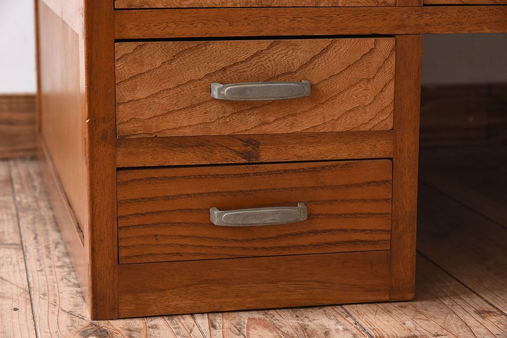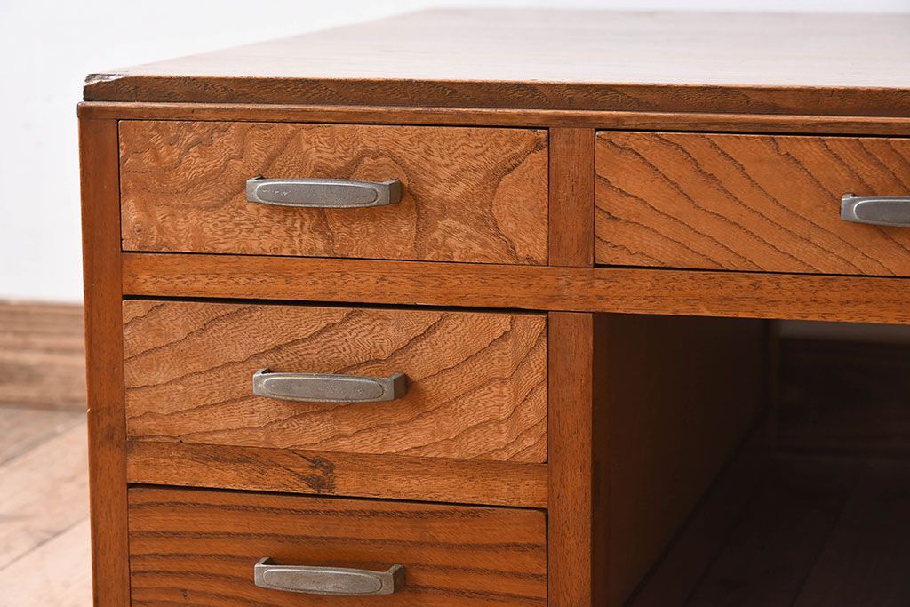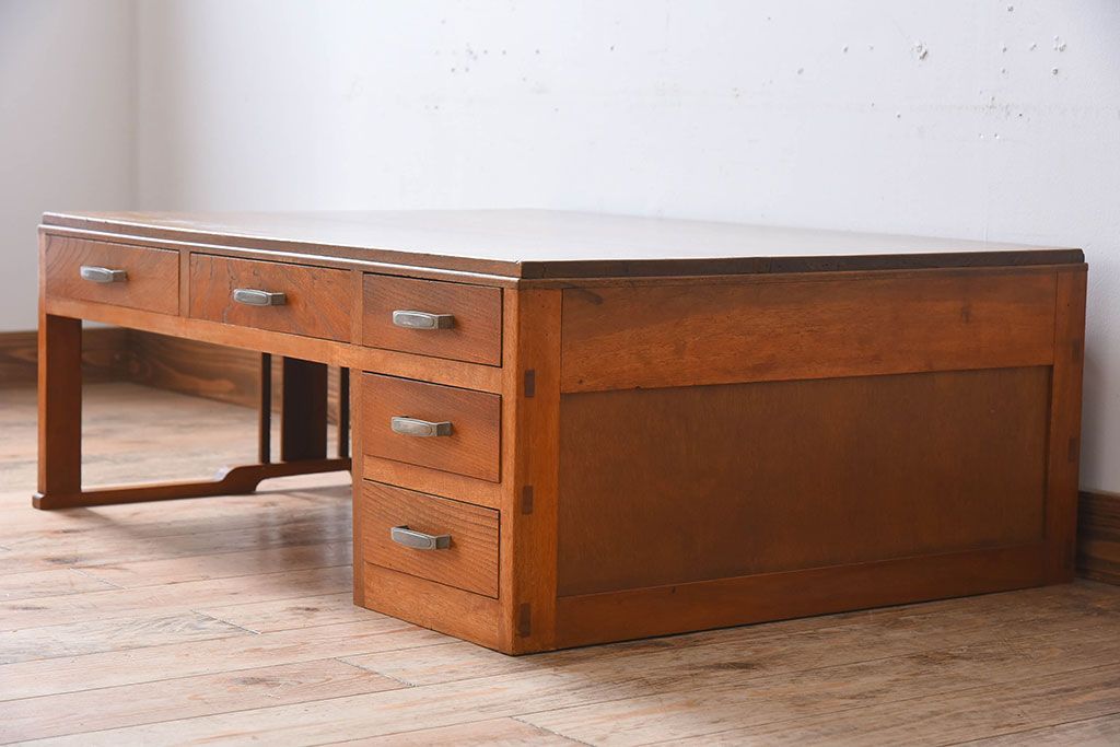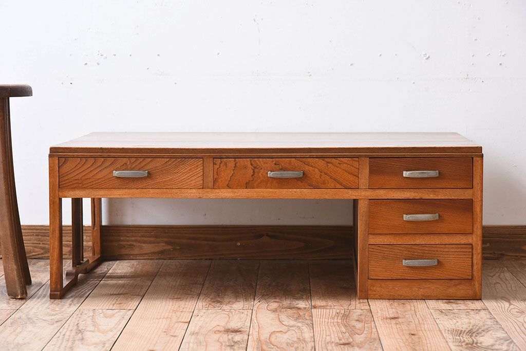 アンティーク家具 和製アンティーク 栗材製 両面引き出しの文机