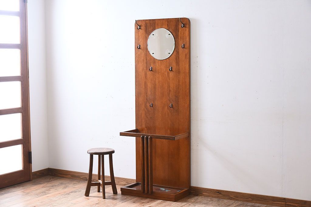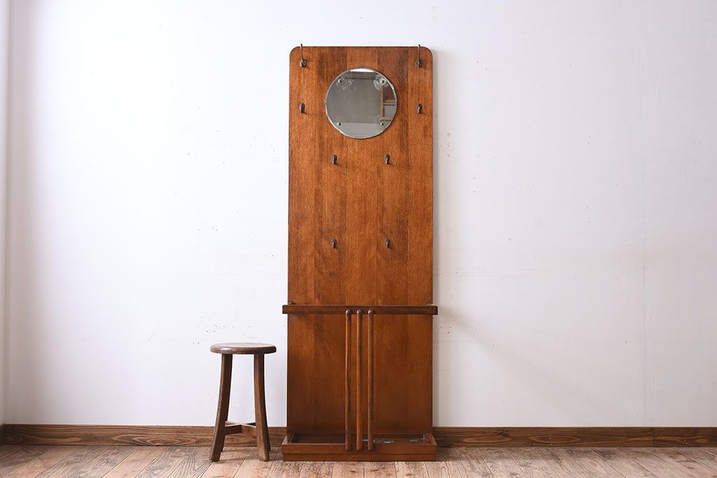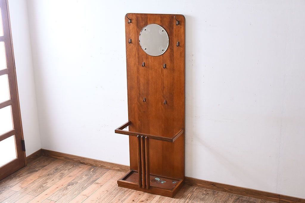 アンティーク雑貨 ビンテージ ミラー付きホールハンガー(帽子掛け・傘立て)