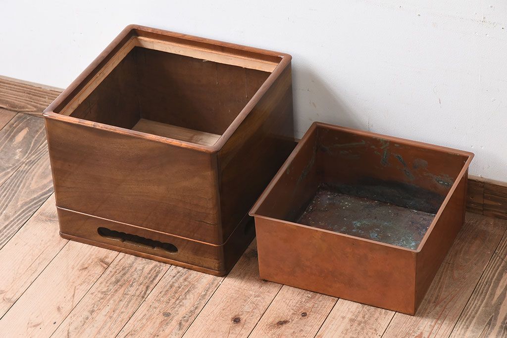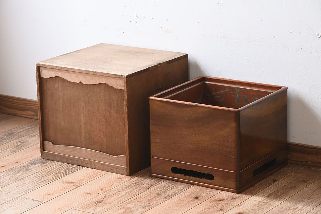 アンティーク雑貨 共箱 高級品 指物 桑無垢材のアンティーク火鉢