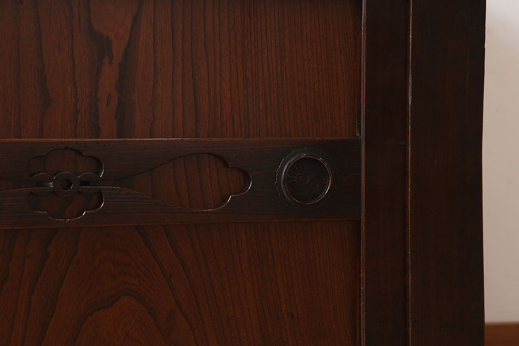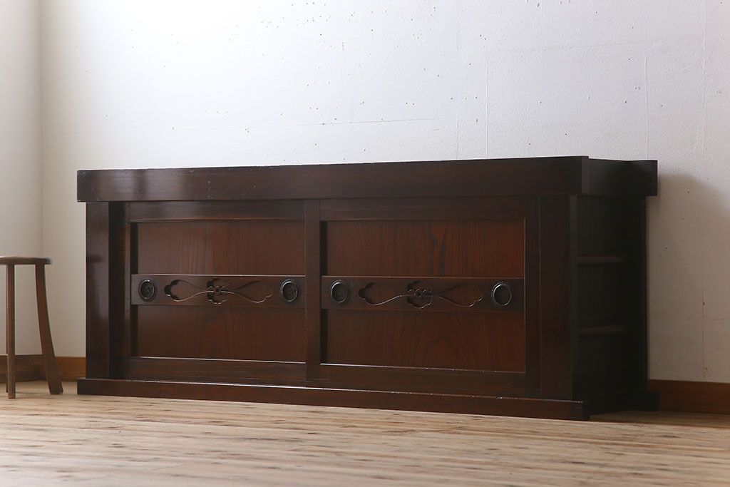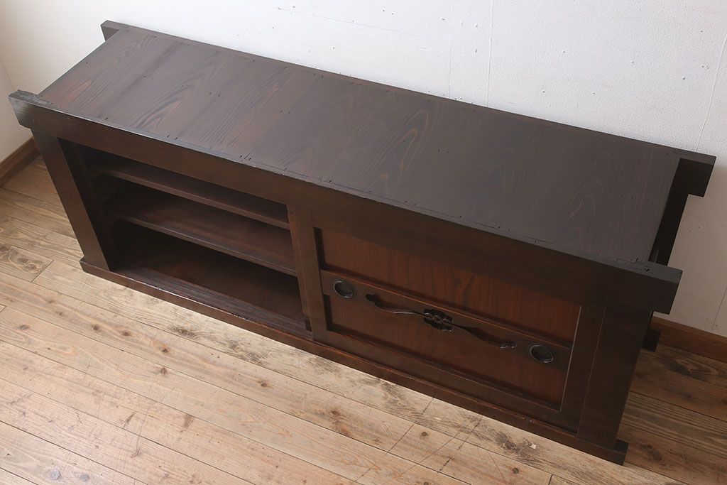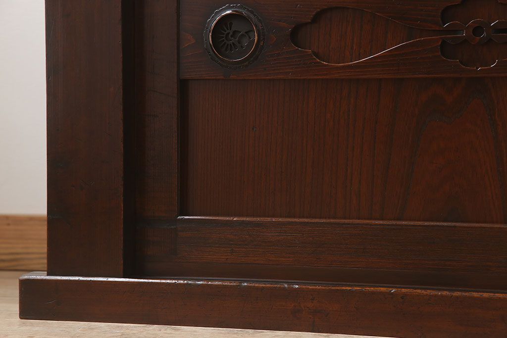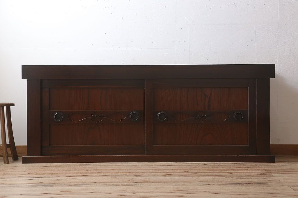 アンティーク家具 和モダン 鏡板欅材!六尺 明治期の水屋箪笥ローボード(テレビ台、キャビネット、収納棚)