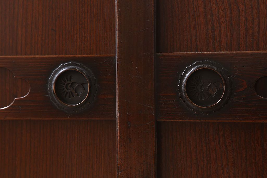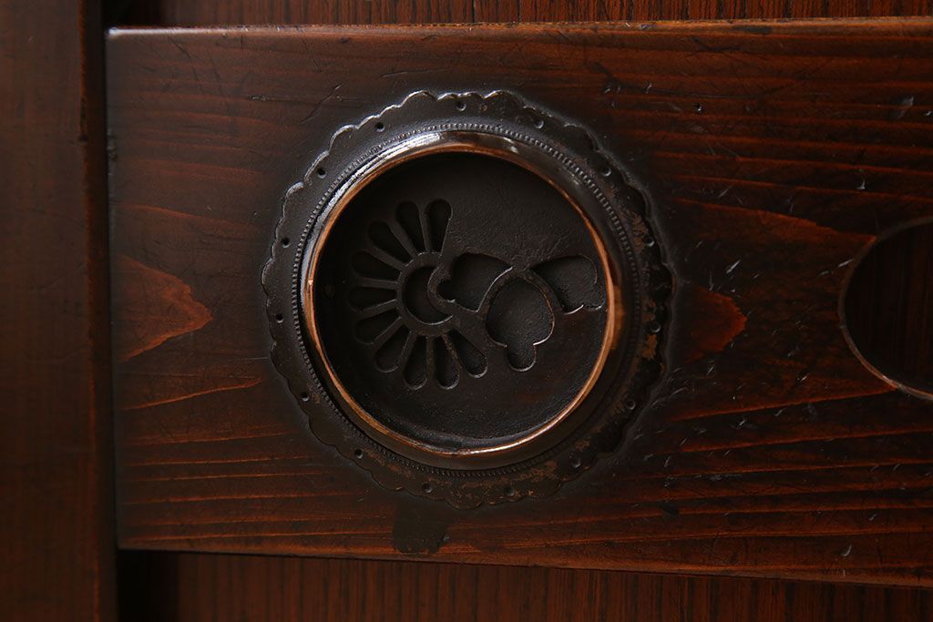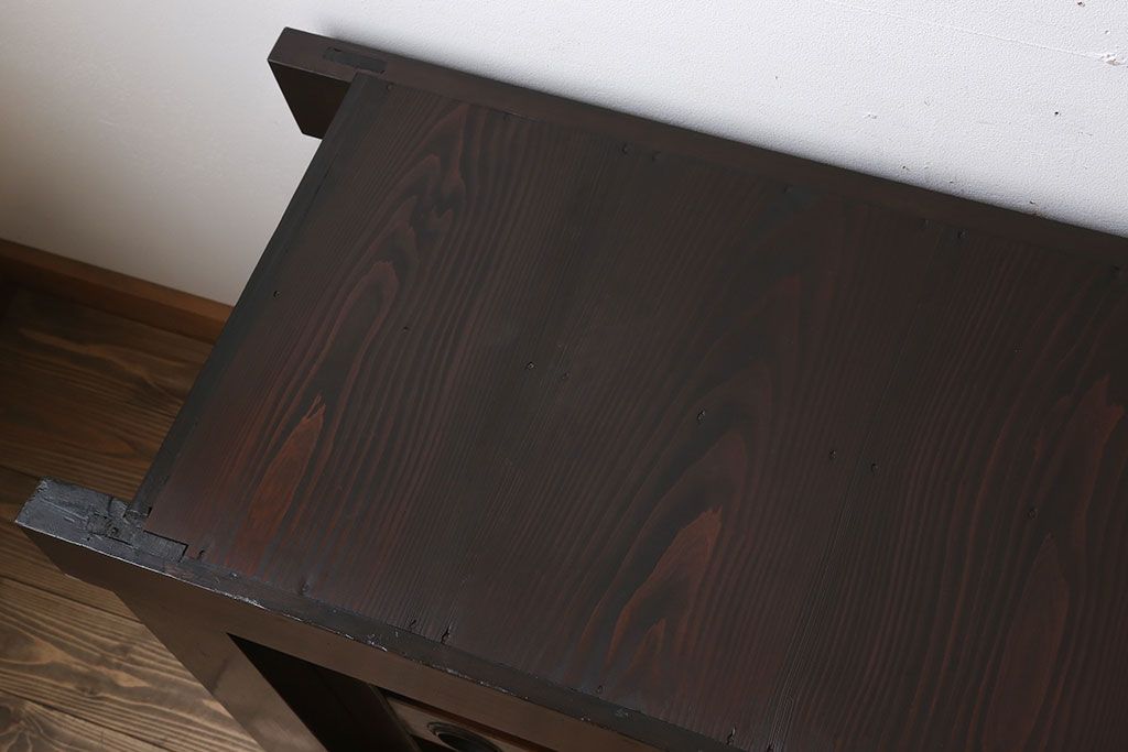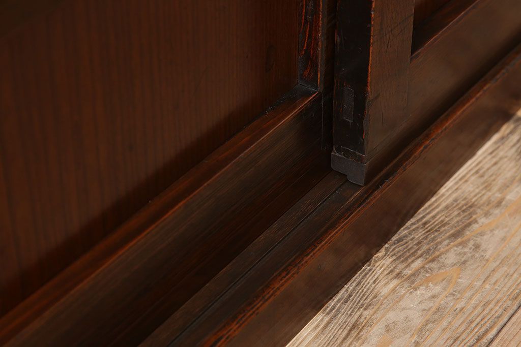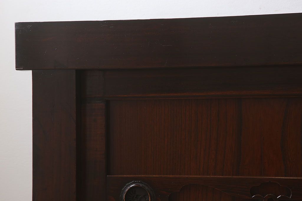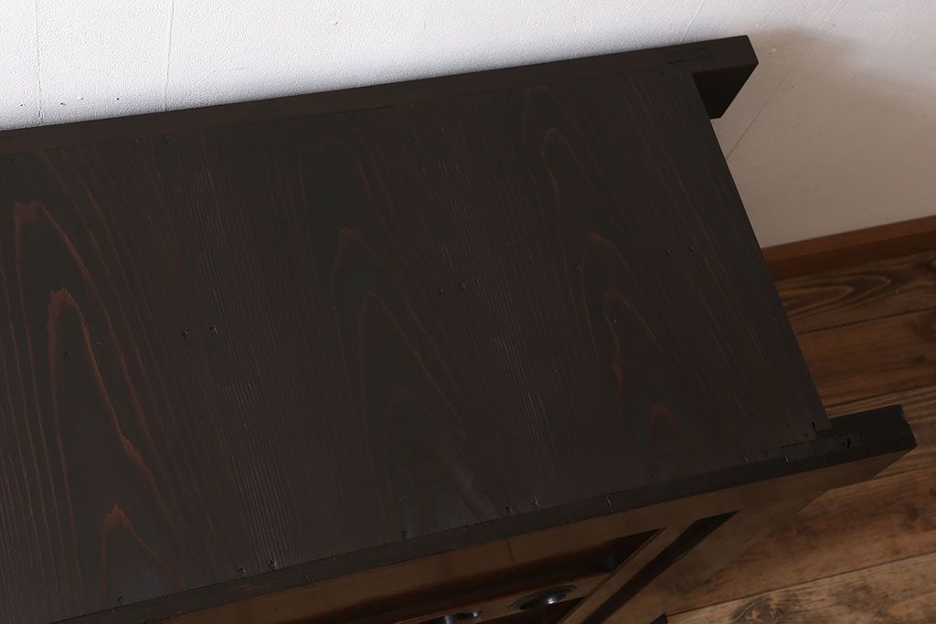 アンティーク家具 和モダン 鏡板欅材!六尺 明治期の水屋箪笥ローボード(テレビ台、キャビネット、収納棚)