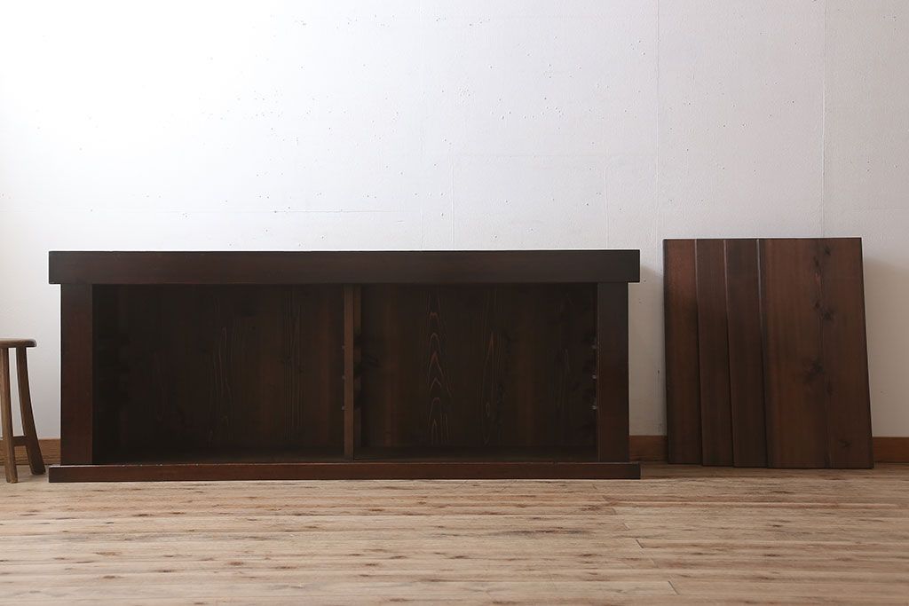和モダン 鏡板欅材!六尺 明治期の水屋箪笥ローボードです。