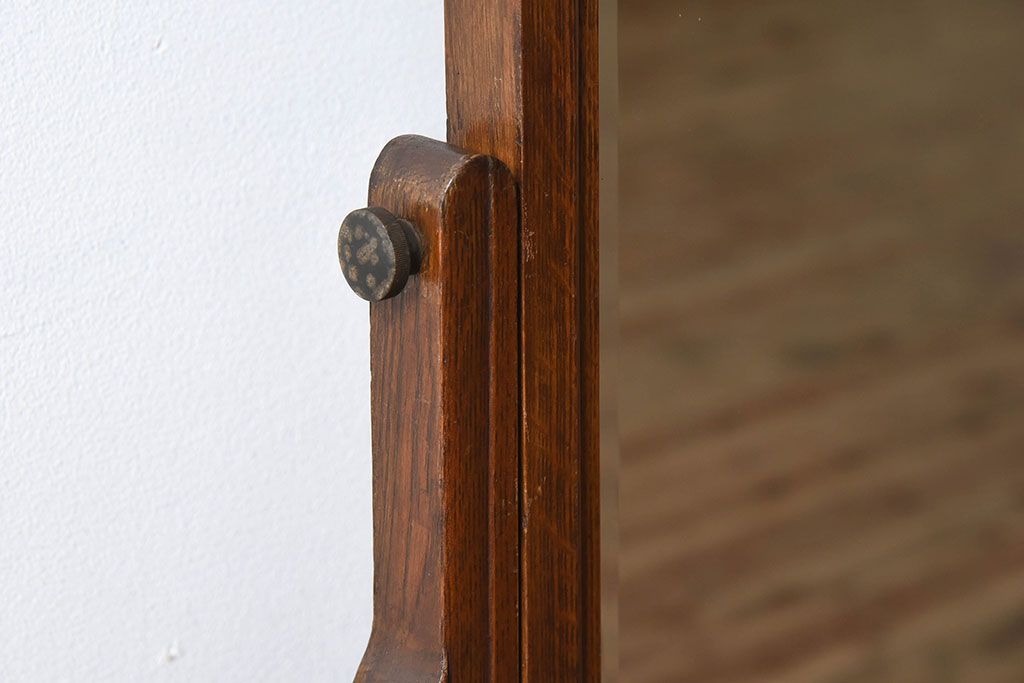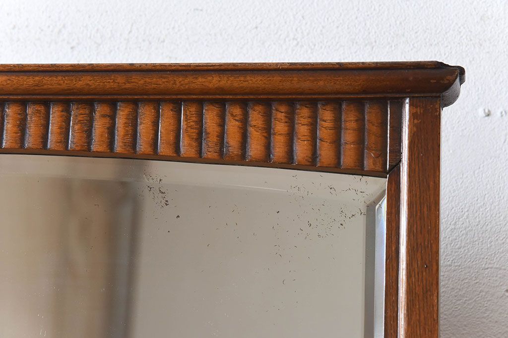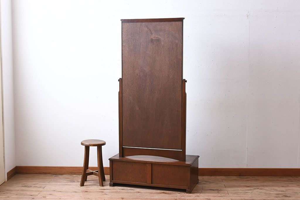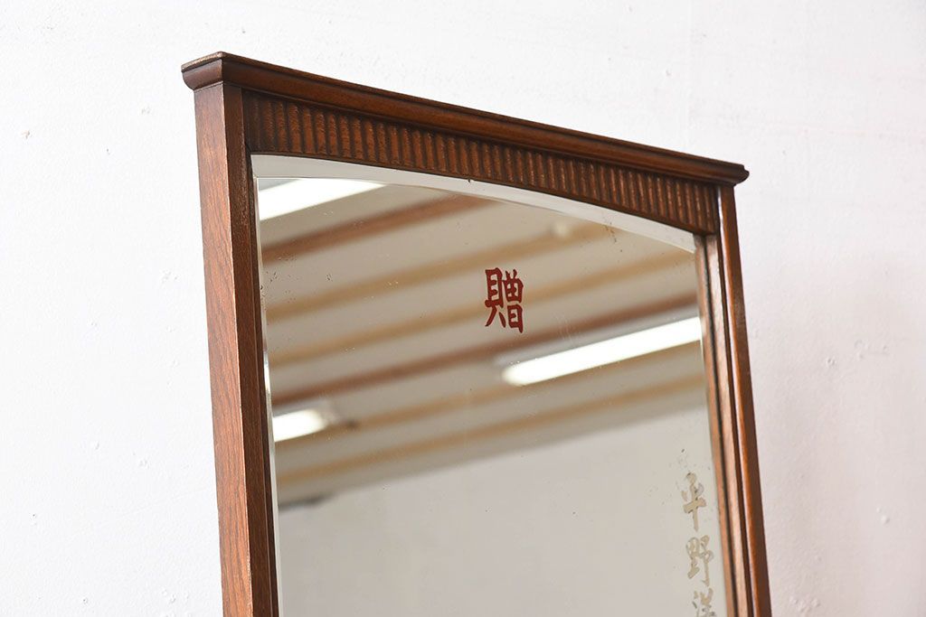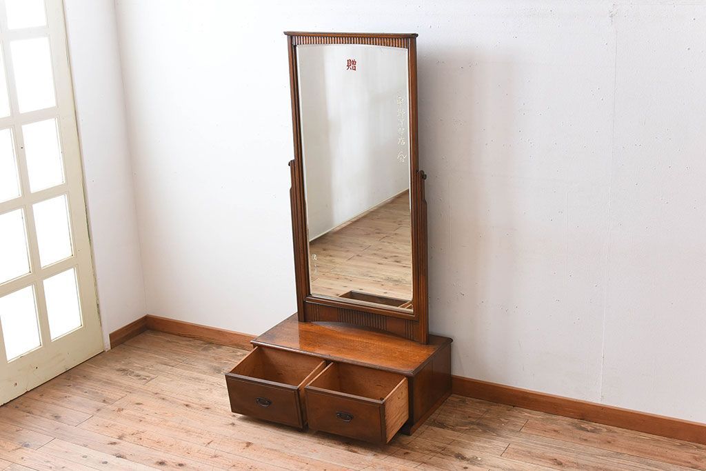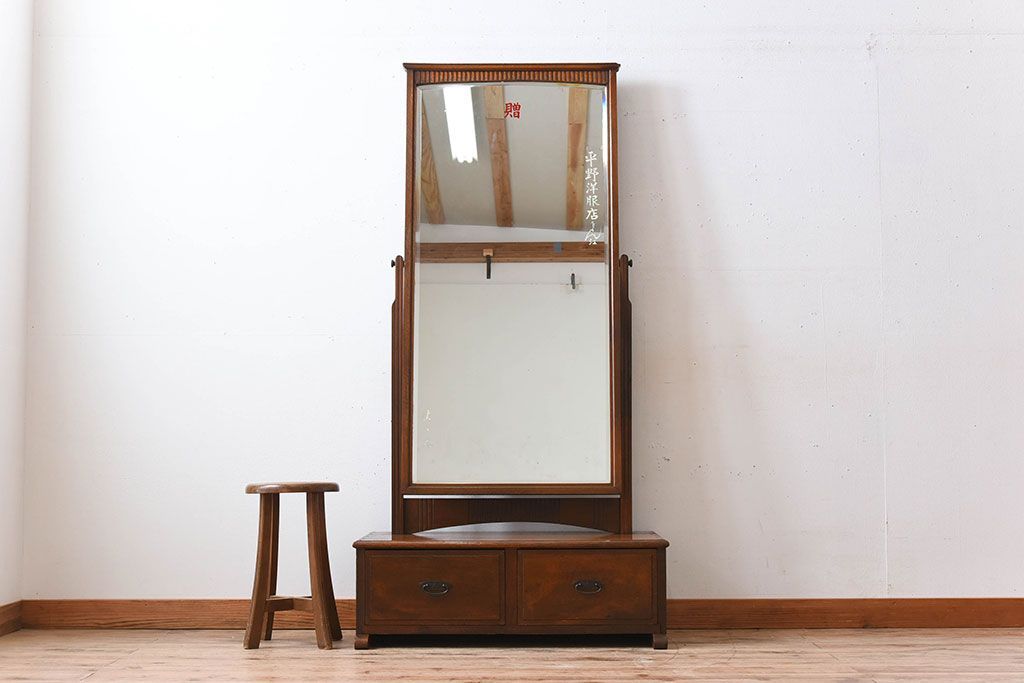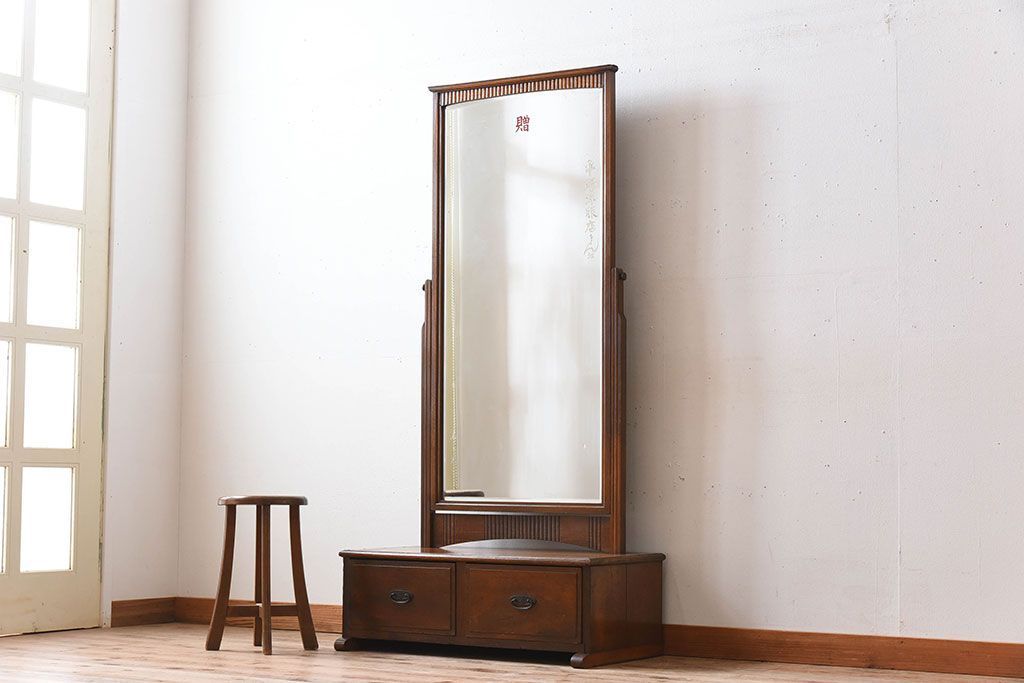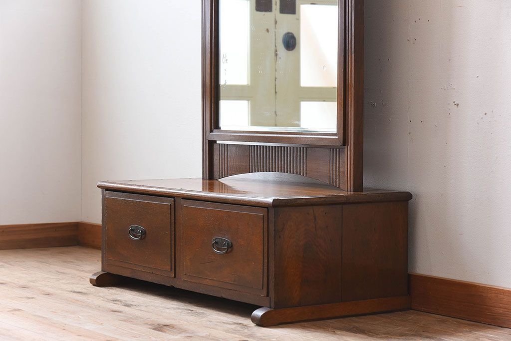 大正〜昭和期に作られた、和製アンティークの鏡台です。大正ロマンの雰囲気を感じさせる、和洋折衷なデザインが魅力的です。ドレッサーとしてだけでなく、鏡のサイズが大きいので全身の身支度を確認出来る姿見としても活躍しますよ。どこか日本らしく懐かしさを感じさせるこちらのお品は、レトロな空間や、和室などにいかがでしょうか。