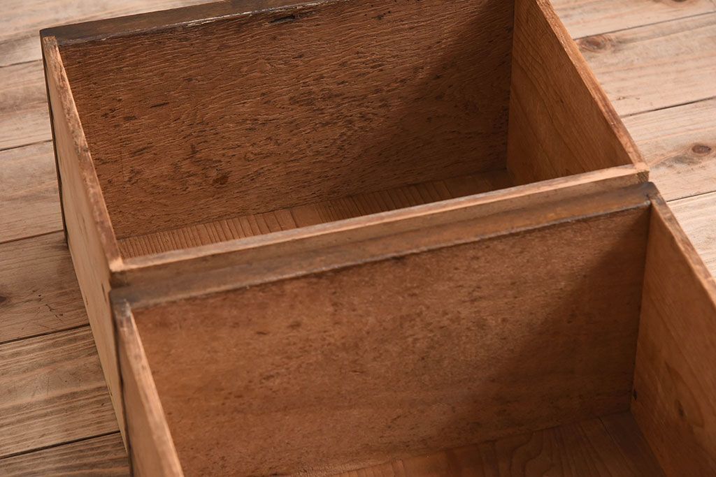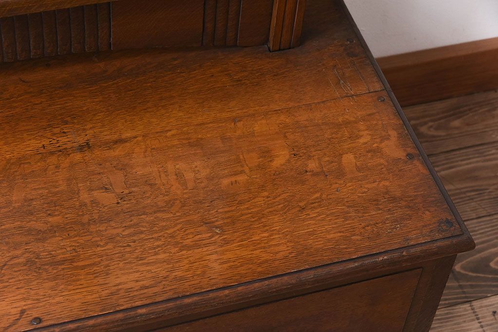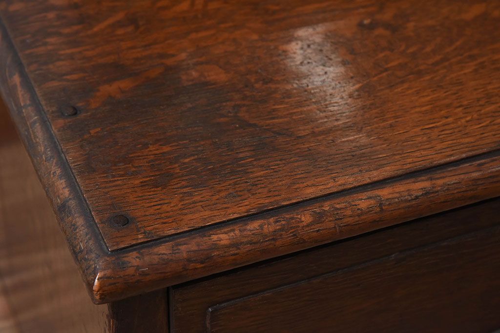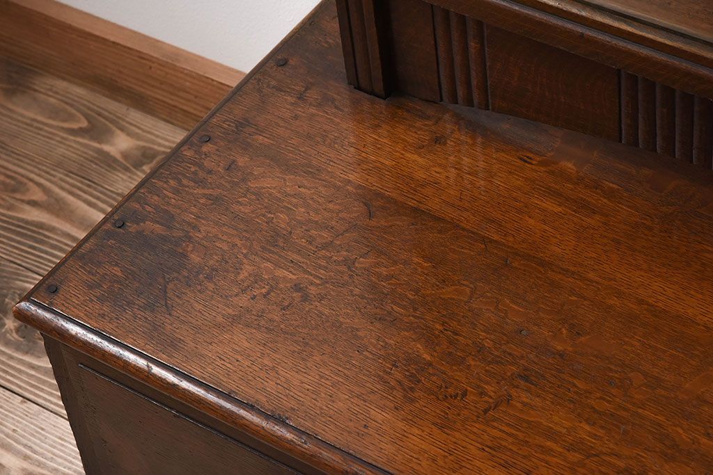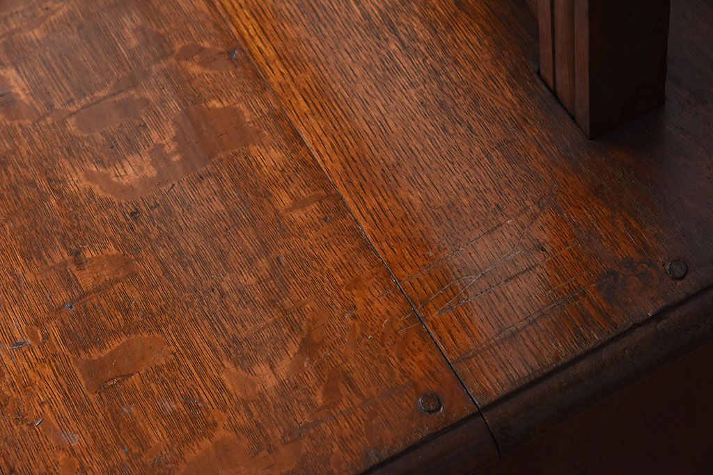 天板からは木の美しい色味と味わいが感じられます。使い込まれた木の色合いは、新品では感じられないアンティーク家具ならではの魅力です。