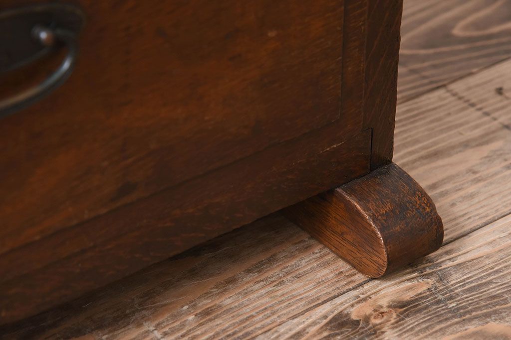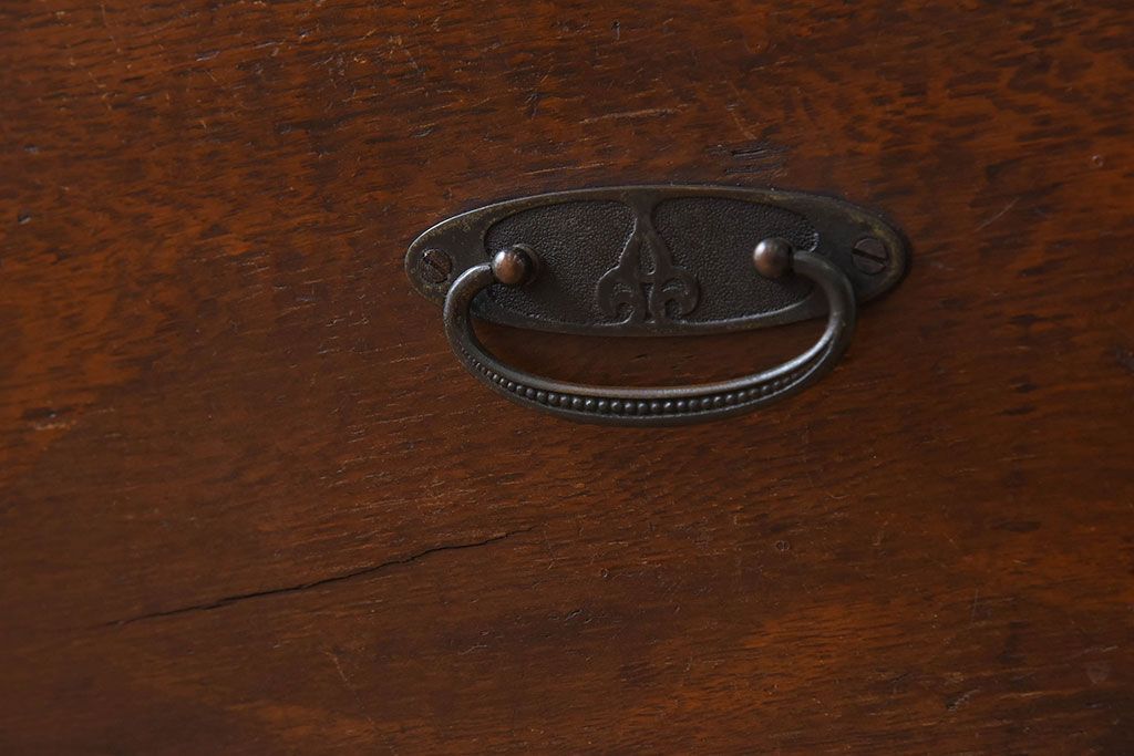 取っ手は蕨手(わらびて)と呼ばれる形のデザインです。素朴さと金具の色合いが家具の雰囲気とマッチしています。
