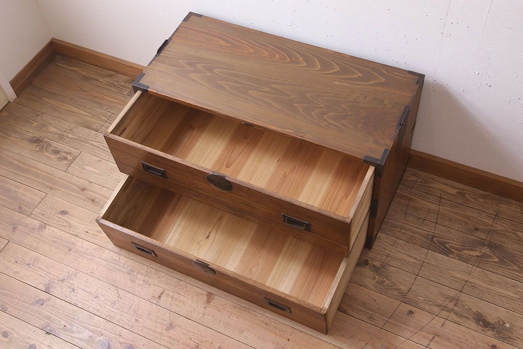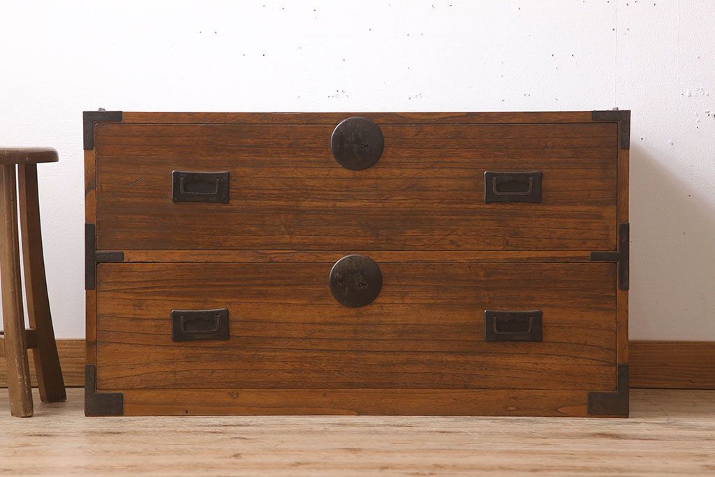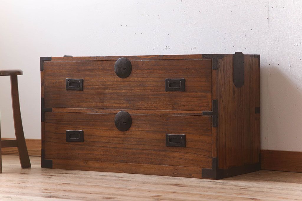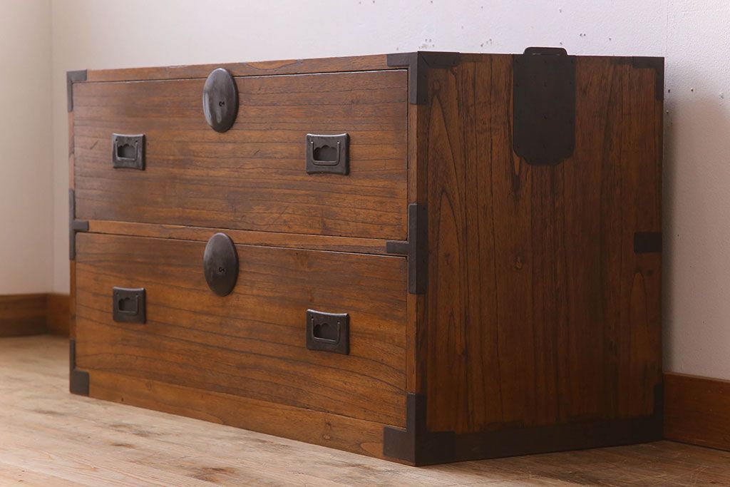ラフジュ工房> 和箪笥 > アンティーク家具 シンプルな古い木製の箪笥ローボード(衣装箪笥)