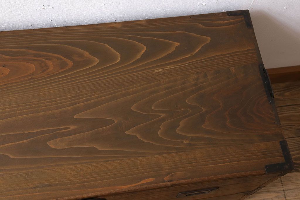 ラフジュ工房> キャビネット・戸棚> テレビ台・ローボード > アンティーク家具 シンプルな古い木製の箪笥ローボード(衣装箪笥)