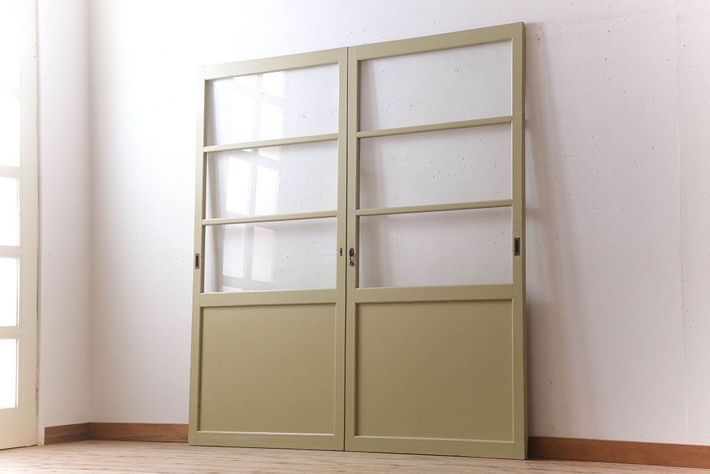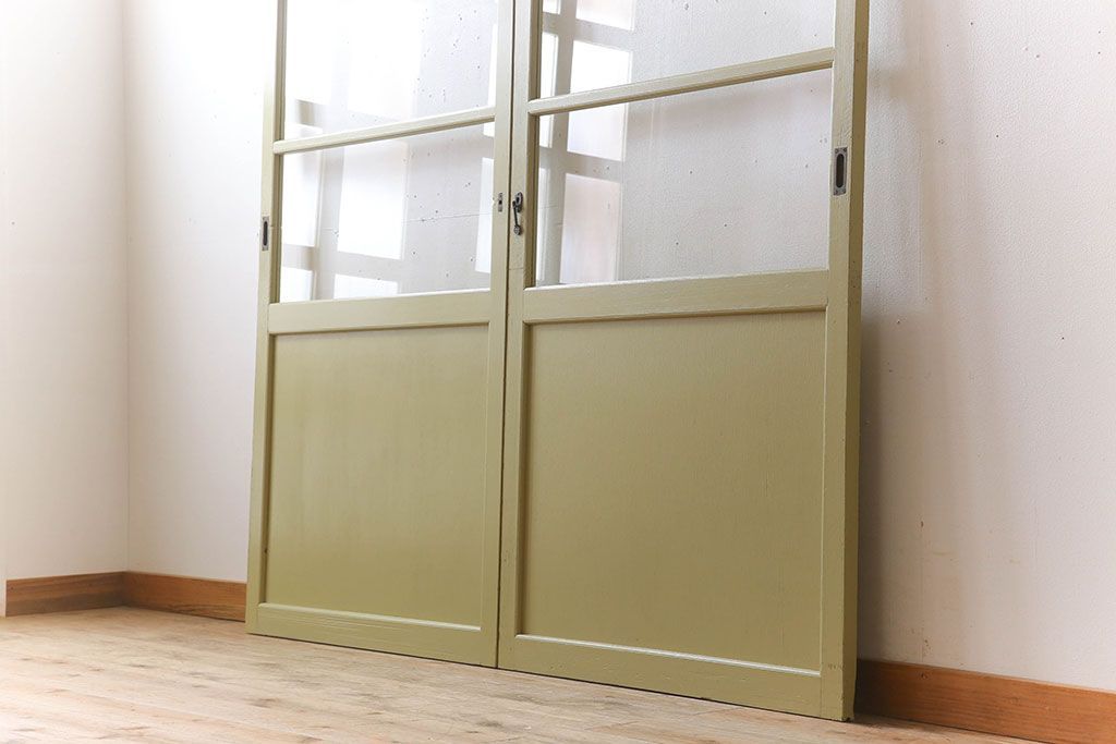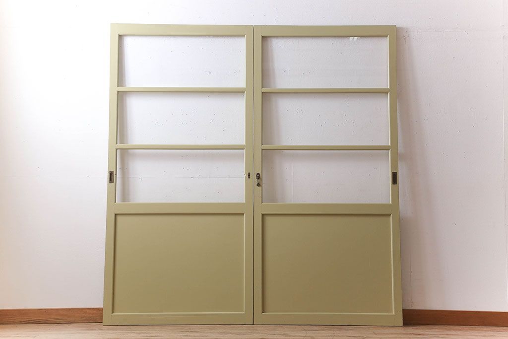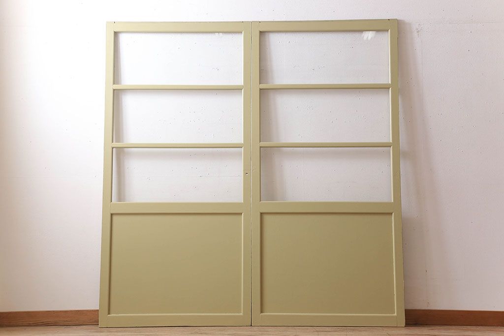 アンティーク 背が高いペイントガラス戸2枚セットです。