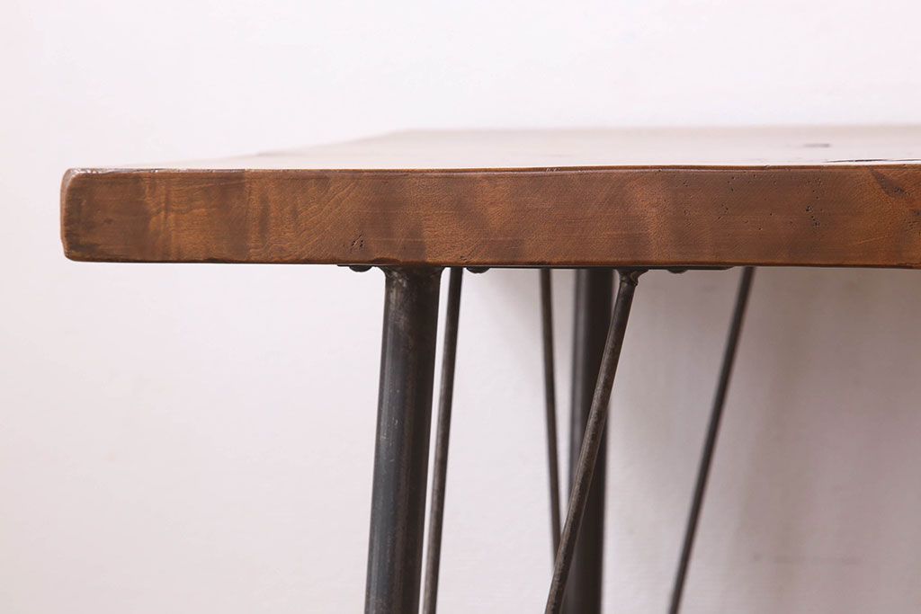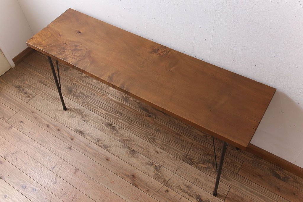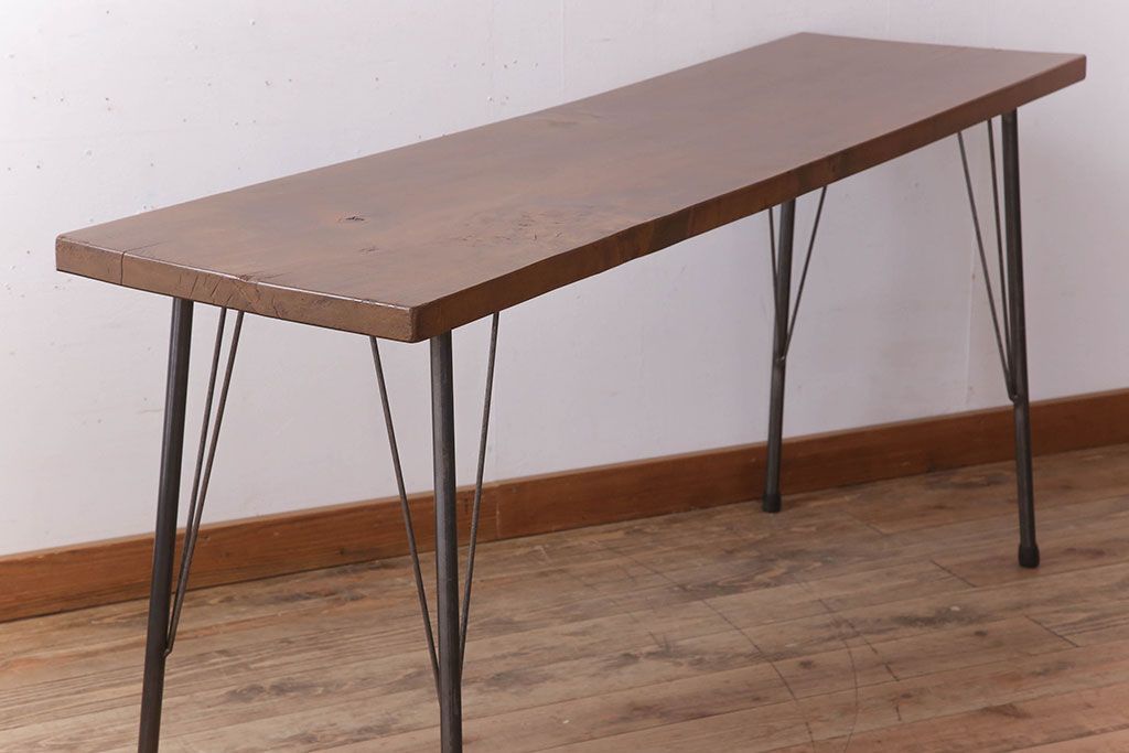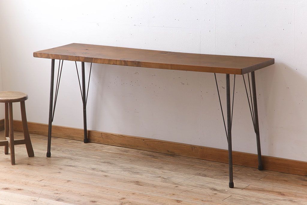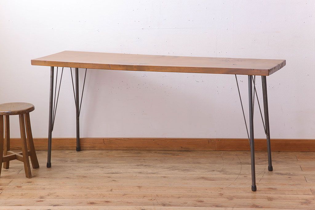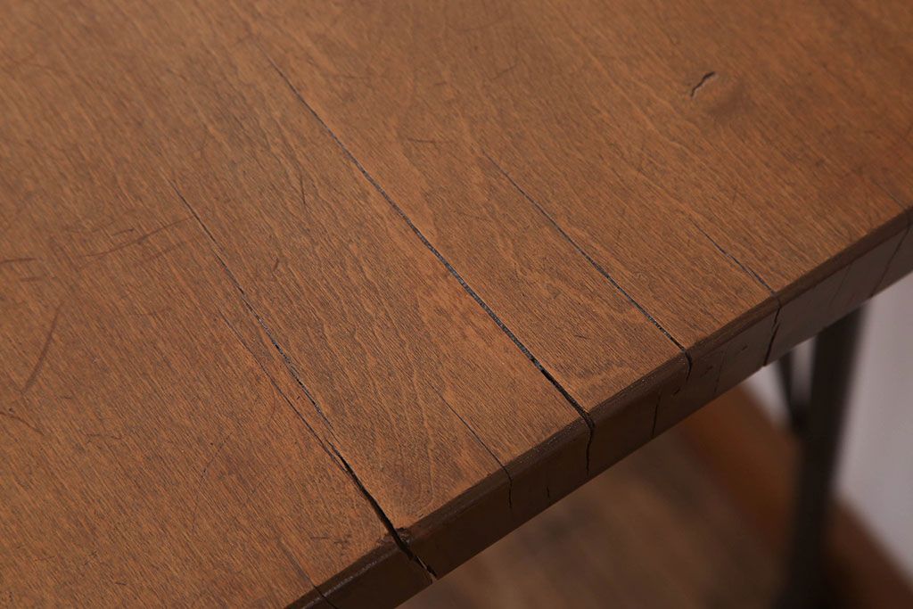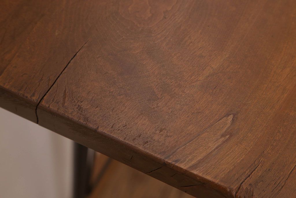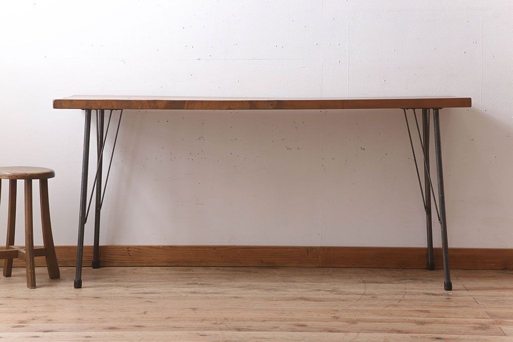 アンティーク家具 天板一枚板 栃の木材 アンティーク シンプルな鉄脚テーブル