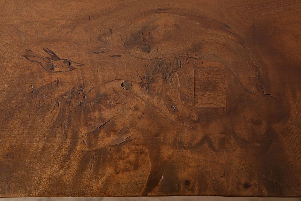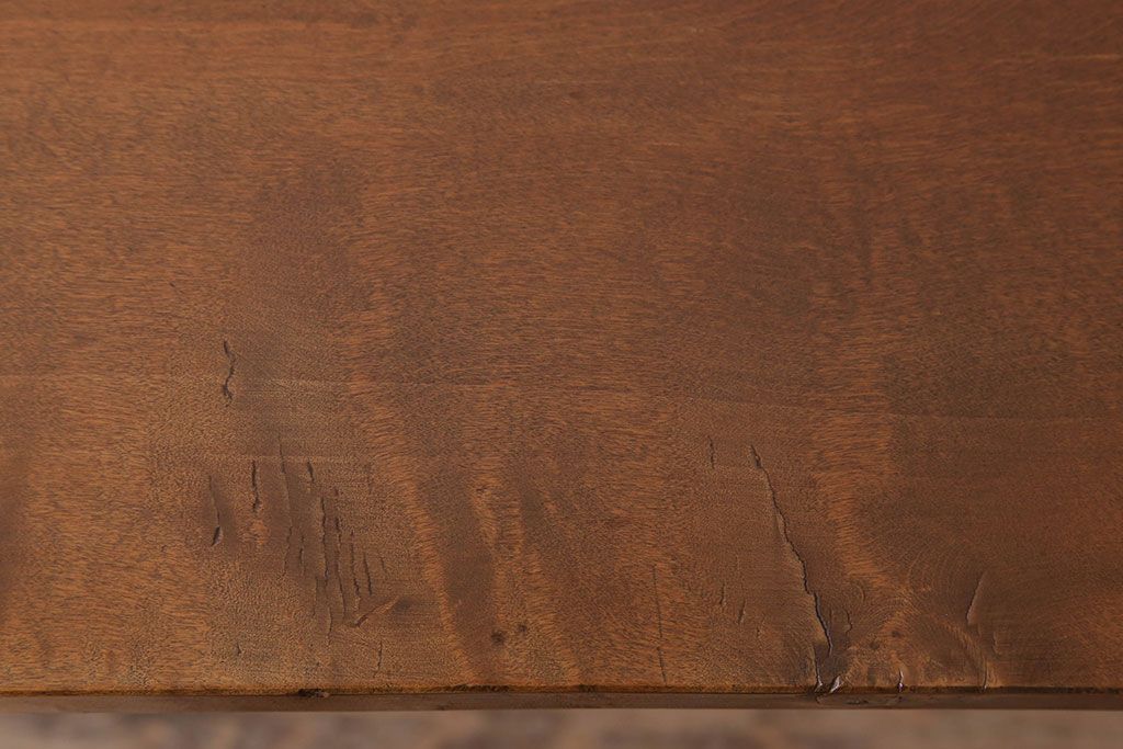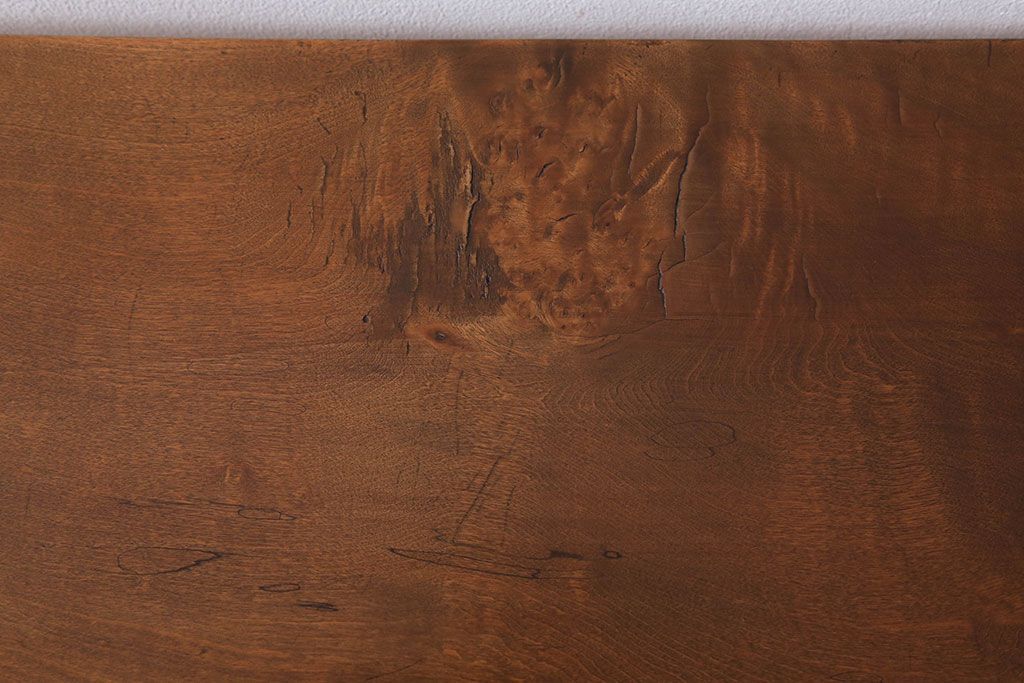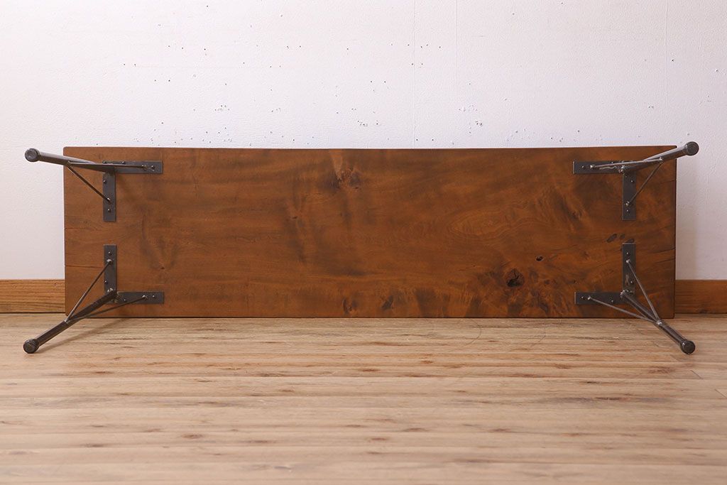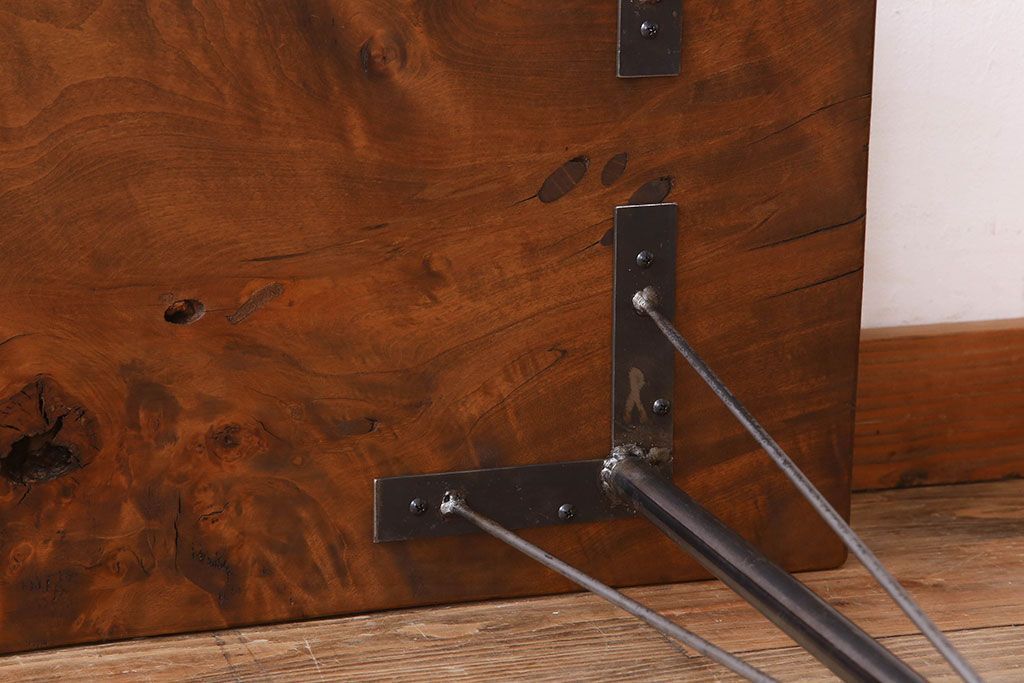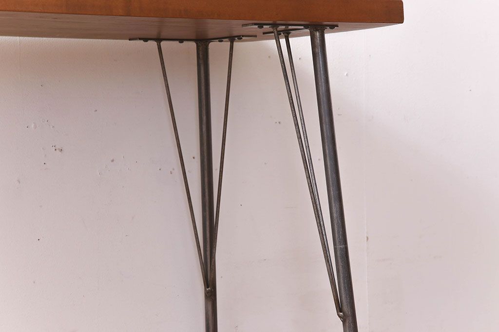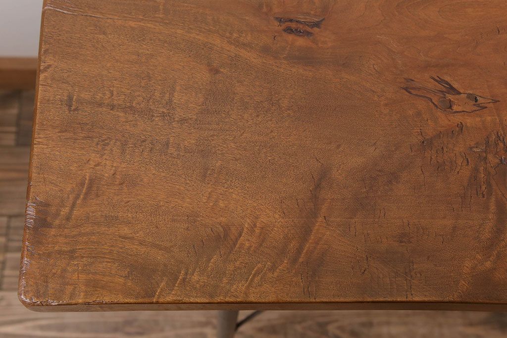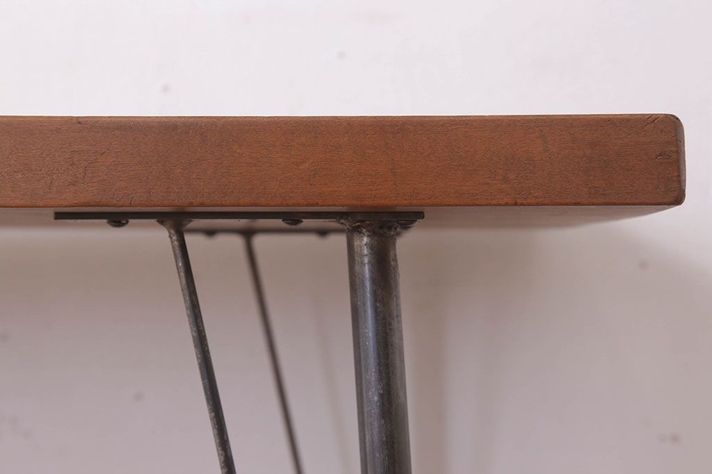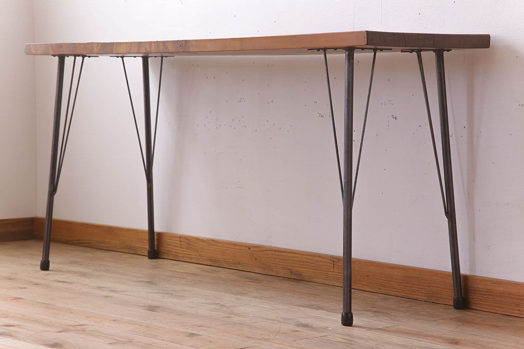 アンティーク家具 天板一枚板 栃の木材 アンティーク シンプルな鉄脚テーブル