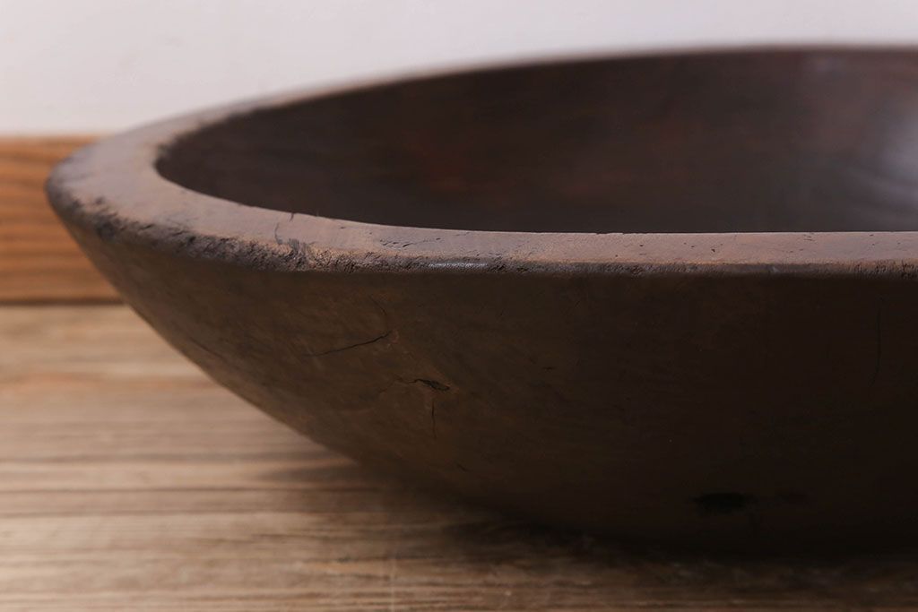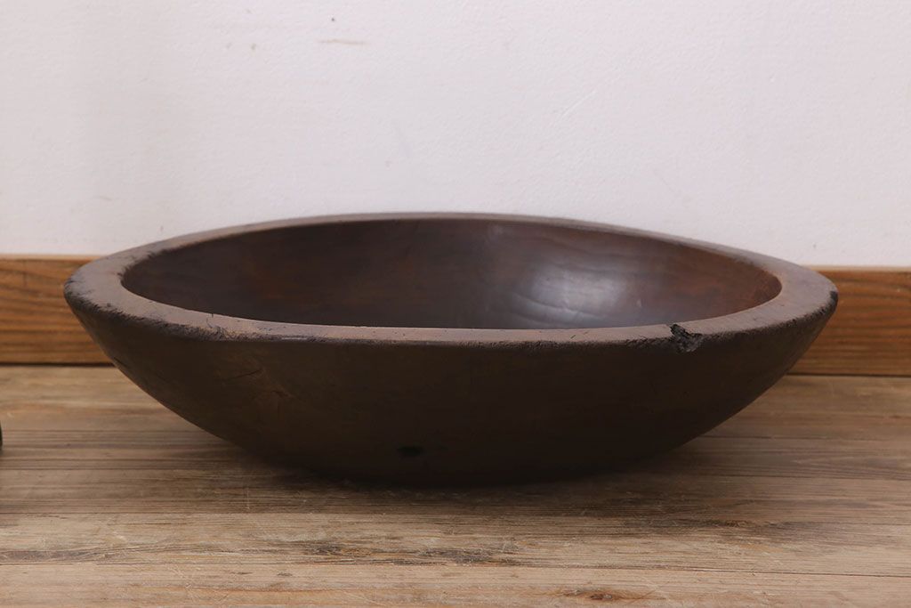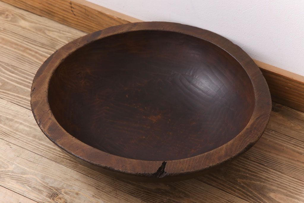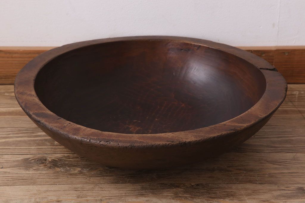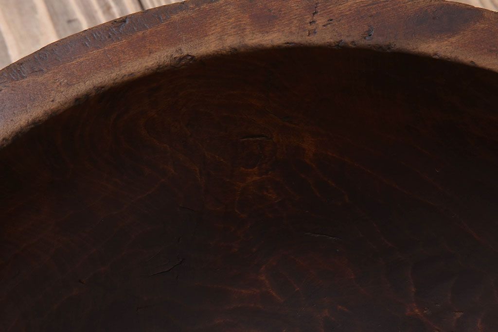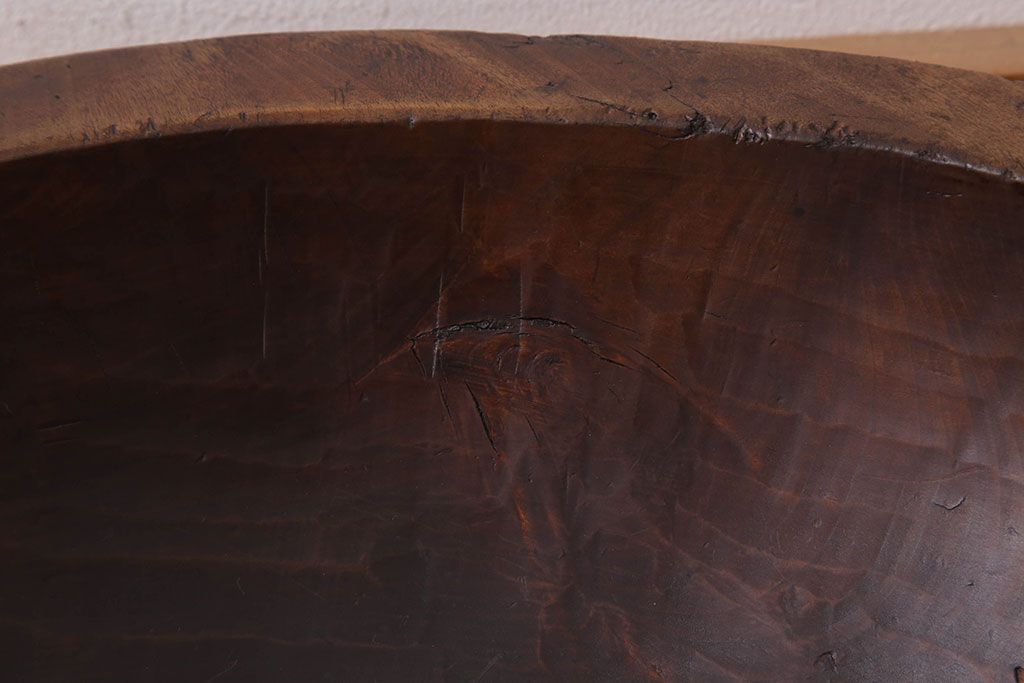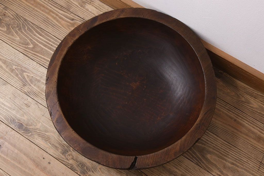 アンティーク雑貨 古民具・骨董 古い朴の木材のこね鉢(ボール・木鉢)