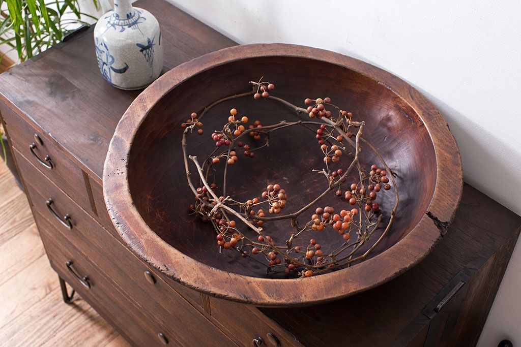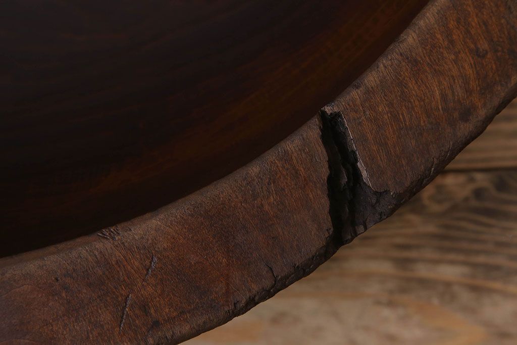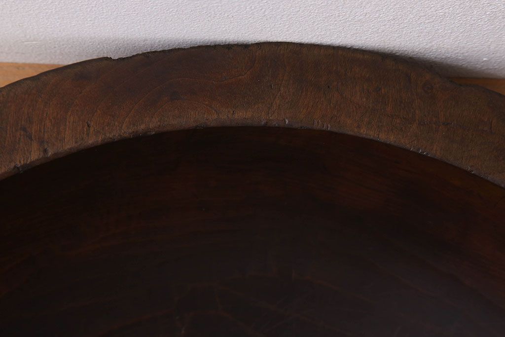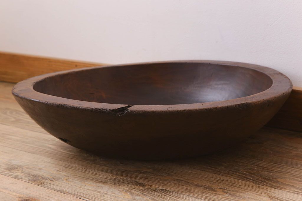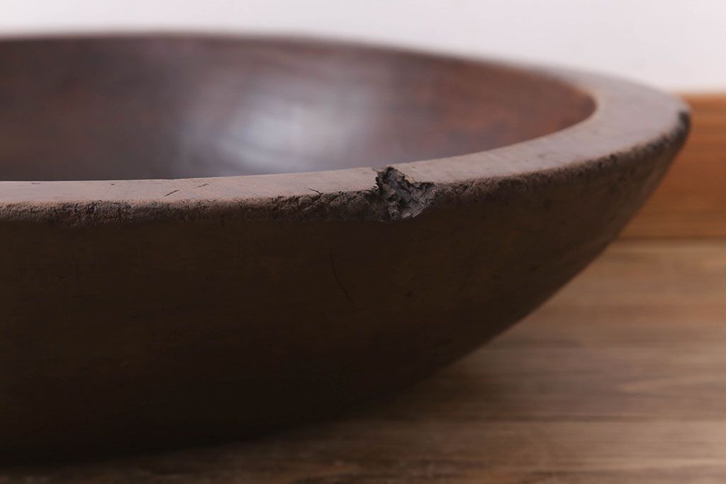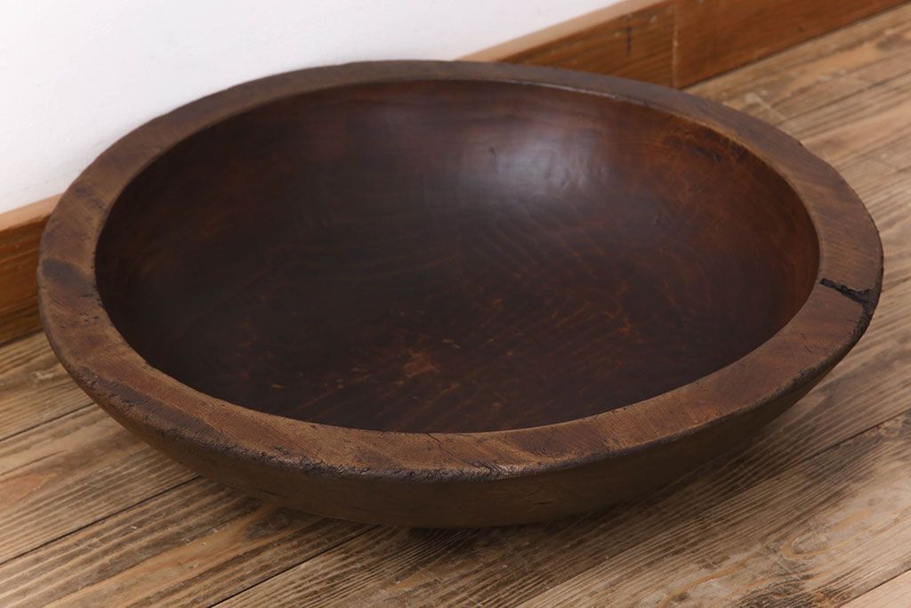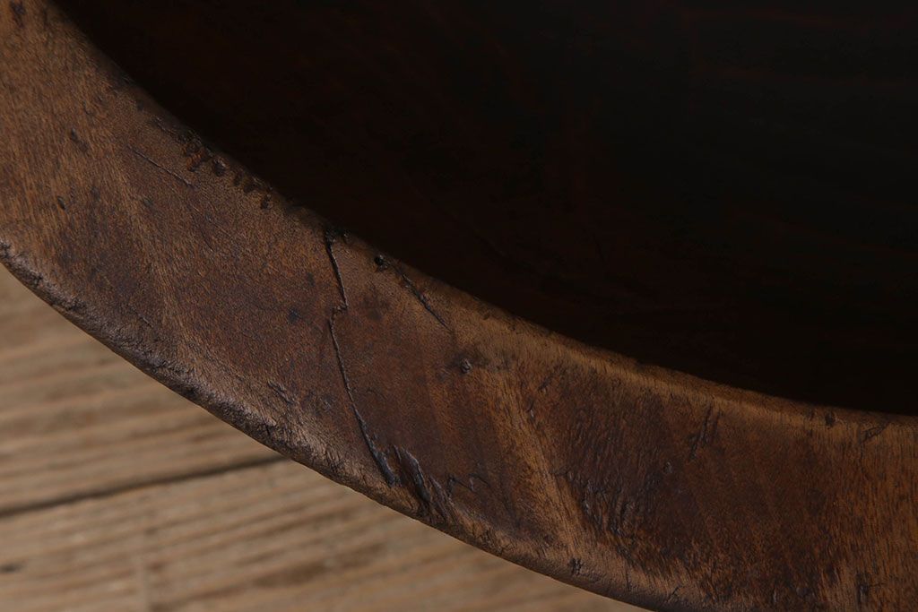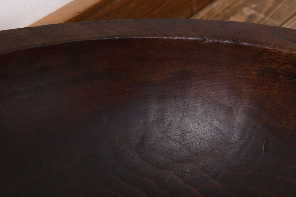 アンティーク雑貨 古民具・骨董 古い朴の木材のこね鉢(ボール・木鉢)