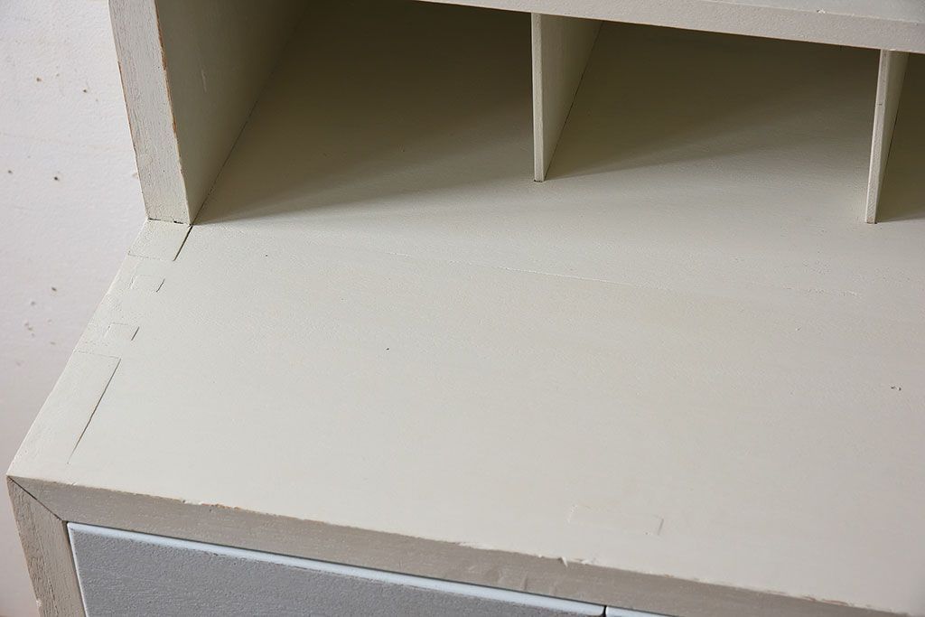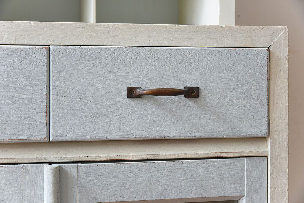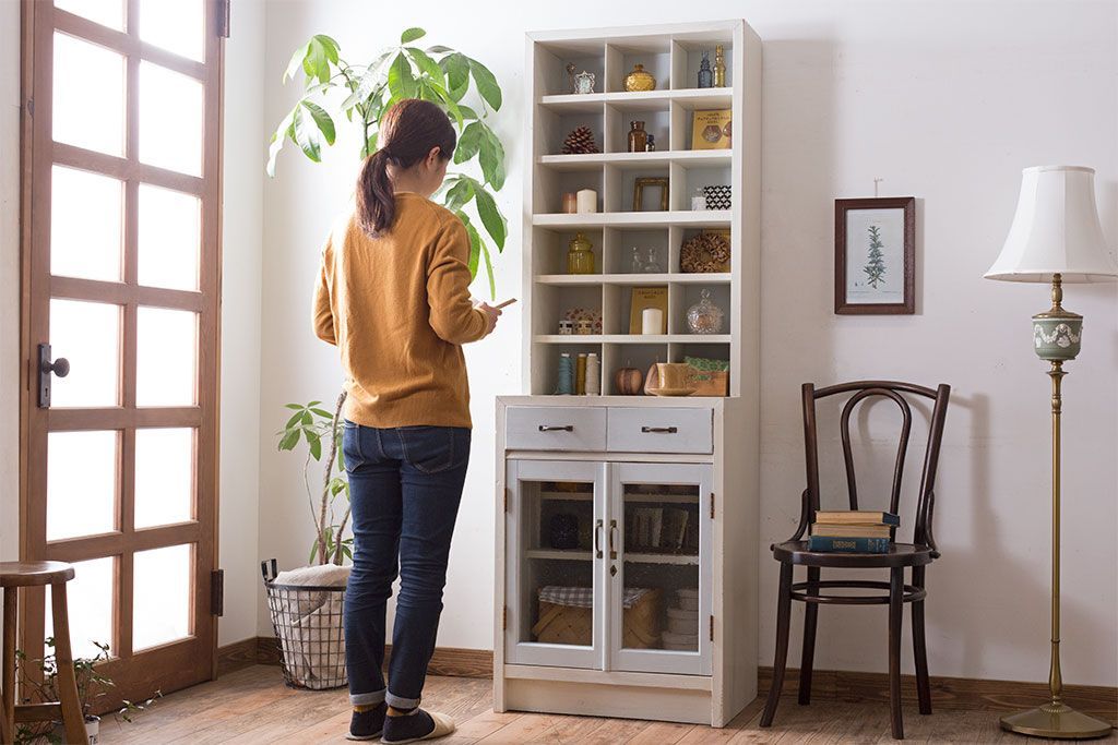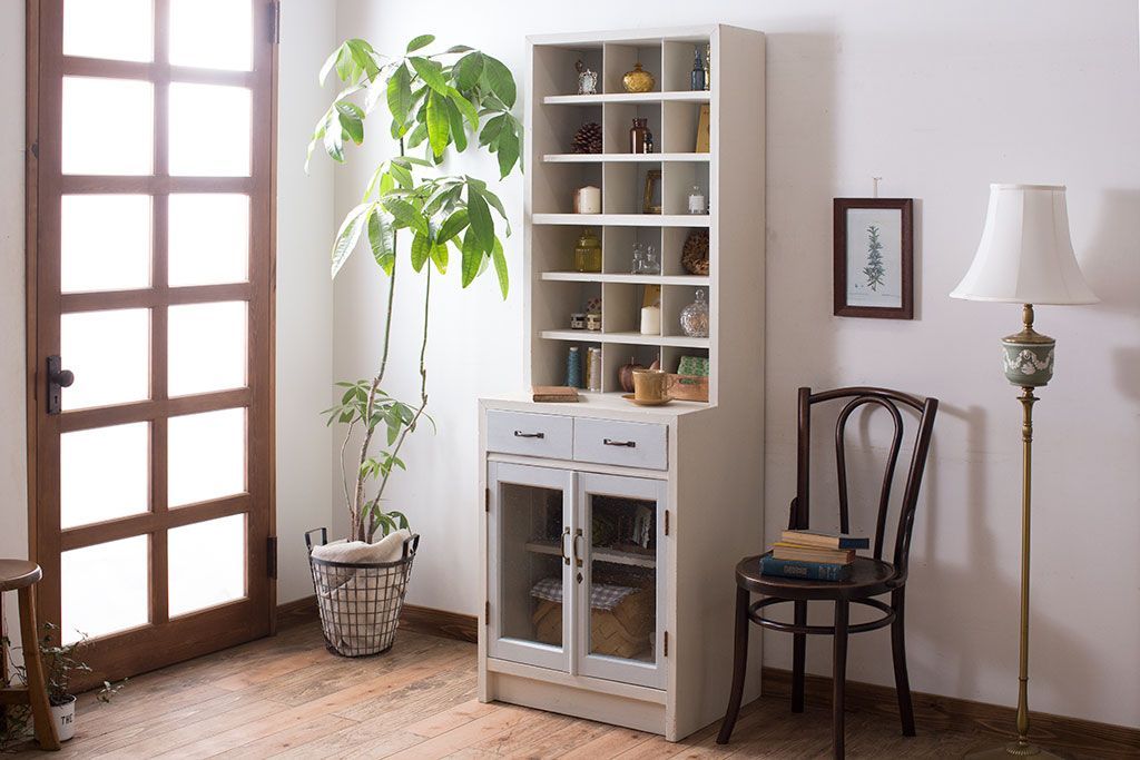 ラフジュ工房> キャビネット・戸棚> 食器棚・カップボード > アンティーク家具 アンティークペイント マス目棚付き!縦型キャビネット(収納棚、飾り棚)