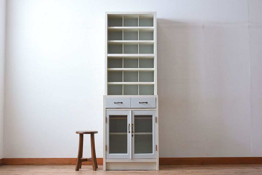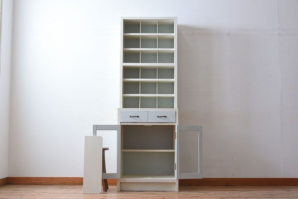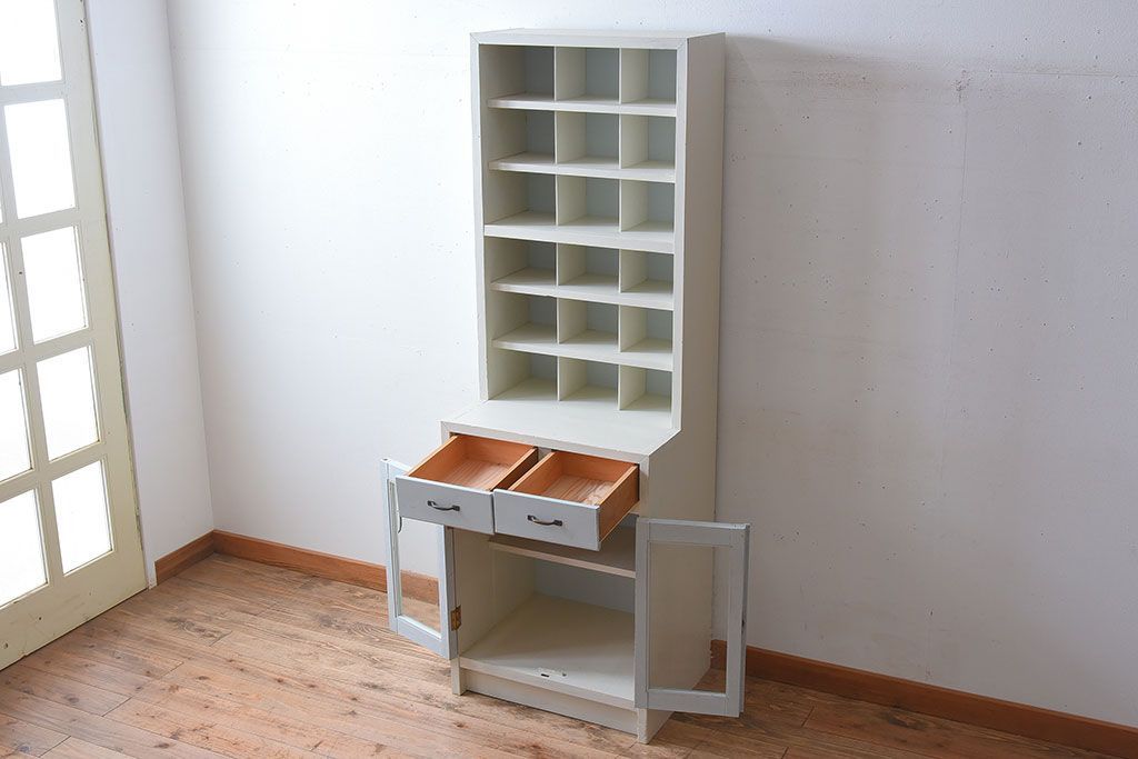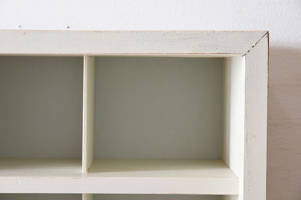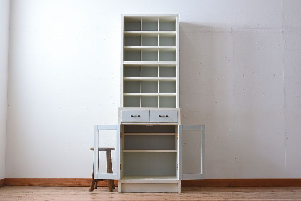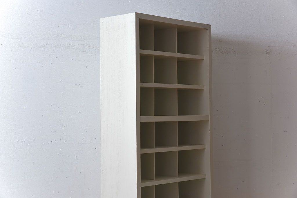 アンティーク家具 アンティークペイント マス目棚付き!縦型キャビネット(収納棚、飾り棚)