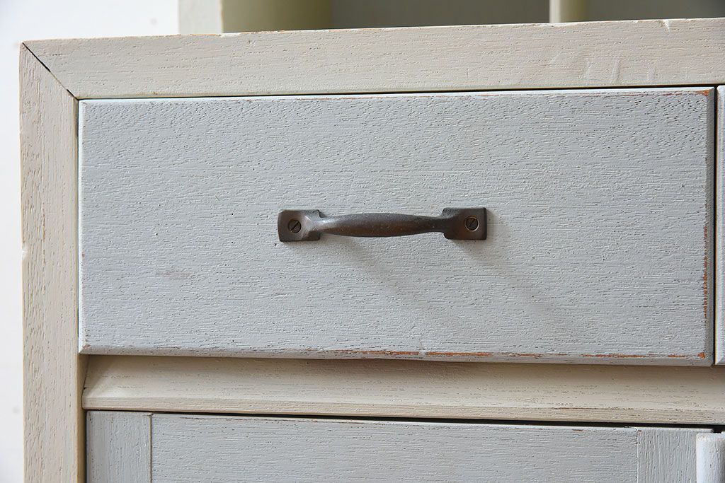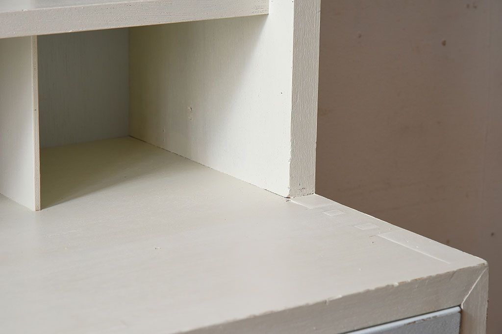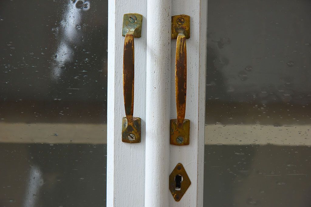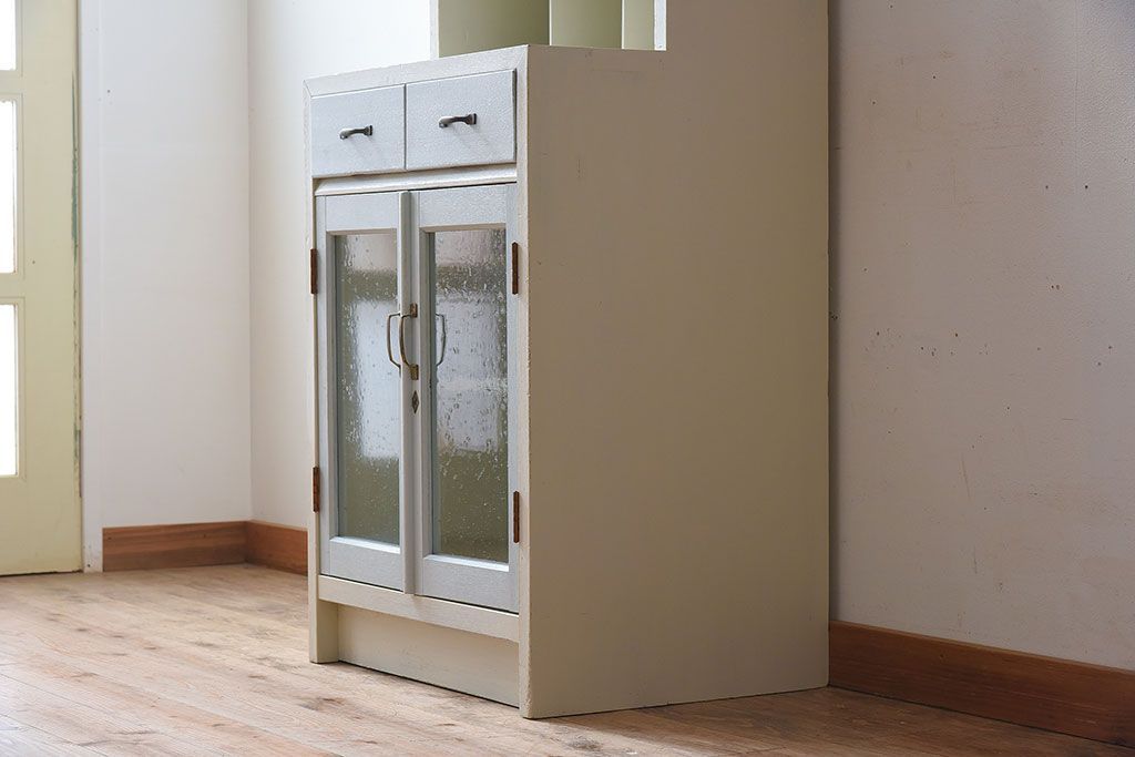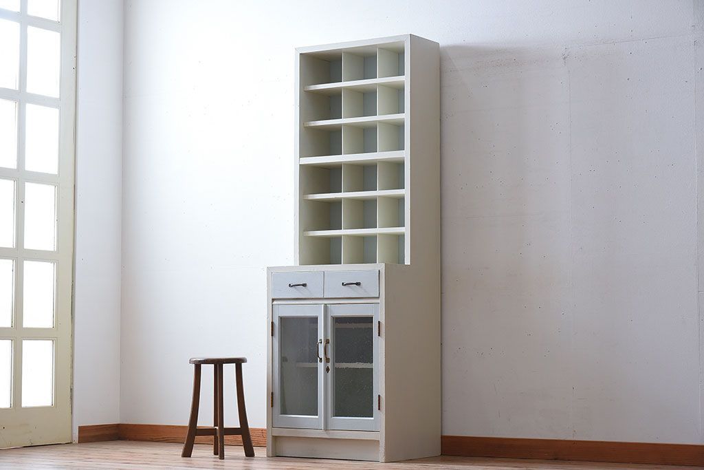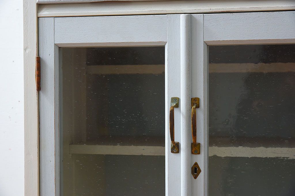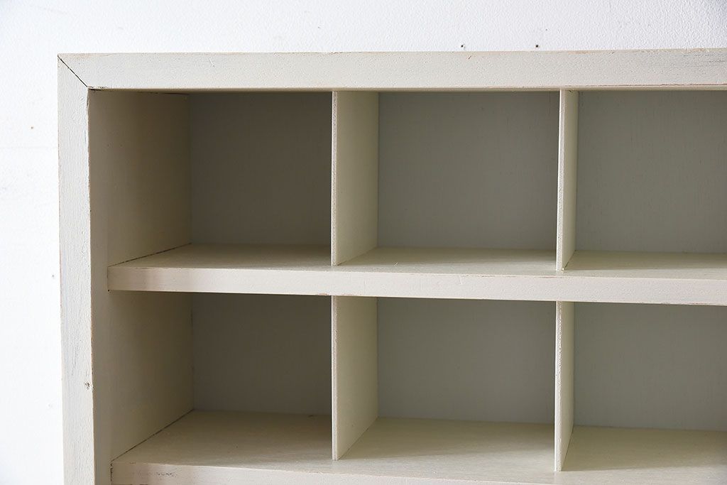 アンティーク家具 アンティークペイント マス目棚付き!縦型キャビネット(収納棚、飾り棚)