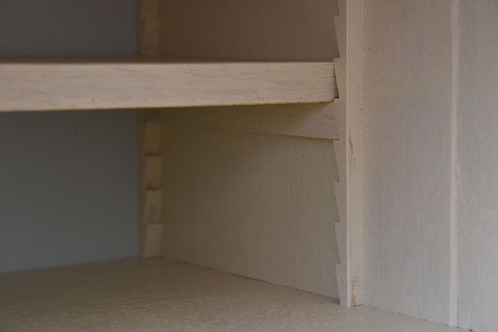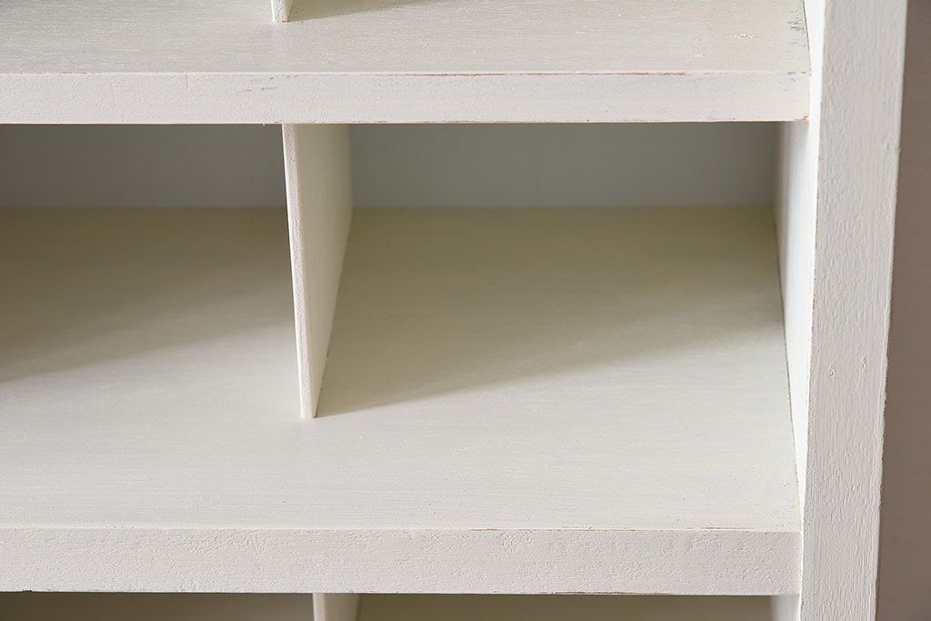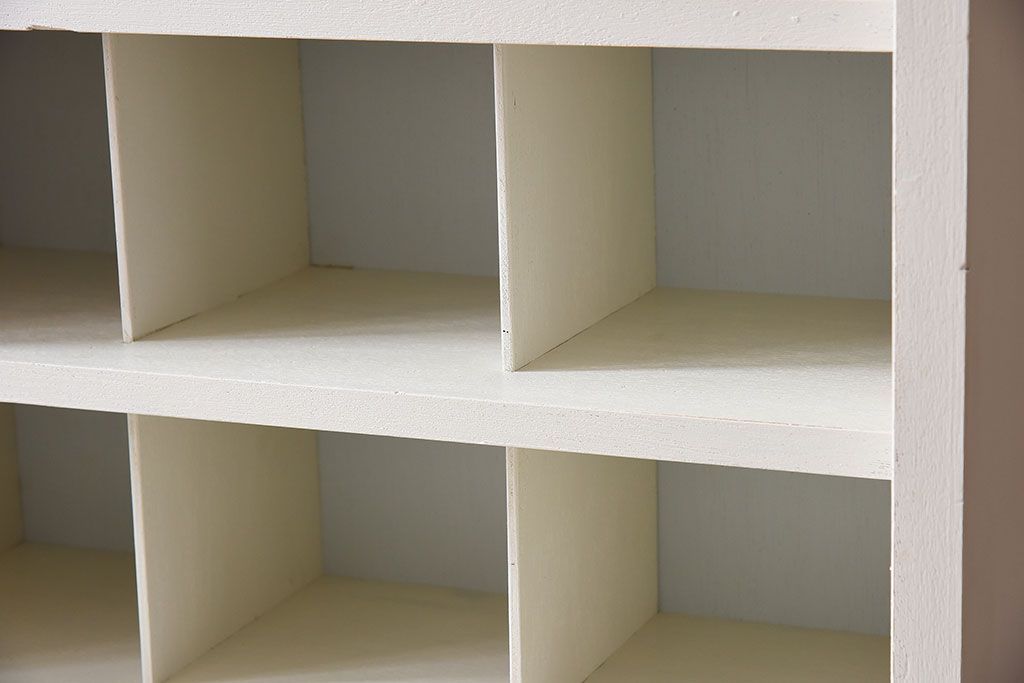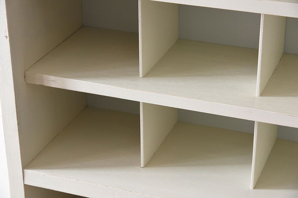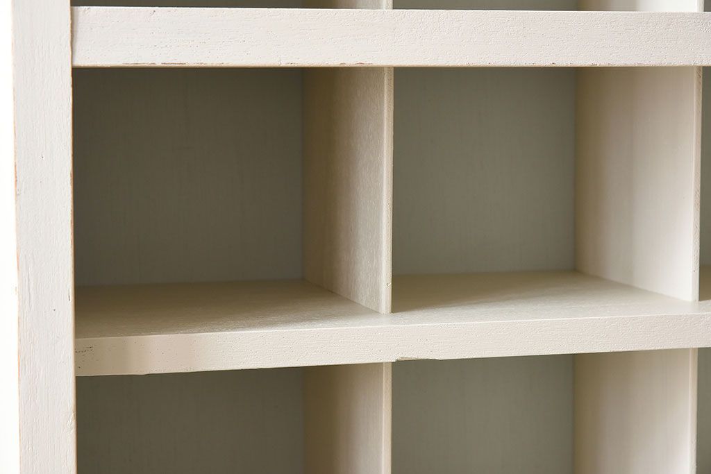 ラフジュ工房> オープンラック・シェルフ> 本棚 > アンティーク家具 アンティークペイント マス目棚付き!縦型キャビネット(収納棚、飾り棚)