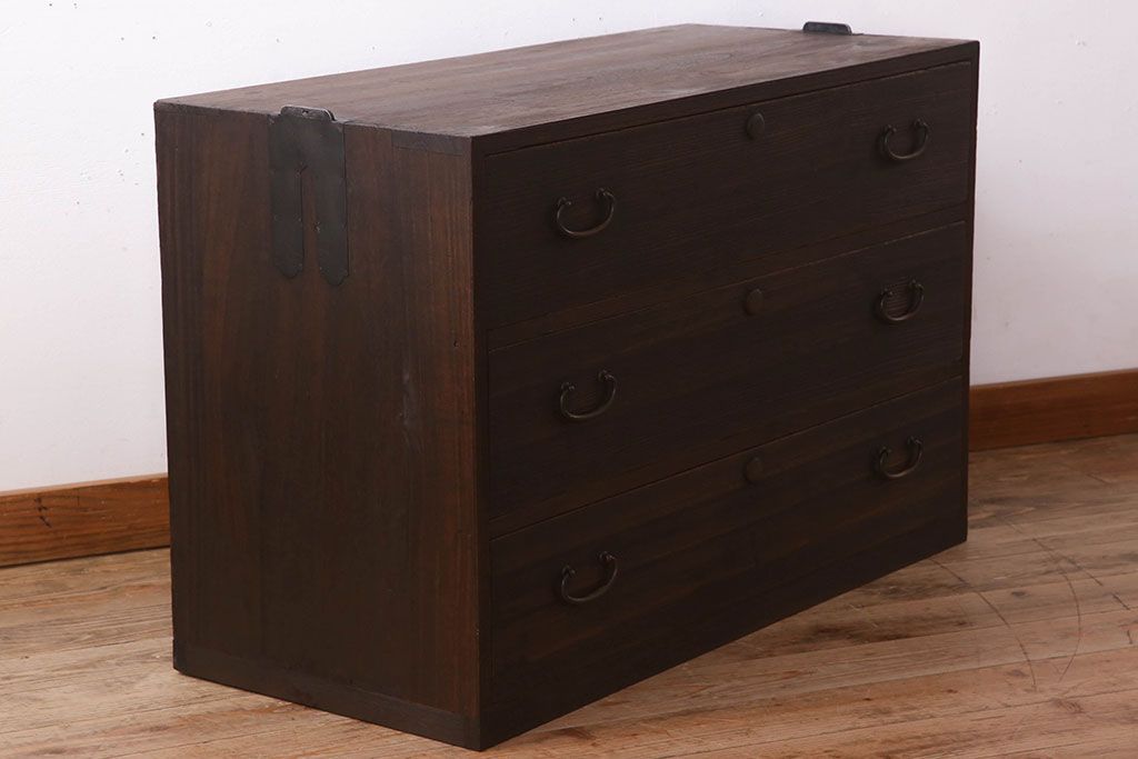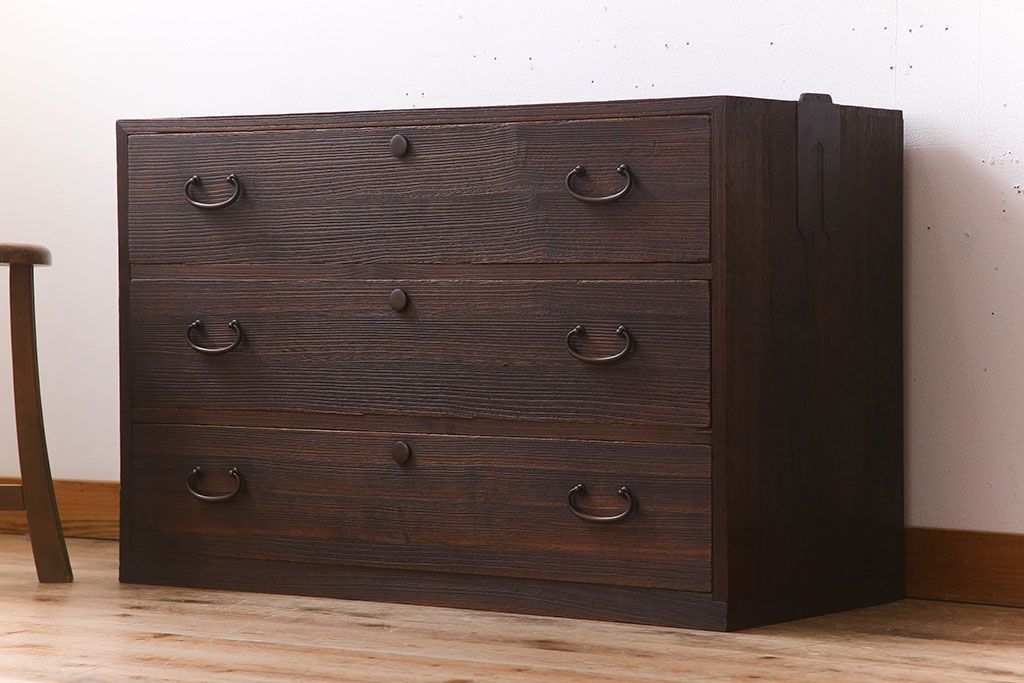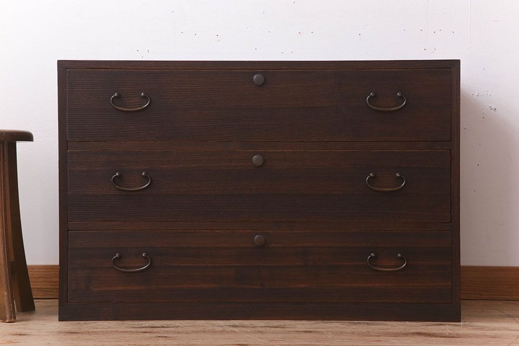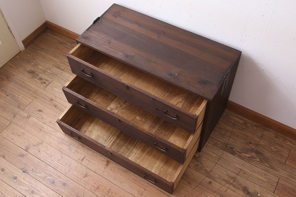 ラフジュ工房> 和箪笥 > アンティーク家具 総桐材 3杯引き出しの衣装箪笥ローボード