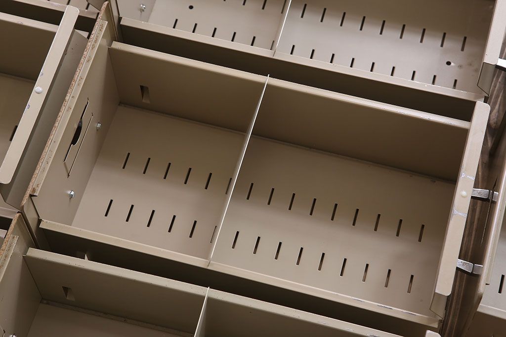 ラフジュ工房> チェスト・引き出し > ヴィンテージ家具 フランスビンテージ 5段スタッキング書類ケース(ドロワー、チェスト、小物収納、引き出し)(1)(R-023524)