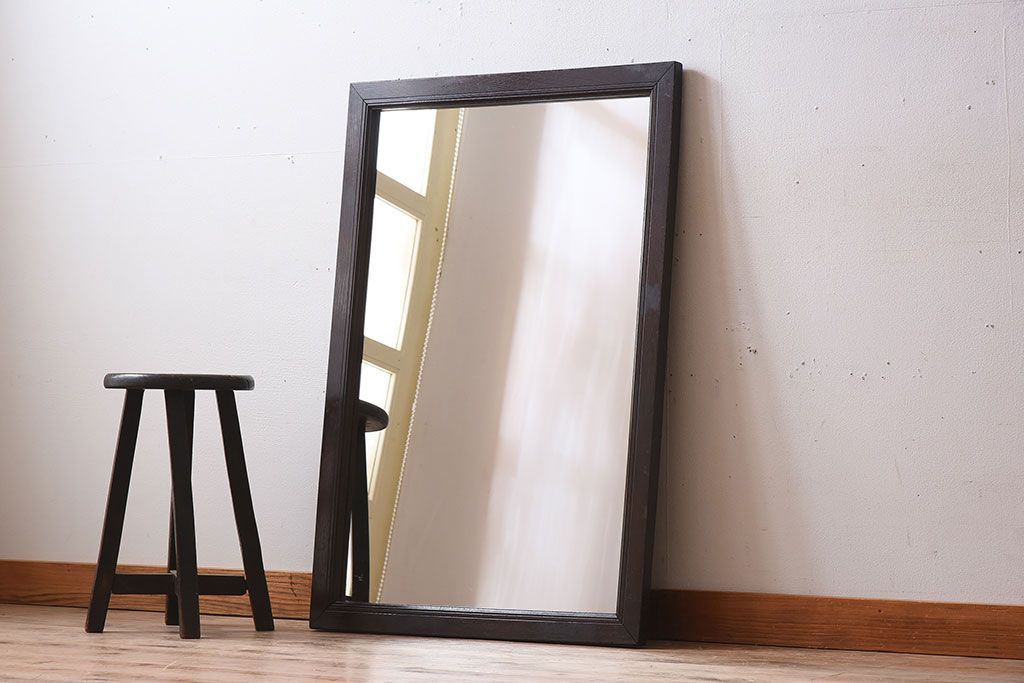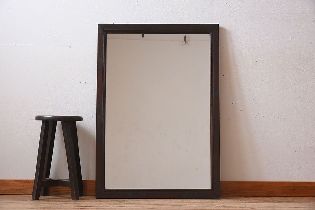 アンティーク雑貨 和製アンティーク 栗材 木製フレームの鏡(ミラー)