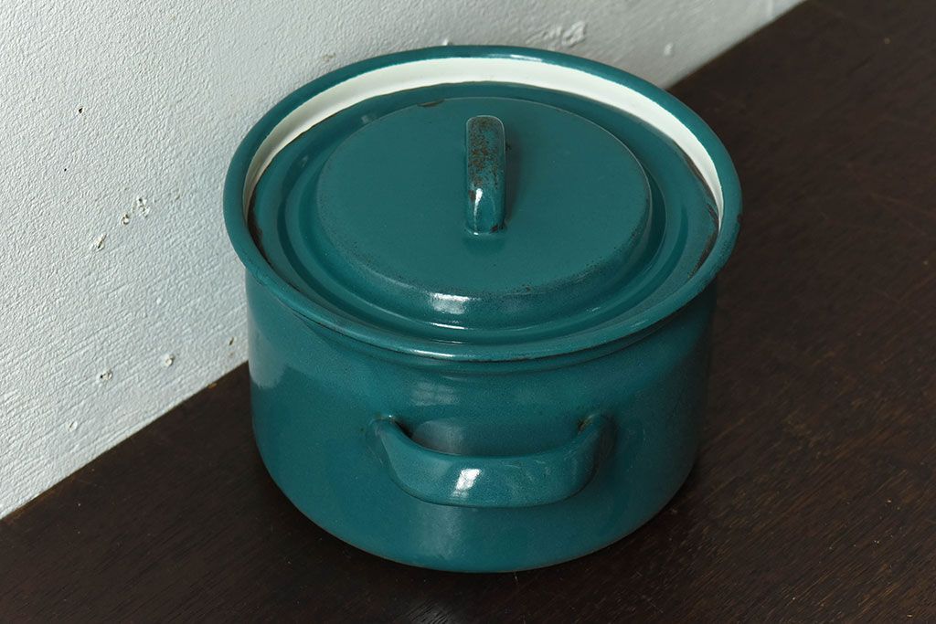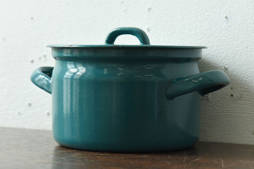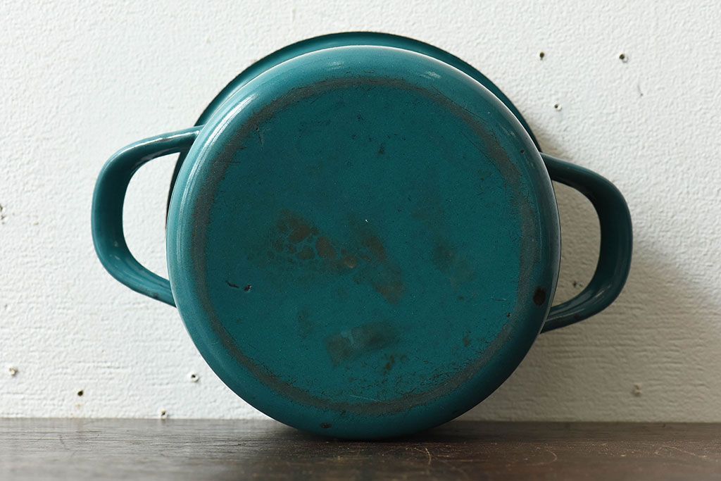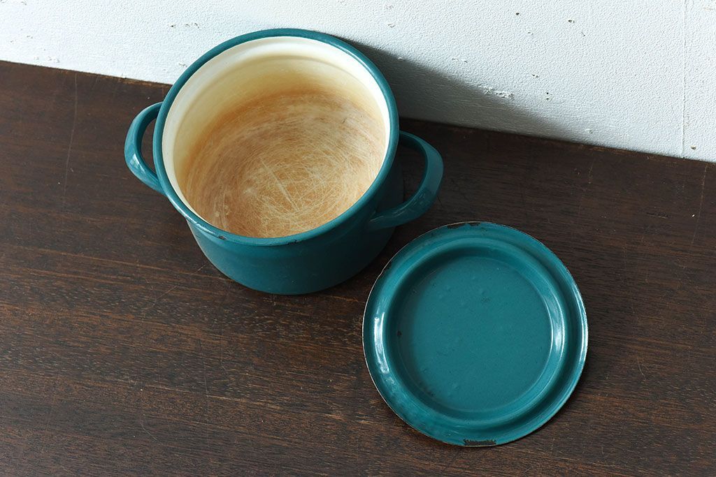 アンティーク雑貨 ヨーロッパビンテージ ホーロー(琺瑯) レトロな両手鍋(1)