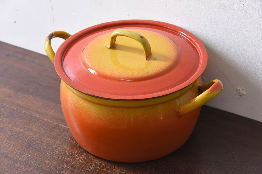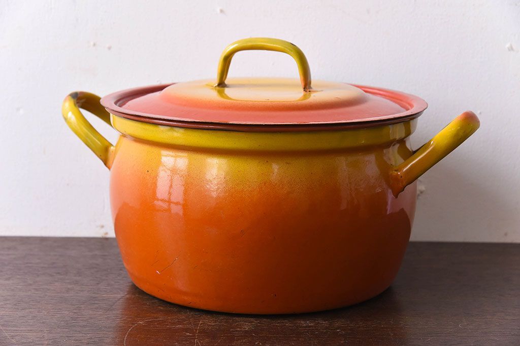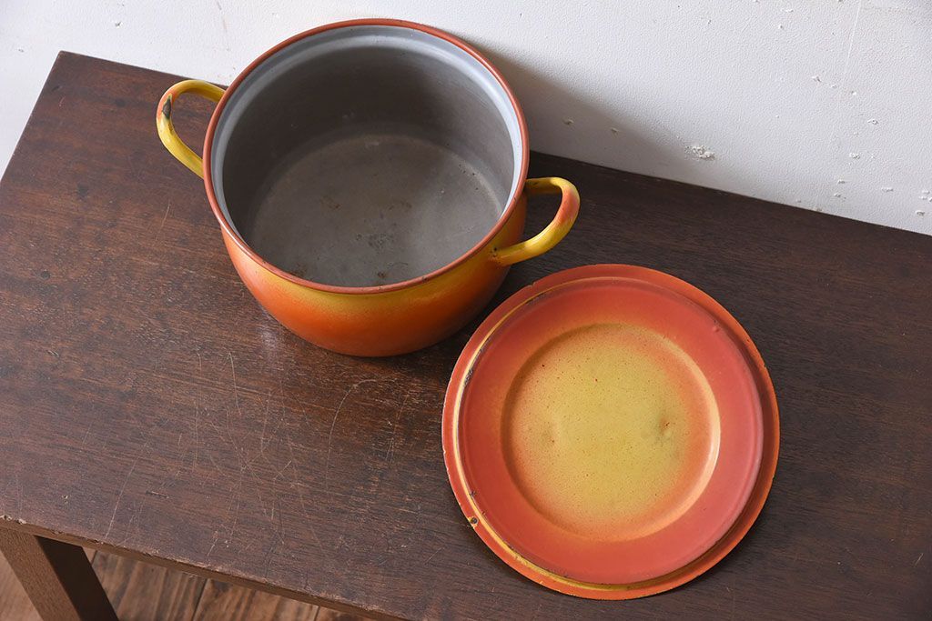 アンティーク雑貨 ヨーロッパビンテージ ホーロー(琺瑯) レトロな両手鍋(3)