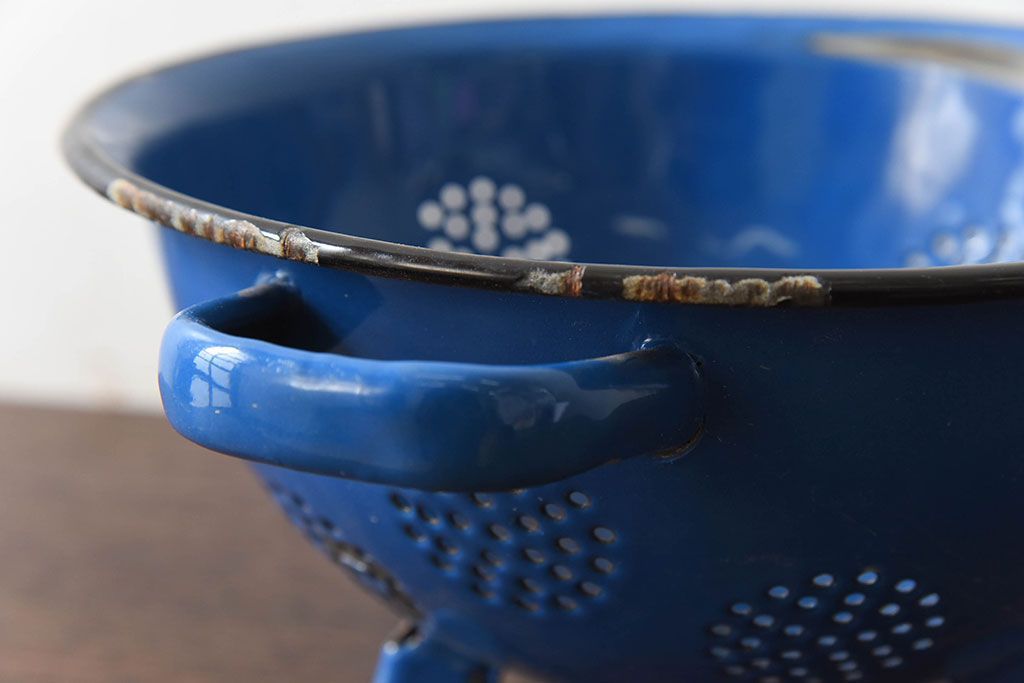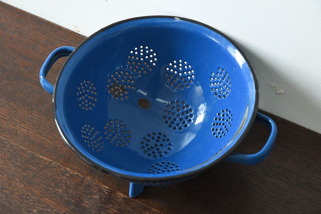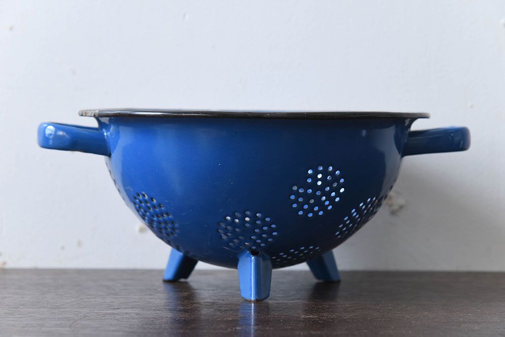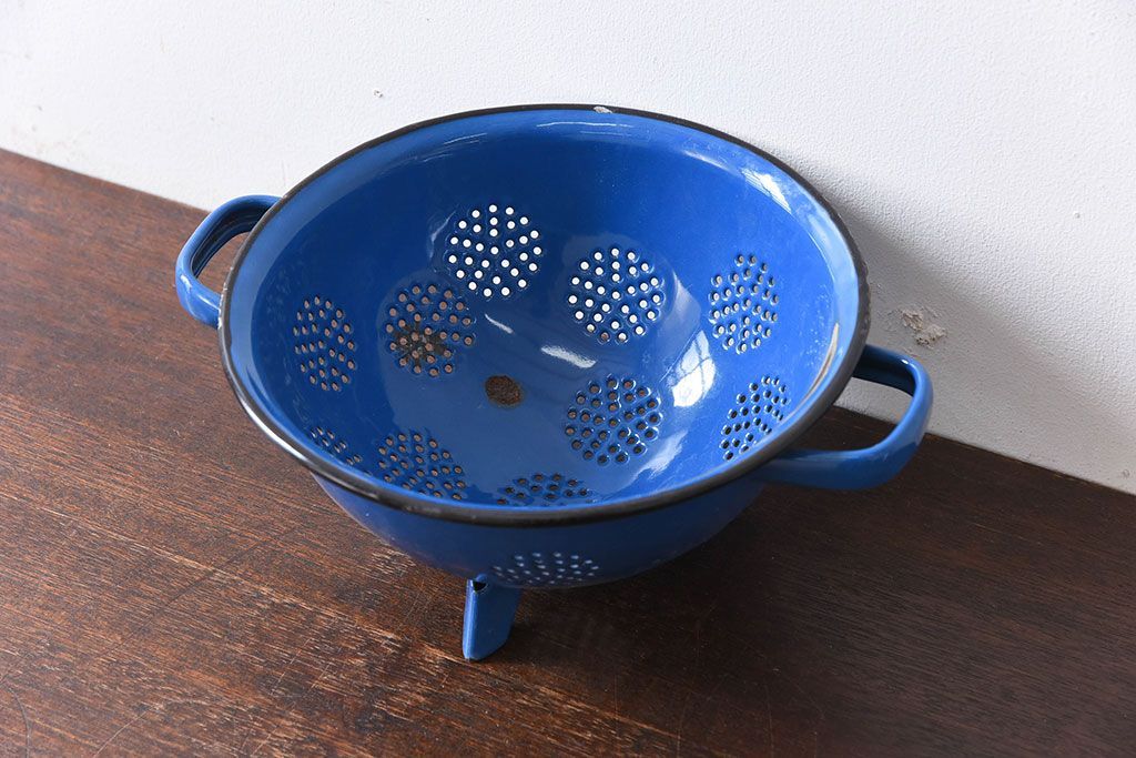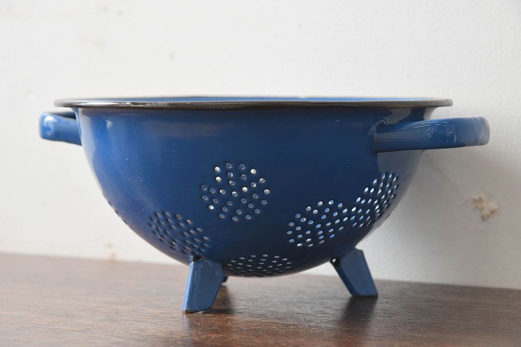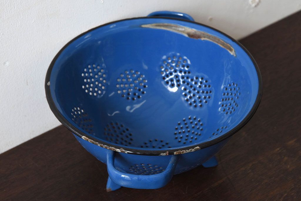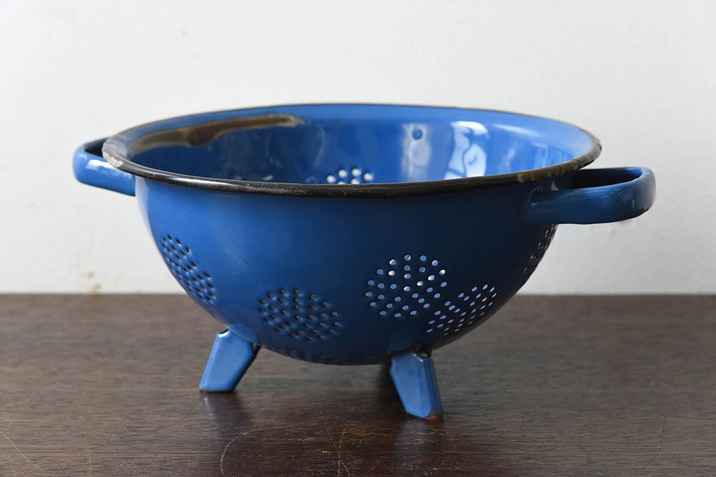 アンティーク雑貨 ヨーロッパビンテージ ホーロー(琺瑯) 脚付きコランダー(ザル・水切り)