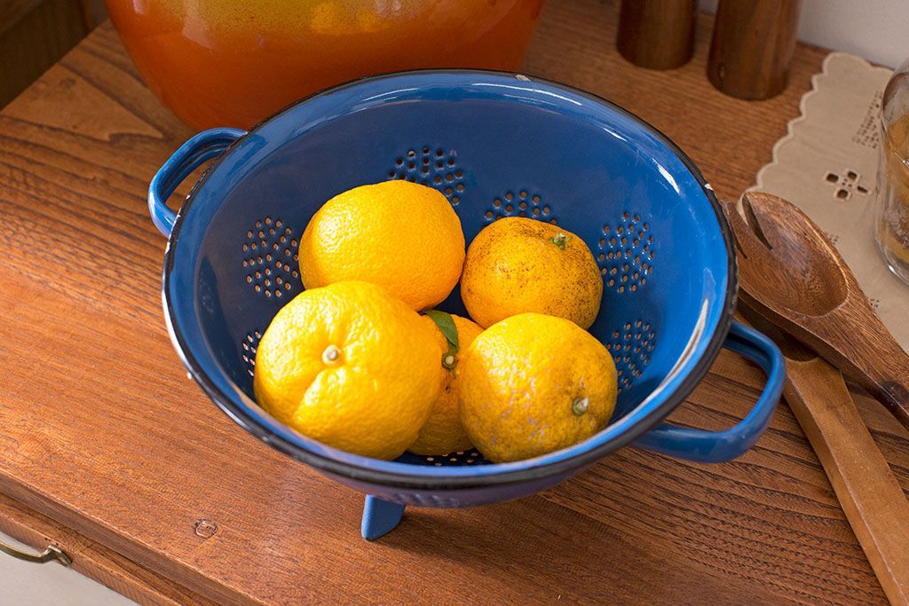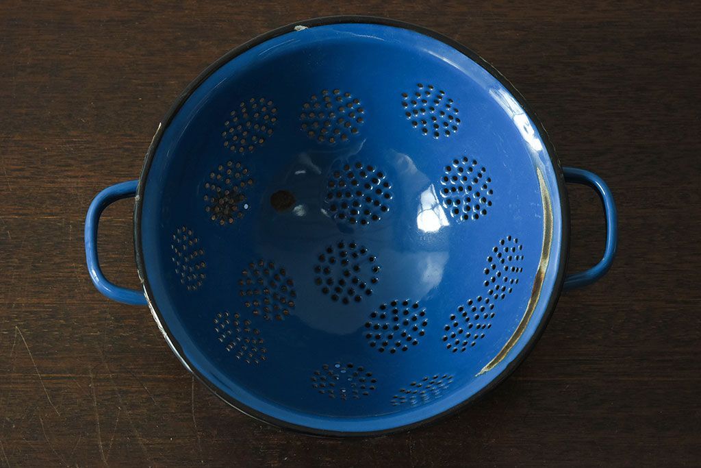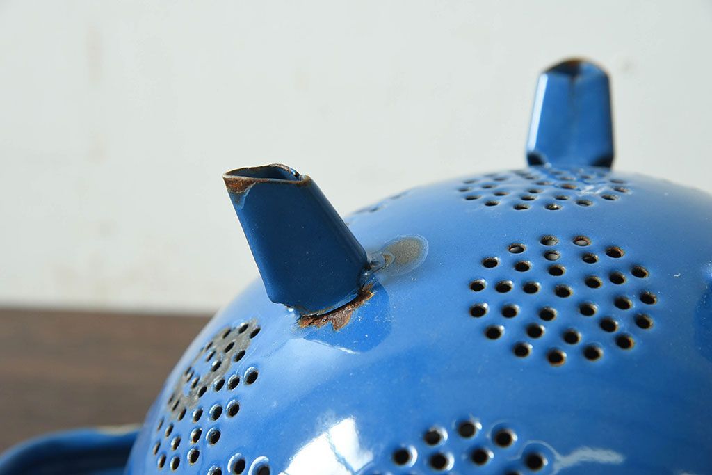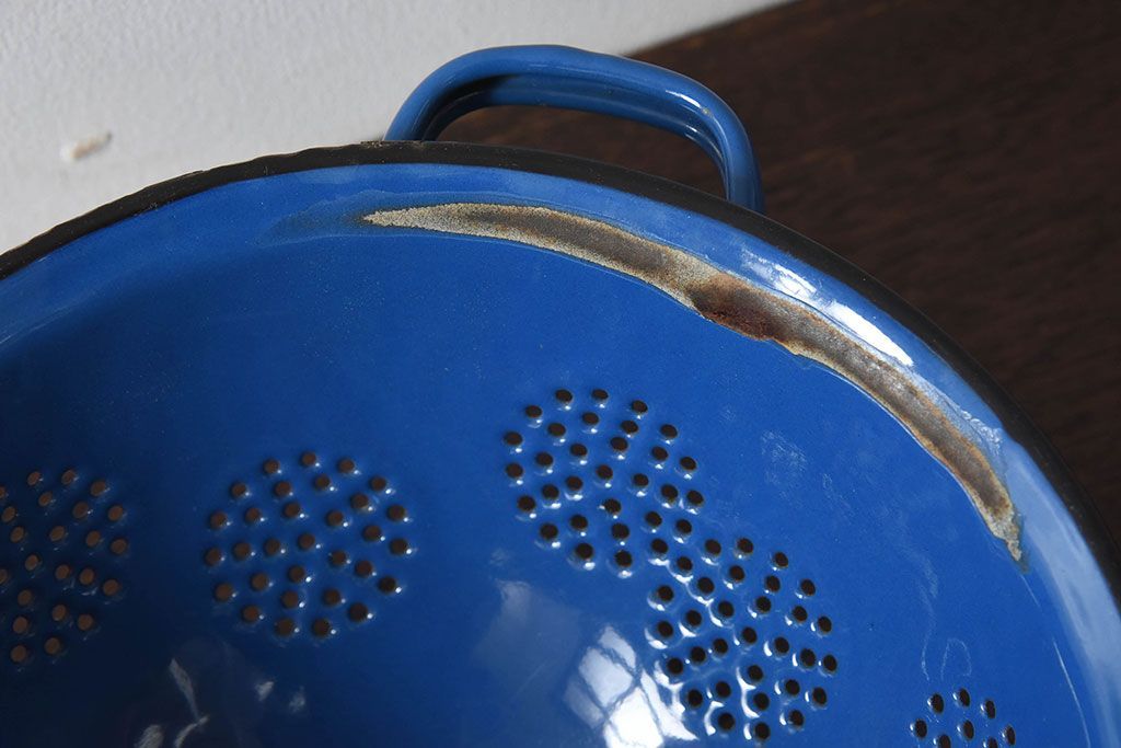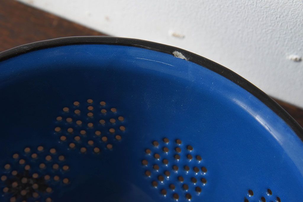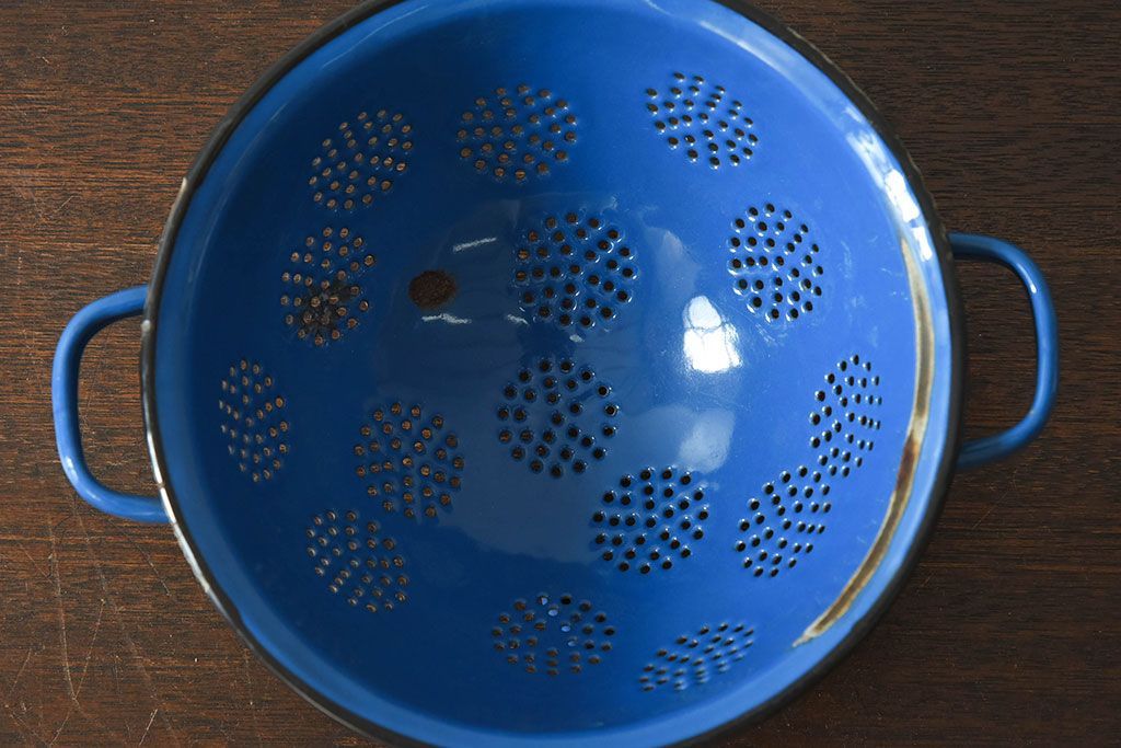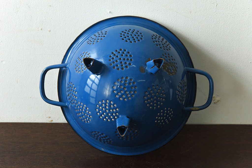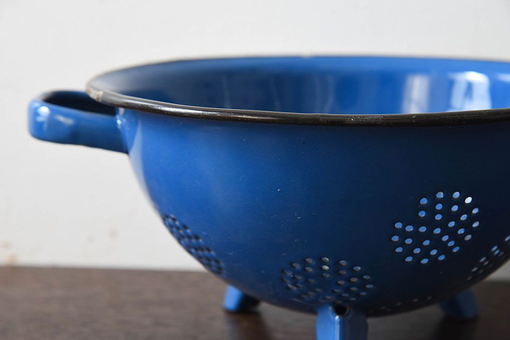 アンティーク雑貨 ヨーロッパビンテージ ホーロー(琺瑯) 脚付きコランダー(ザル・水切り)
