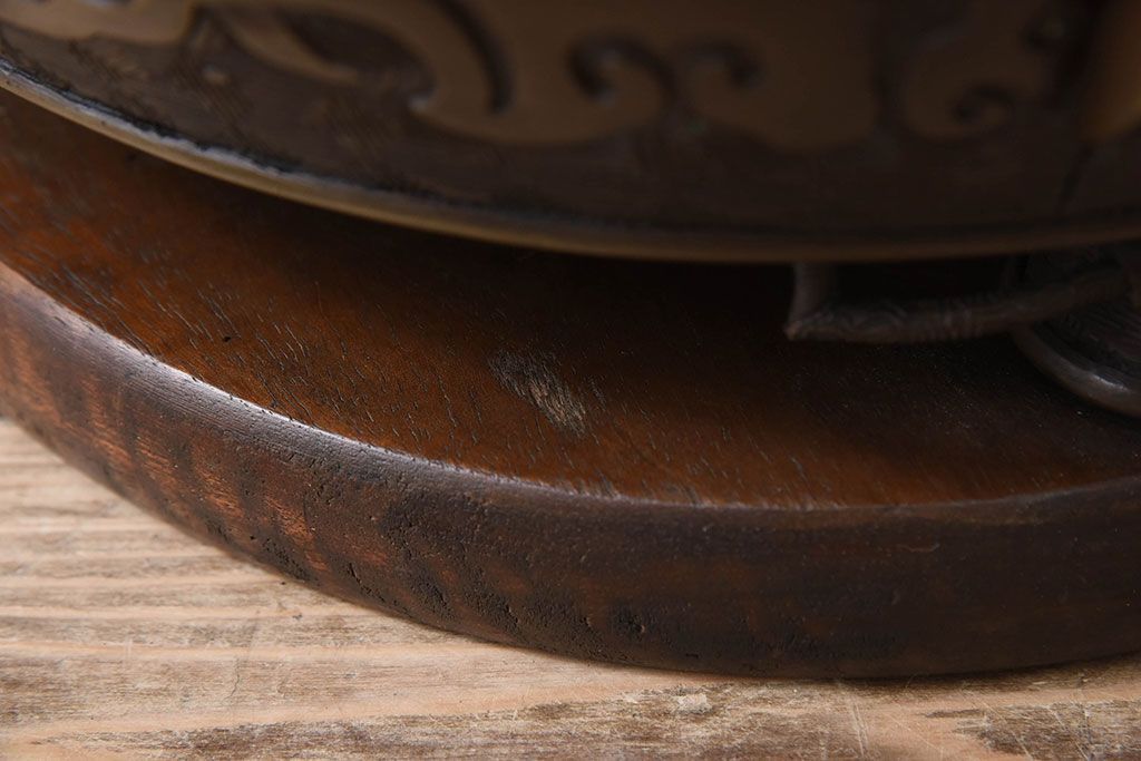 アンティーク雑貨 古民具・骨董 木製台座付き!饕餮(とうてつ)紋の古い真鍮製火鉢(2)