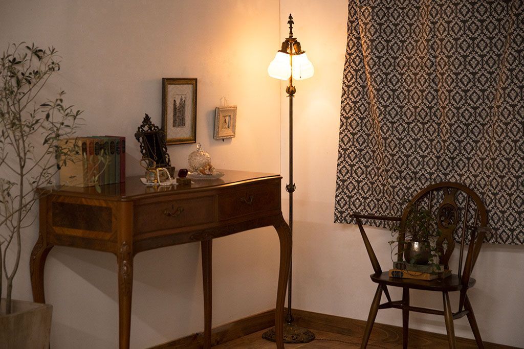 イギリスアンティーク アイアン製の高級フロアスタンドライトです。