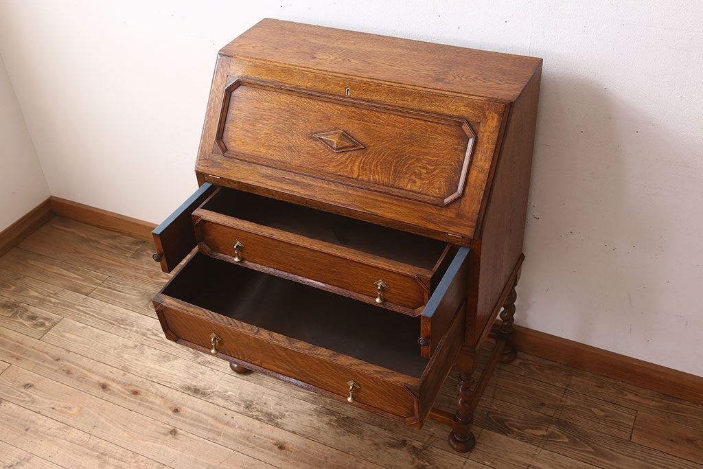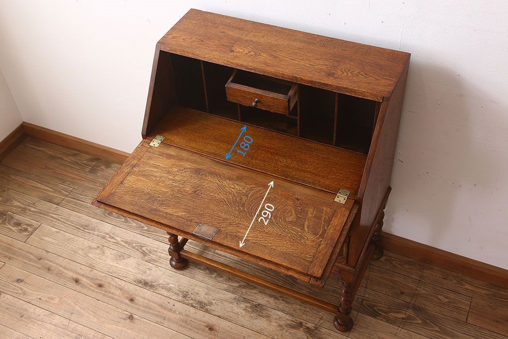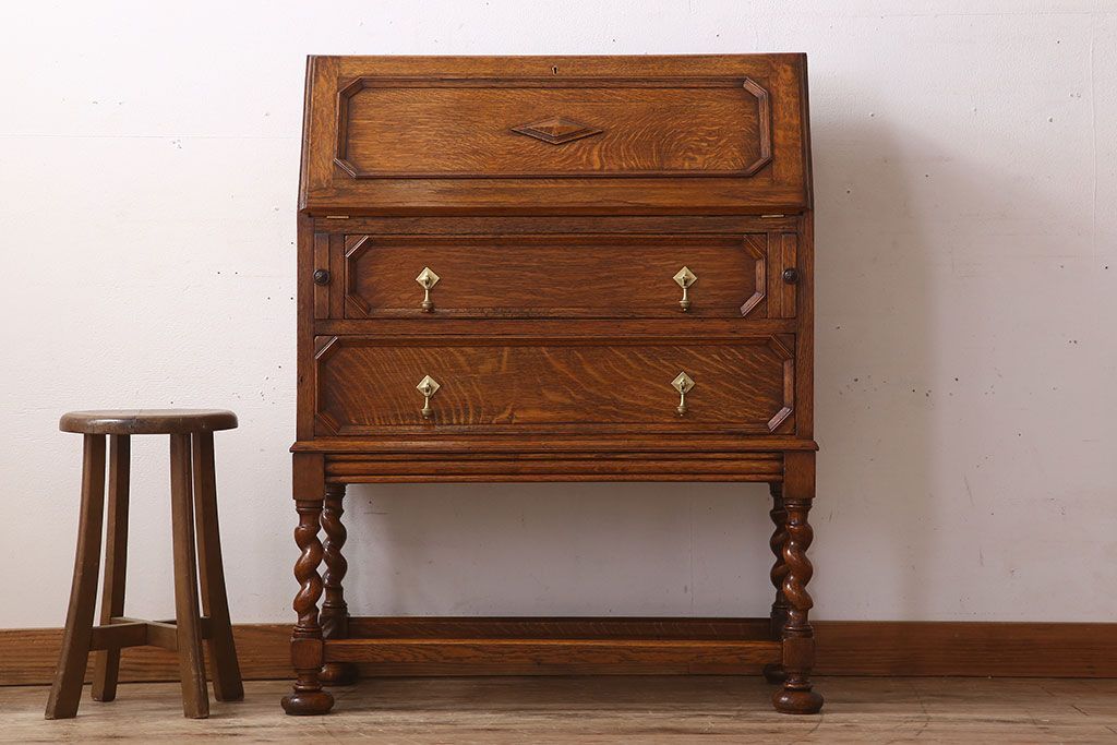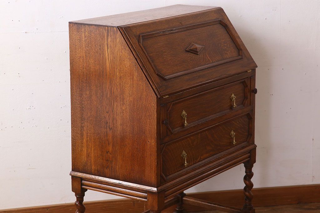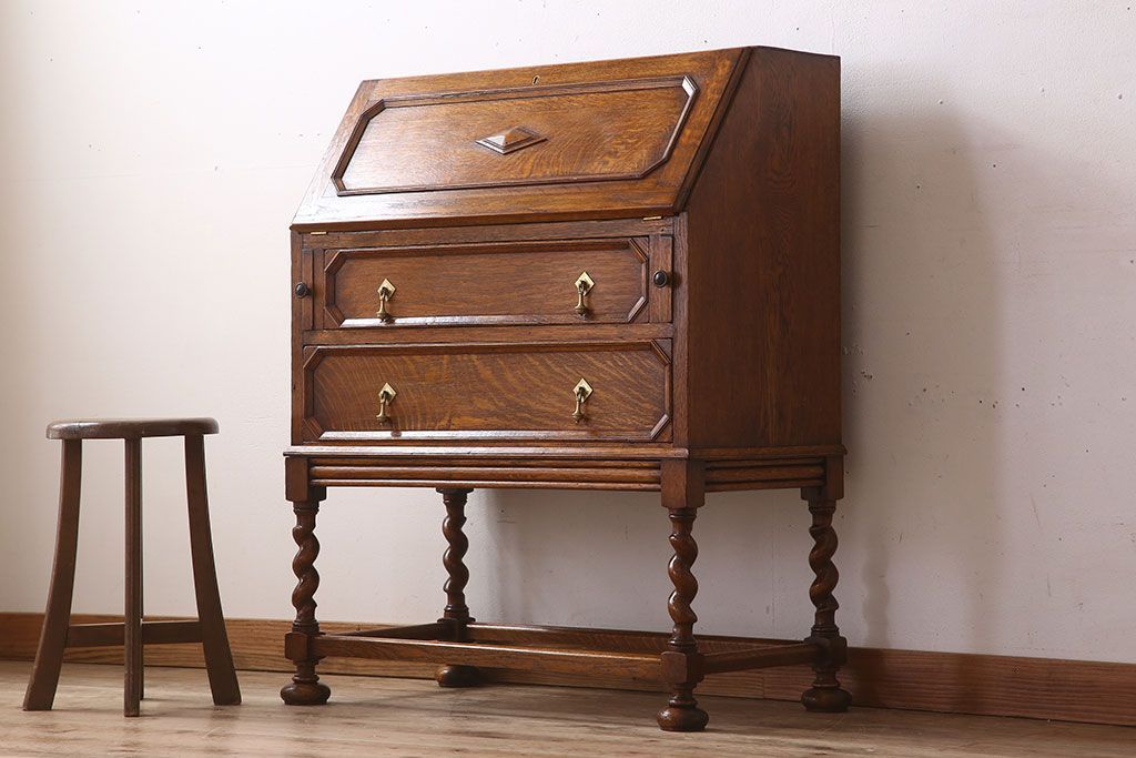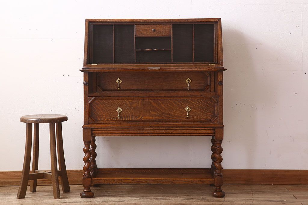 アンティーク家具 イギリスアンティーク ツイストレッグ オーク材 上品なライティングビューロー