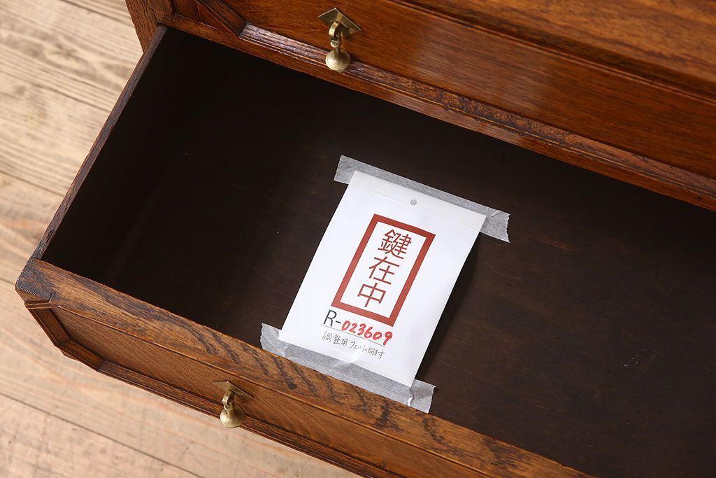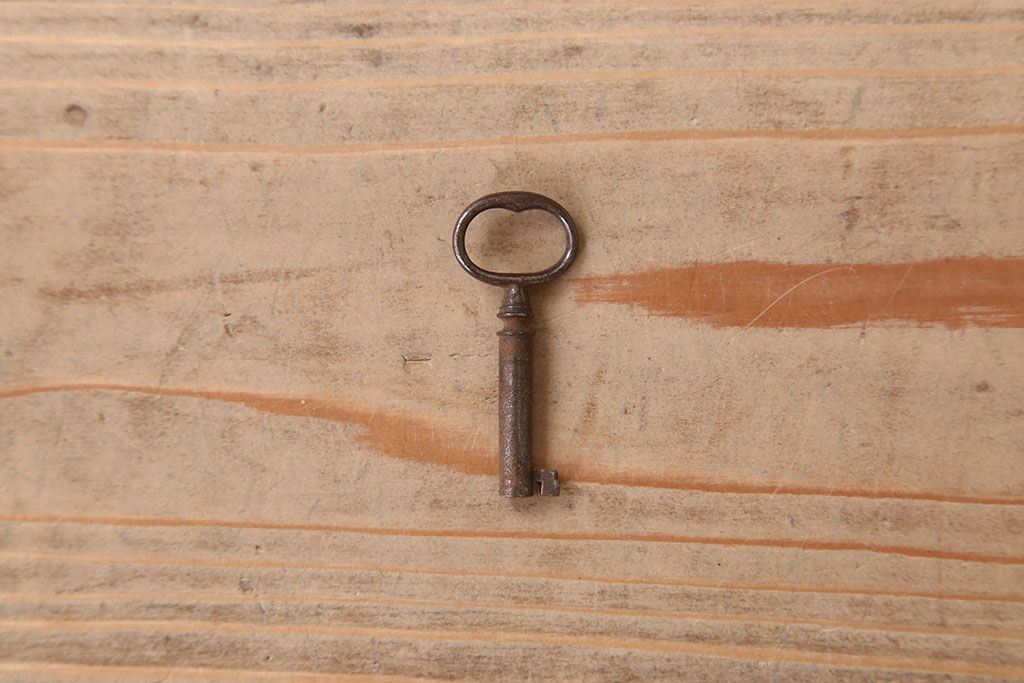 鍵は付属します。画像にありますように、袋に入れお付けします。スムーズに動くように調整していますが、あくまでも古いものや中古品ですので、長期の使用保証は出来かねます。ご購入後不具合が発生した場合は、当店でサポートさせていただきますので、お気軽にご相談くださいませ。