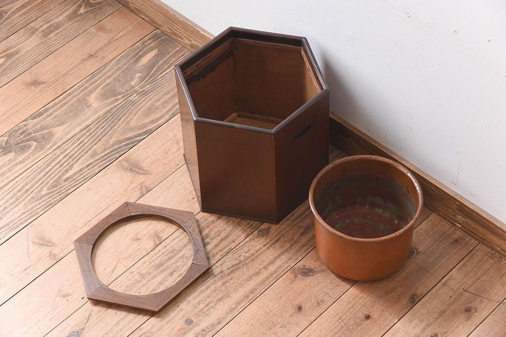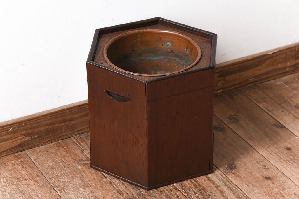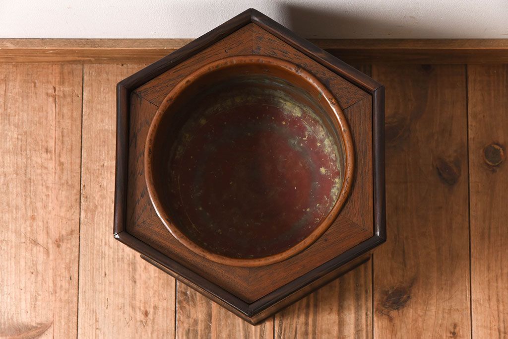 アンティーク雑貨 明治大正期 桑材 アンティーク 六角形火鉢(2)
