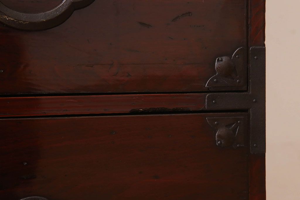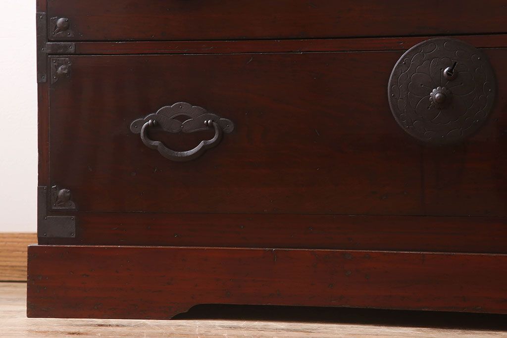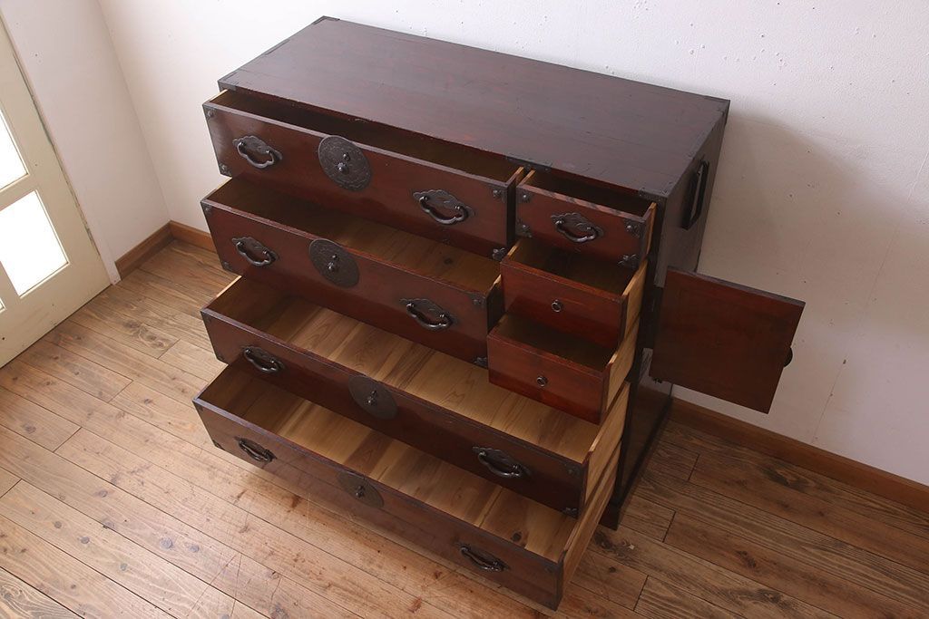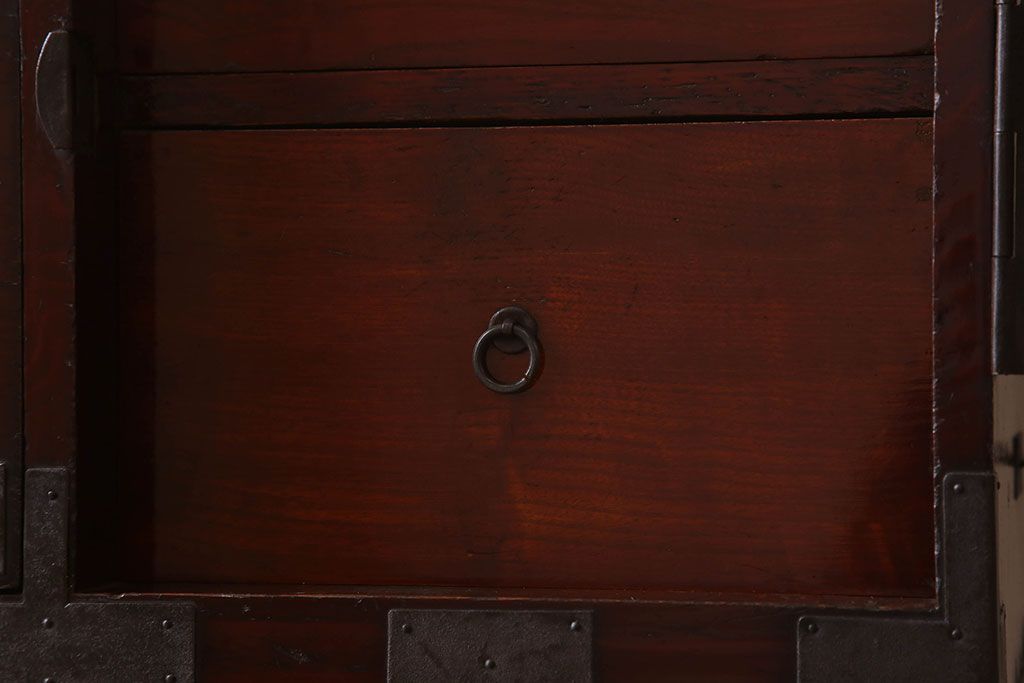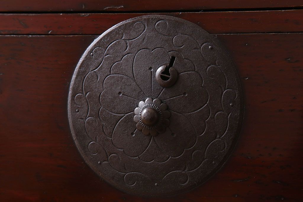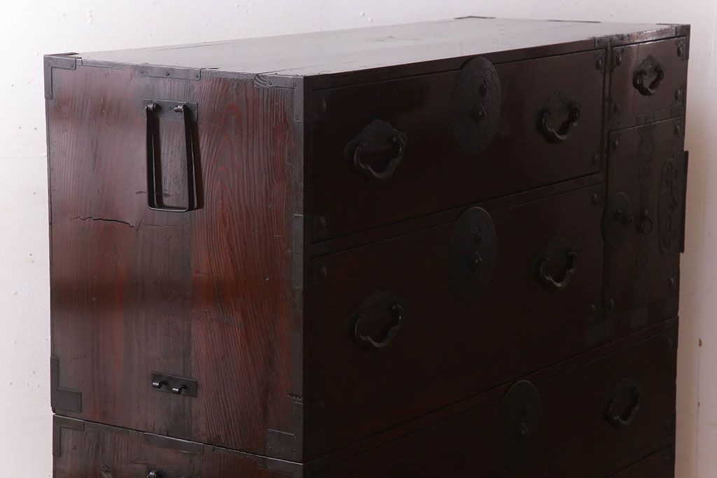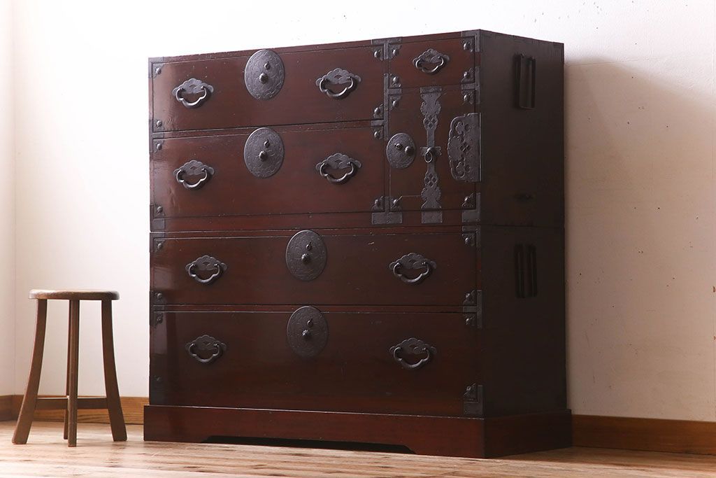 アンティーク家具 古民具・骨董 桜丸金具 前面栗材の米沢箪笥(衣装箪笥)(台輪付き)