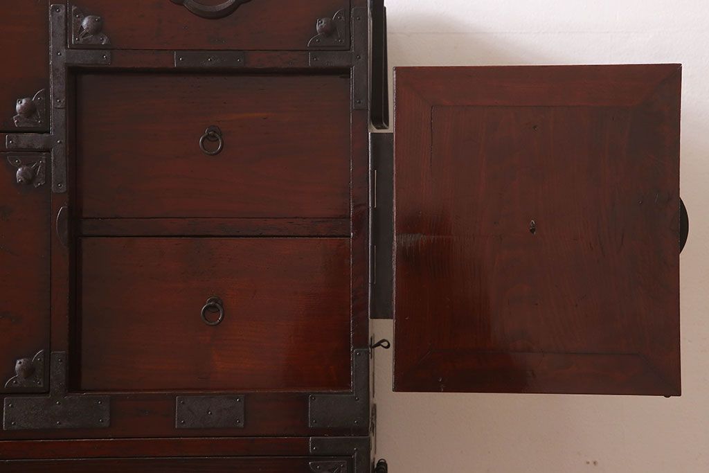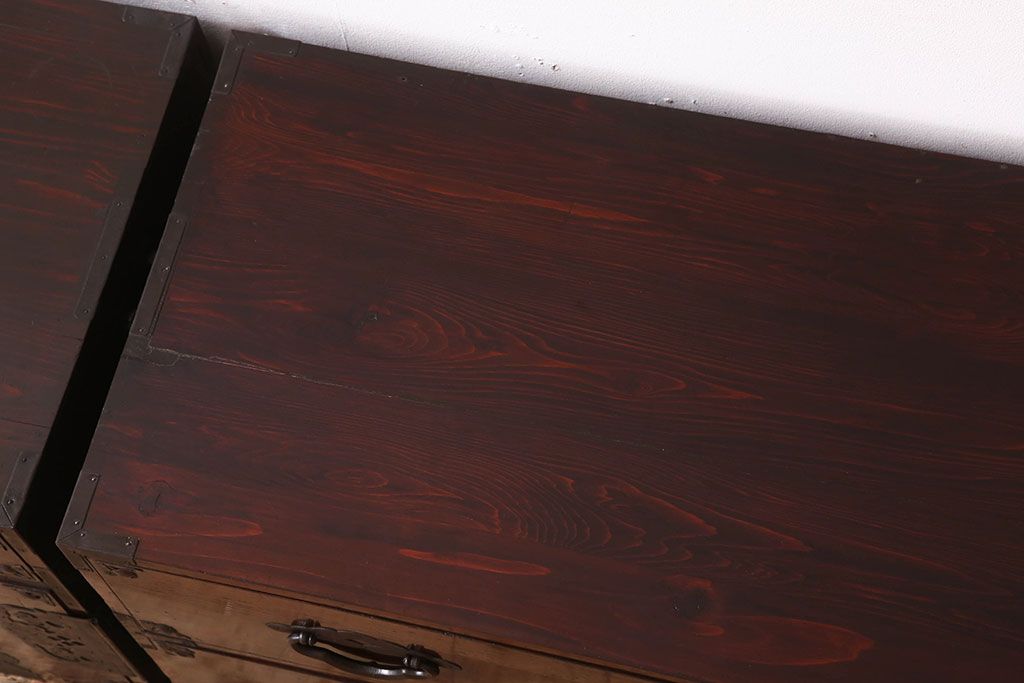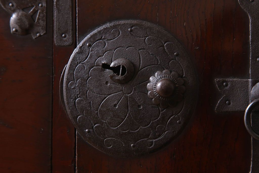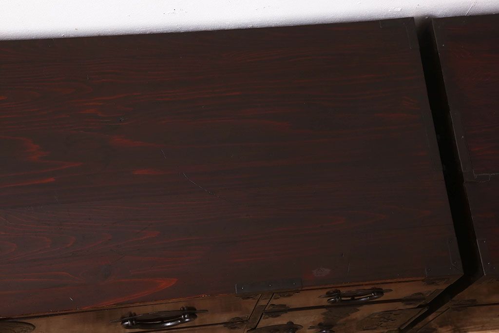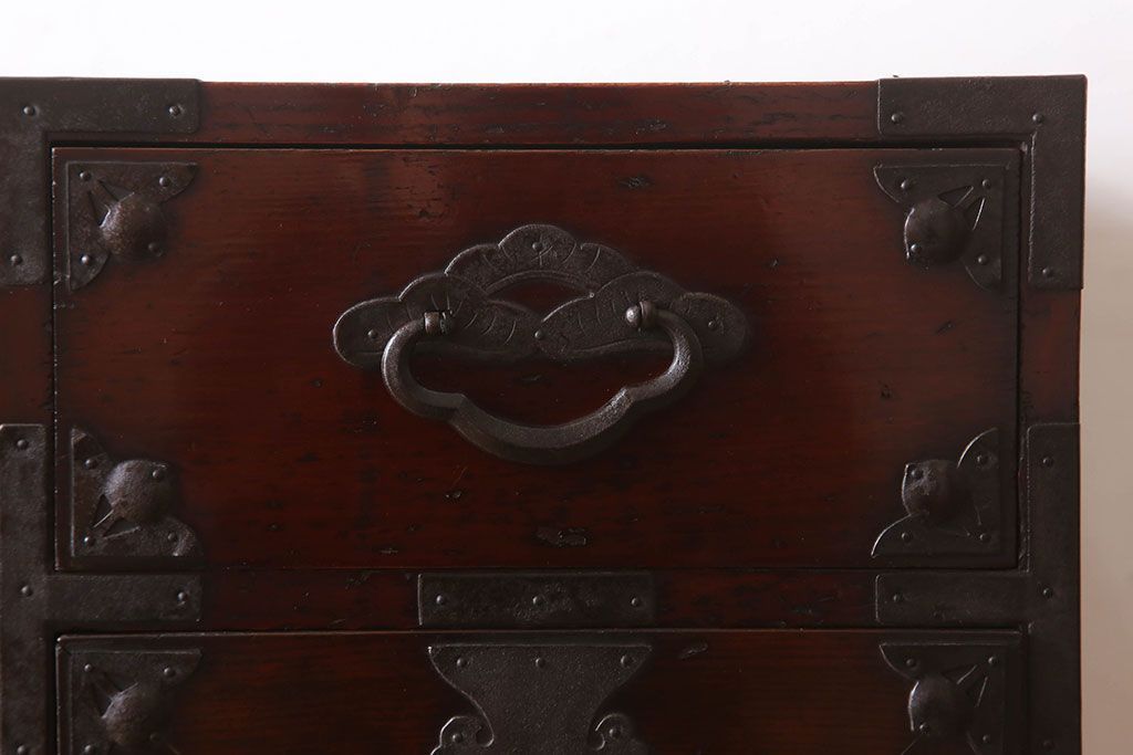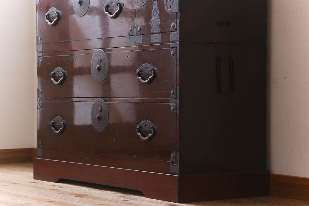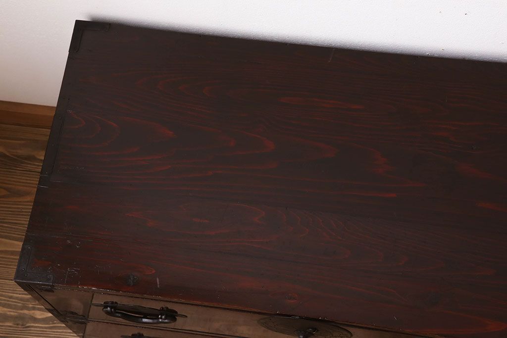 アンティーク家具 古民具・骨董 桜丸金具 前面栗材の米沢箪笥(衣装箪笥)(台輪付き)