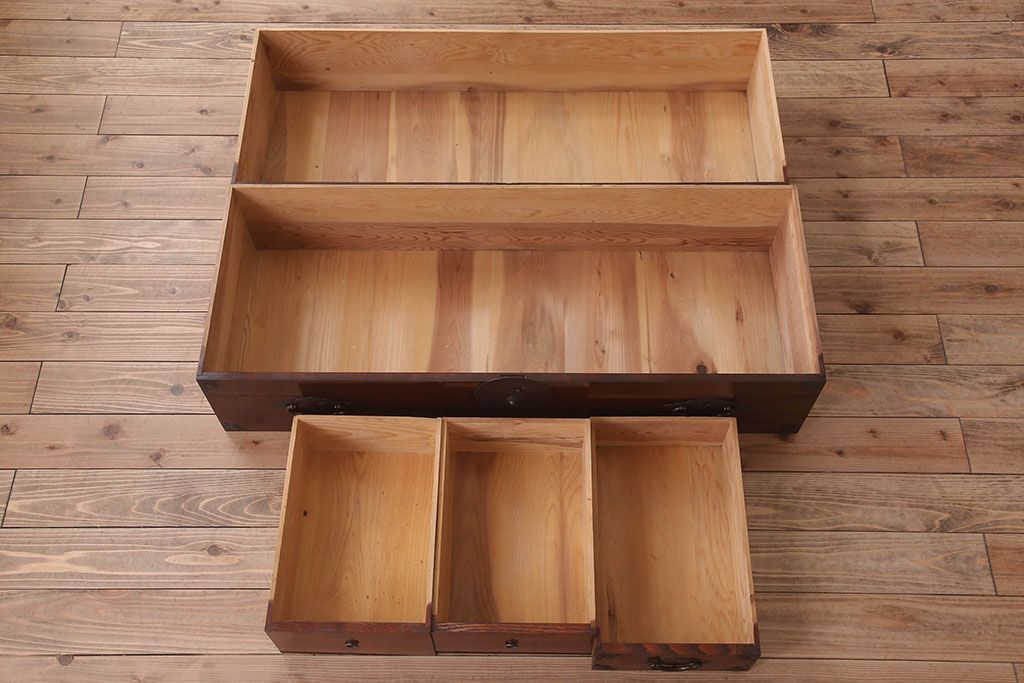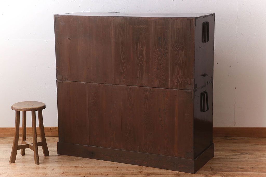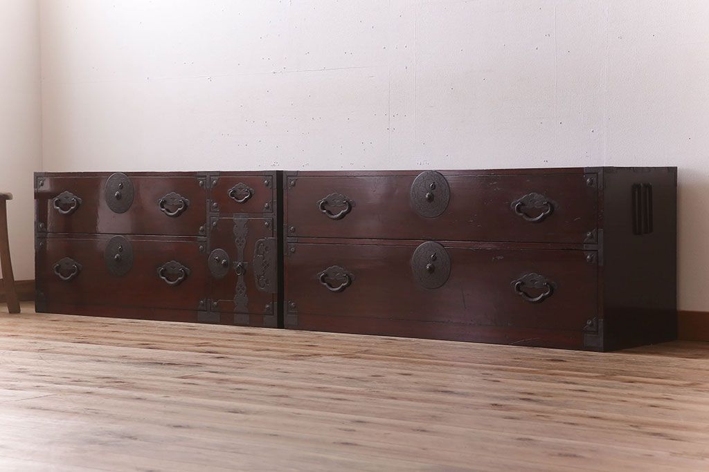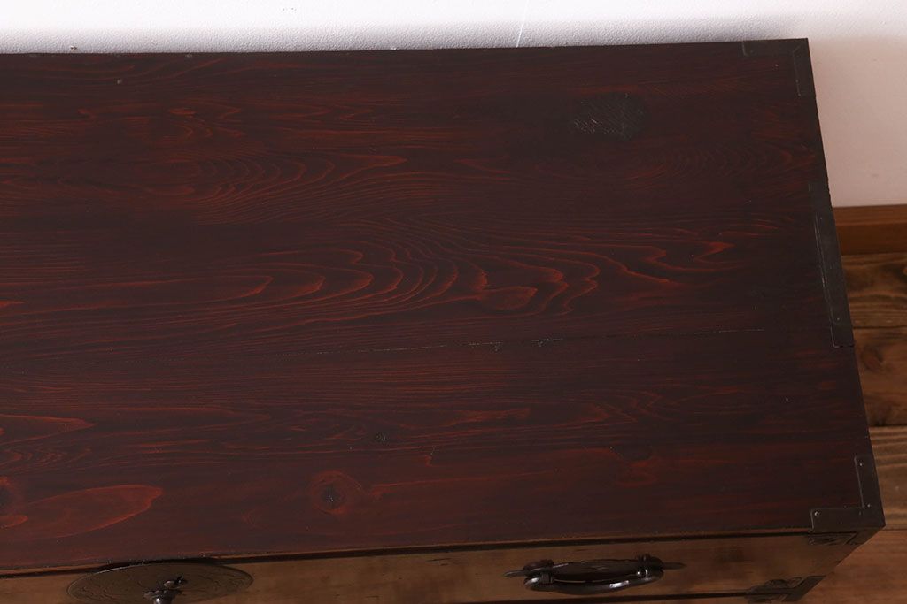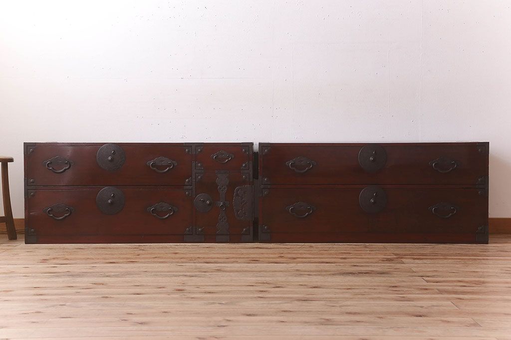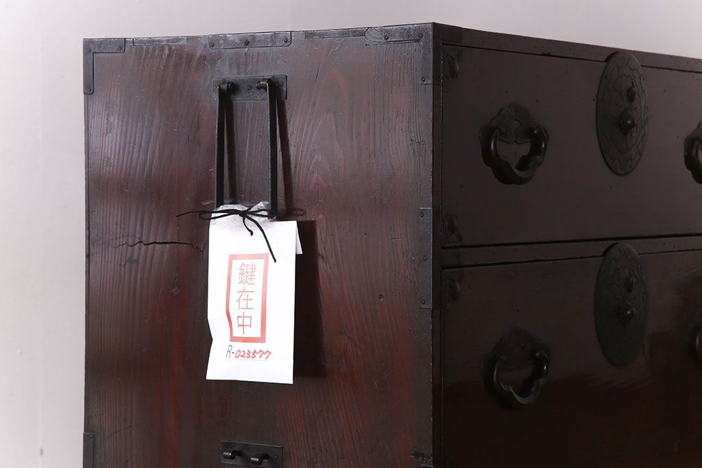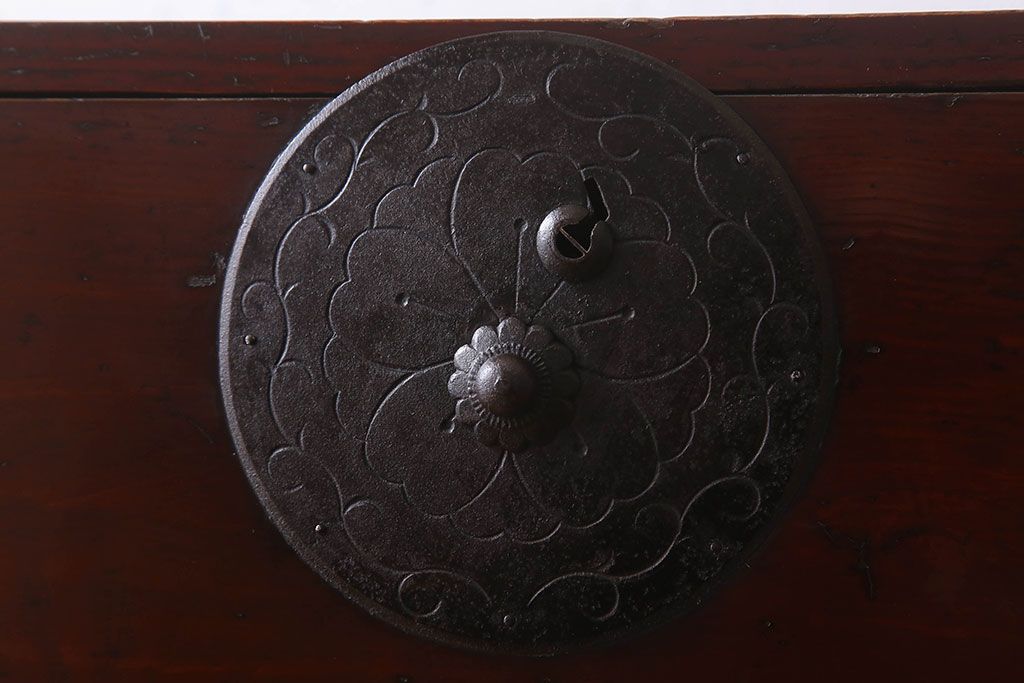 アンティーク家具 古民具・骨董 桜丸金具 前面栗材の米沢箪笥(衣装箪笥)(台輪付き)