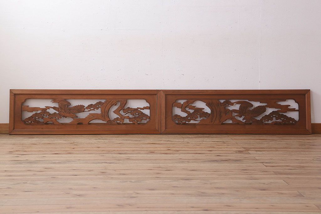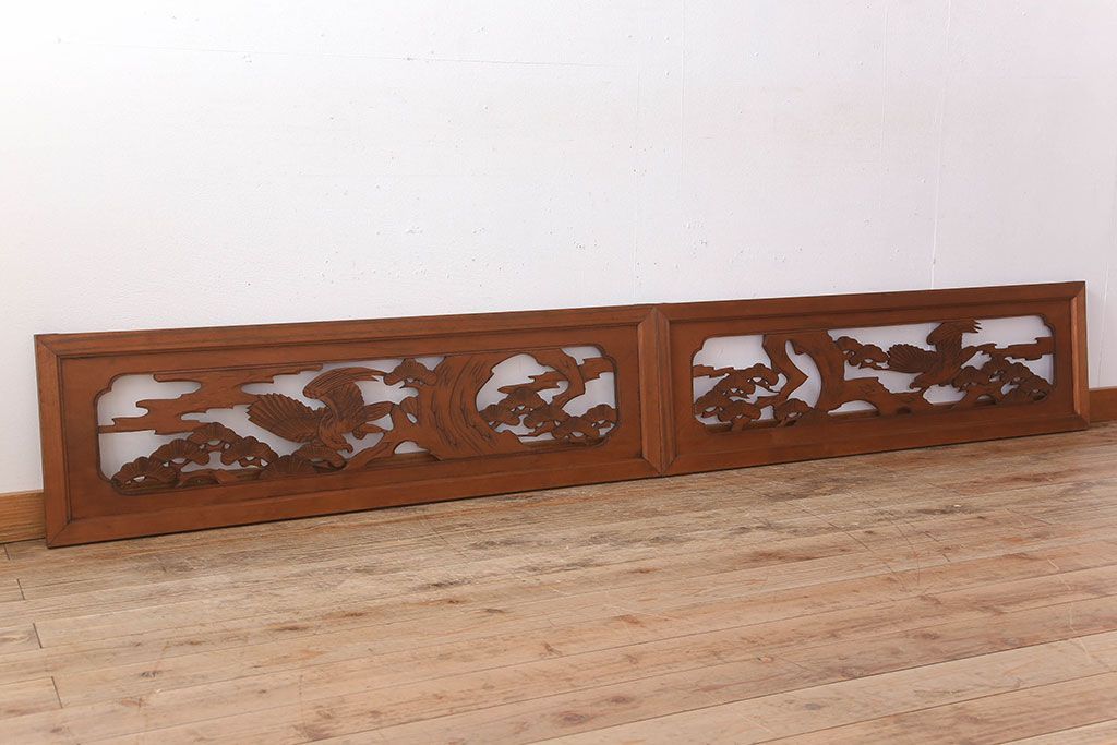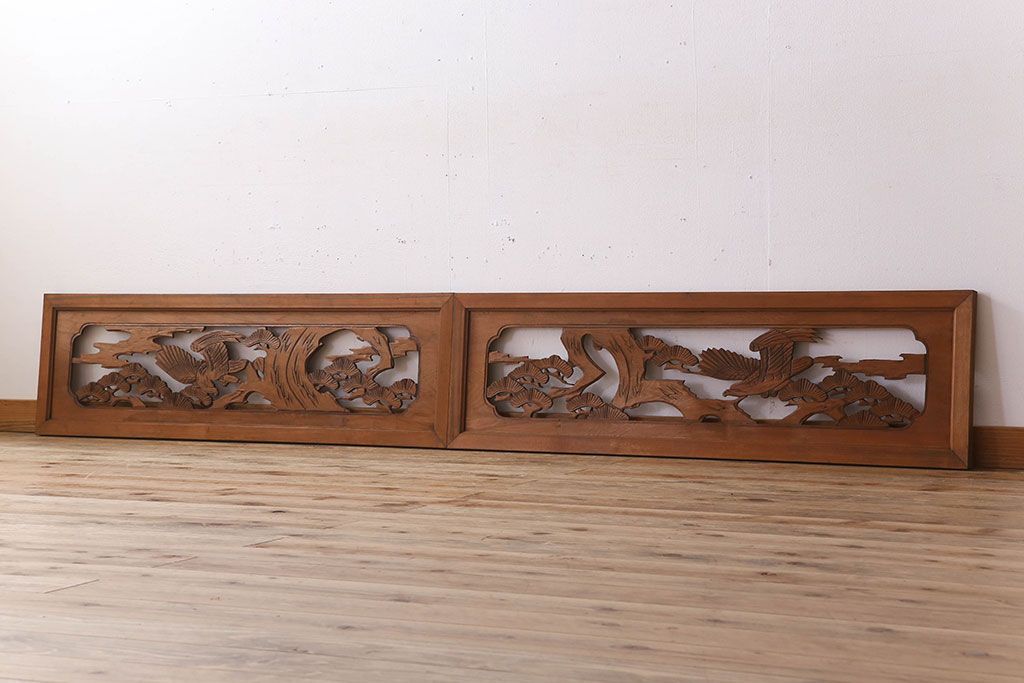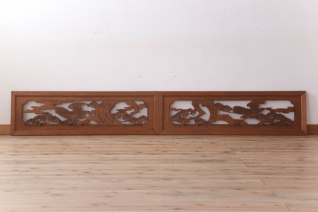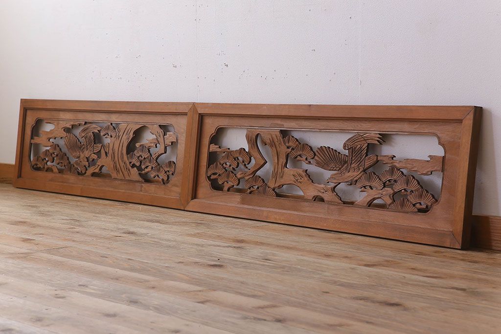 古民具・骨董 彫刻 アンティークの欄間2枚セット(1)