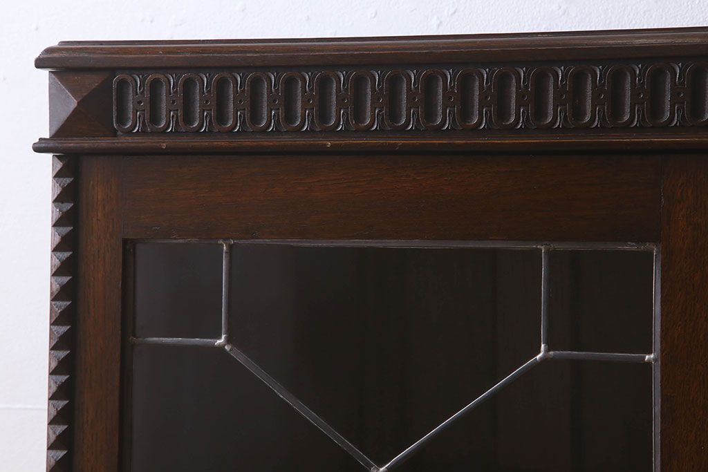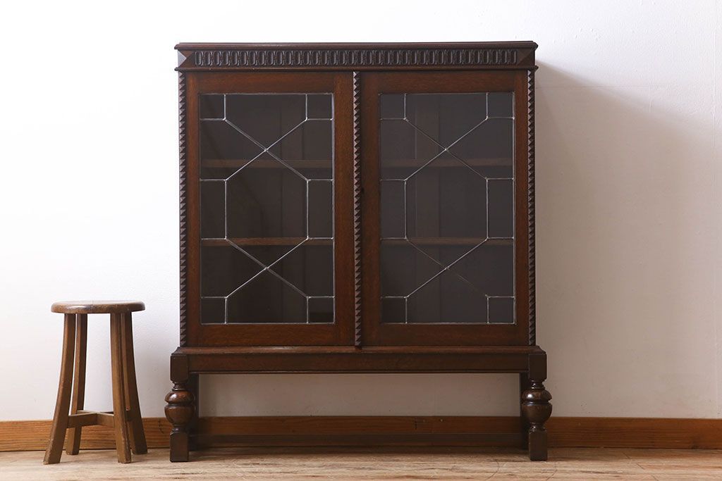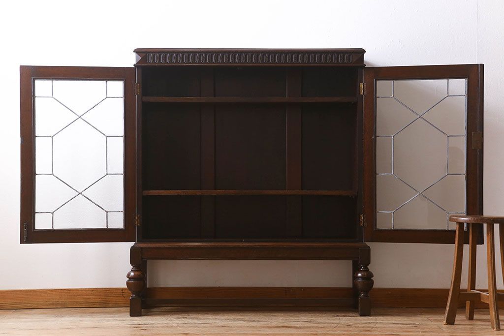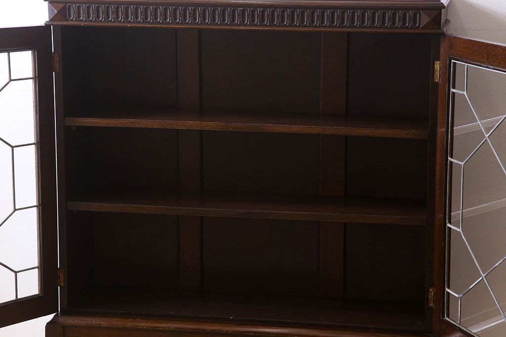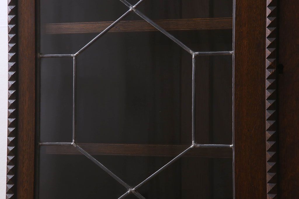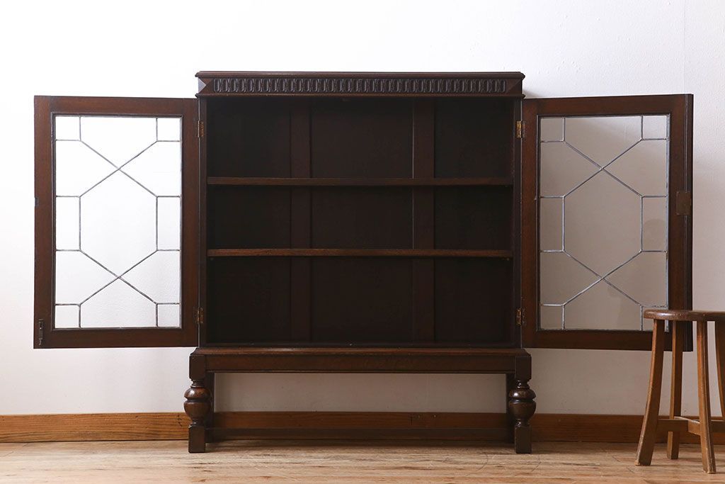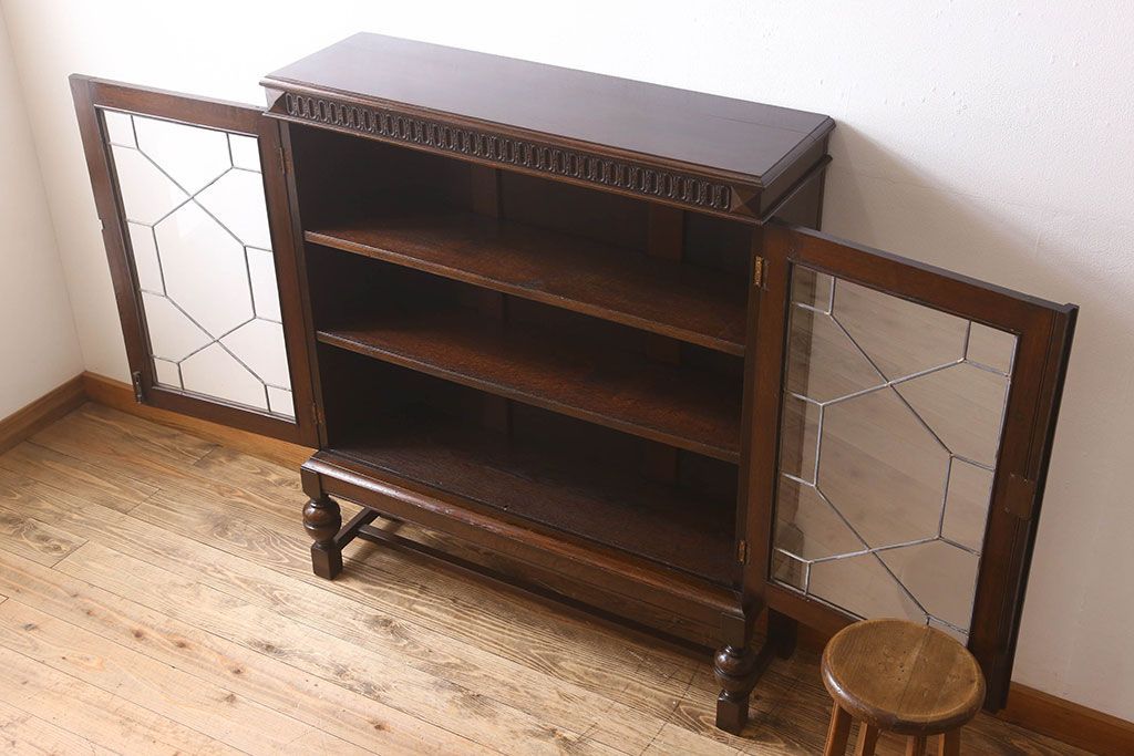 ステンドグラス > アンティーク家具 イギリスアンティーク ステンドグラス扉のブルボーズレッグ本箱(ブックケース・収納棚)(2)