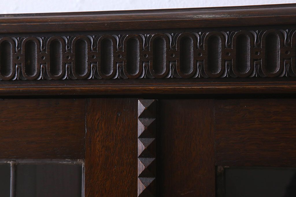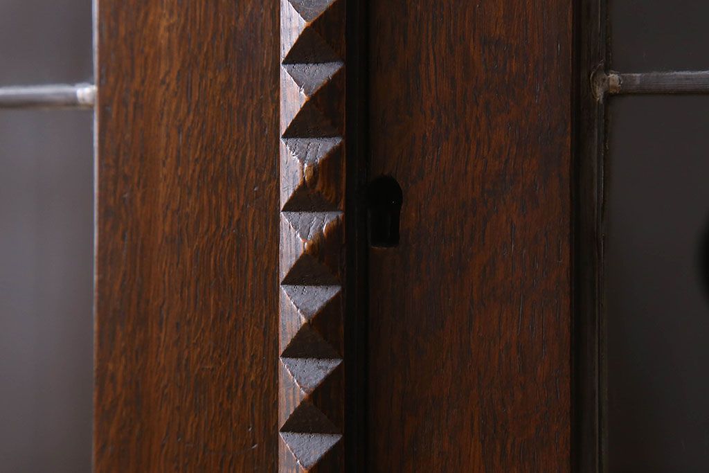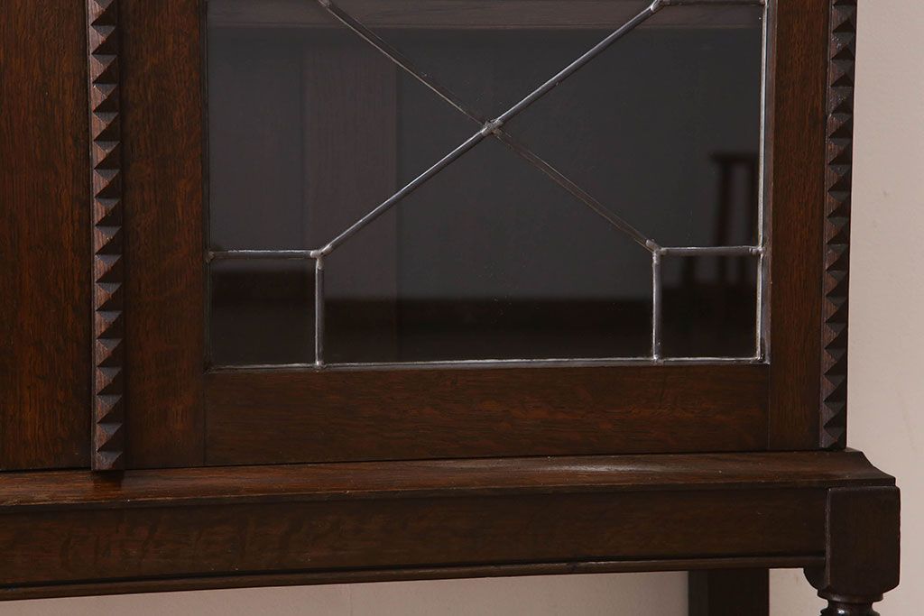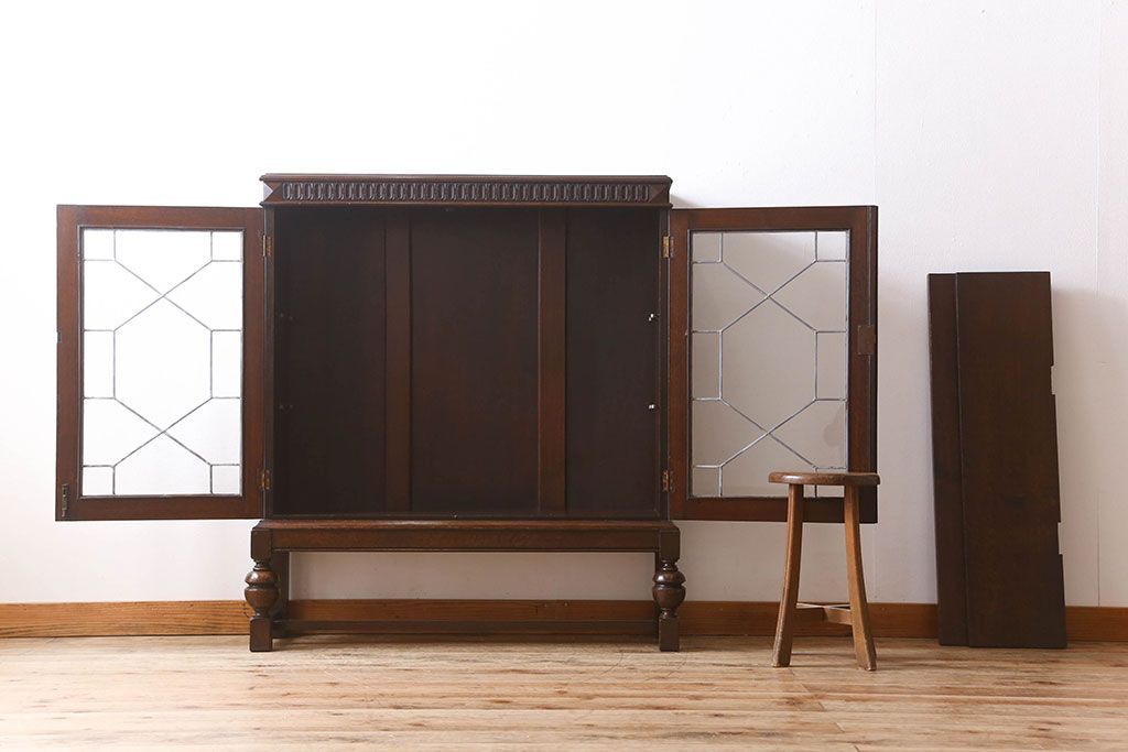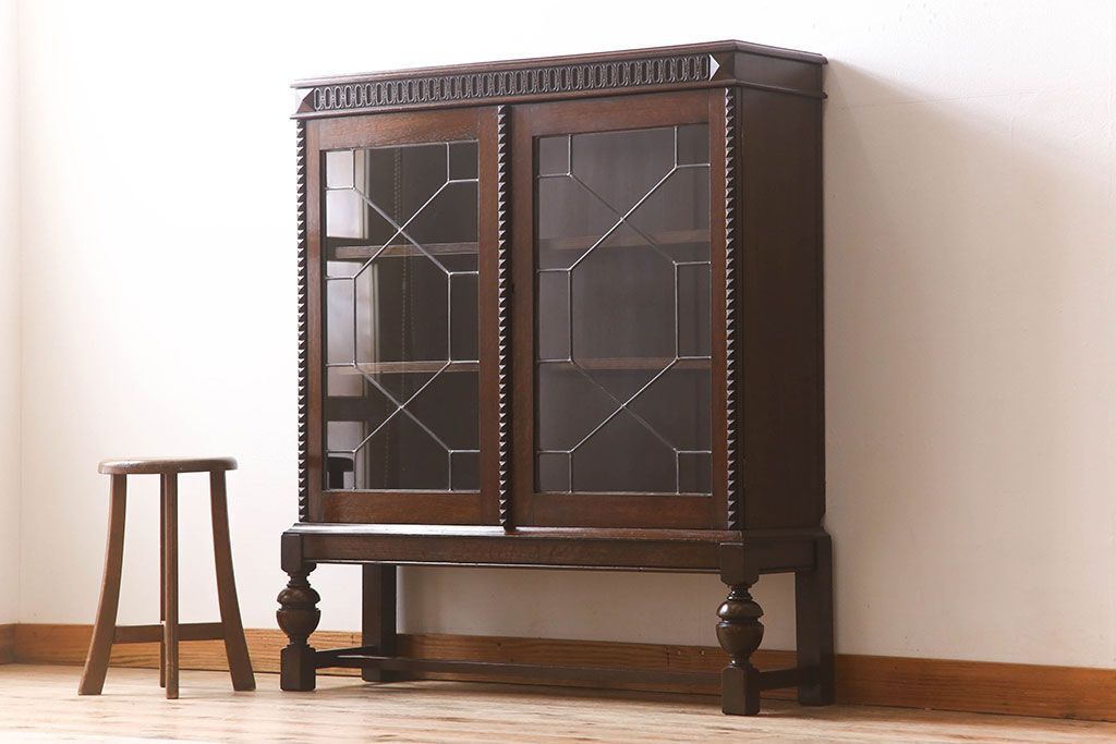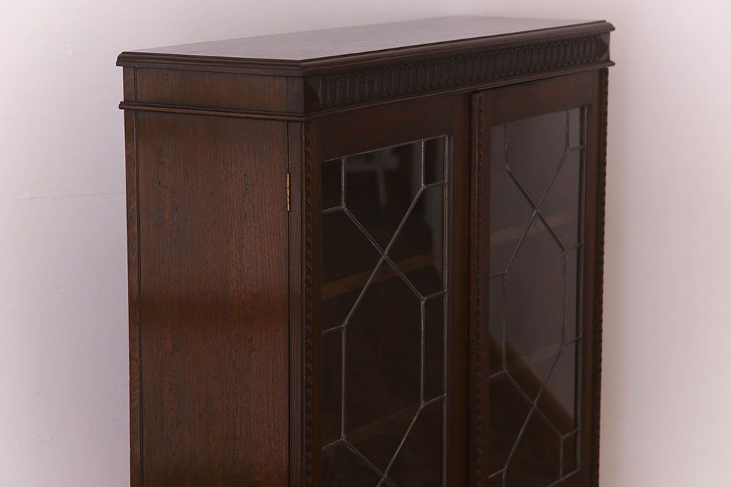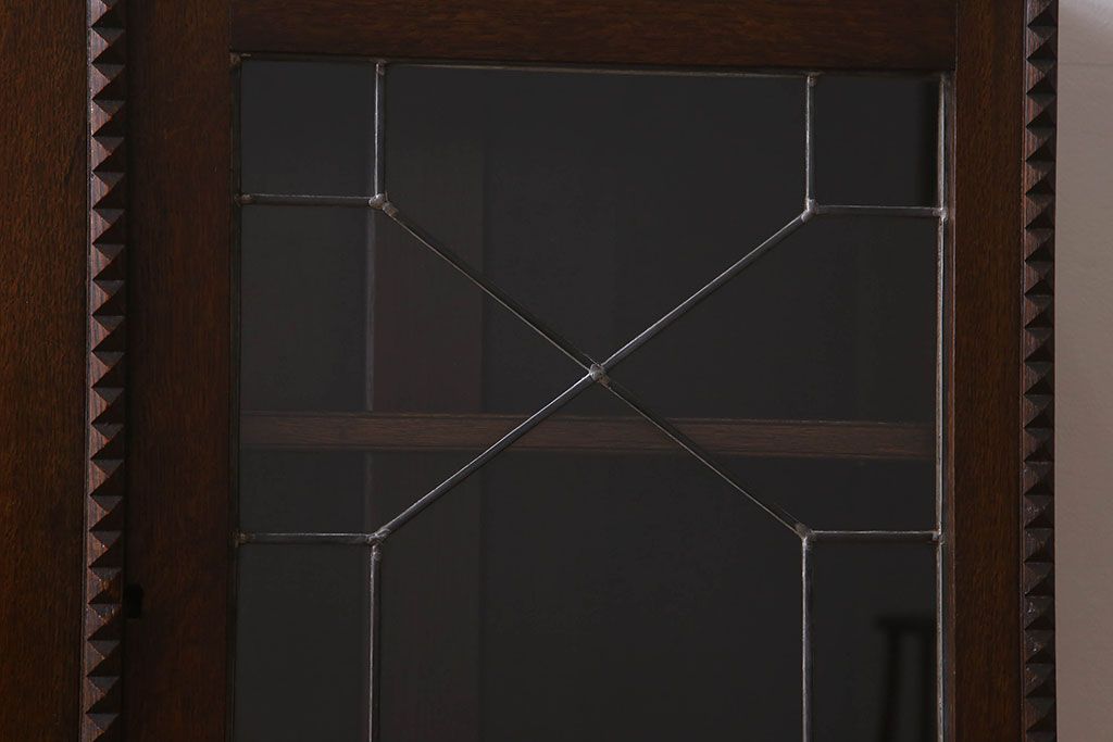 ステンドグラス > アンティーク家具 イギリスアンティーク ステンドグラス扉のブルボーズレッグ本箱(ブックケース・収納棚)(2)
