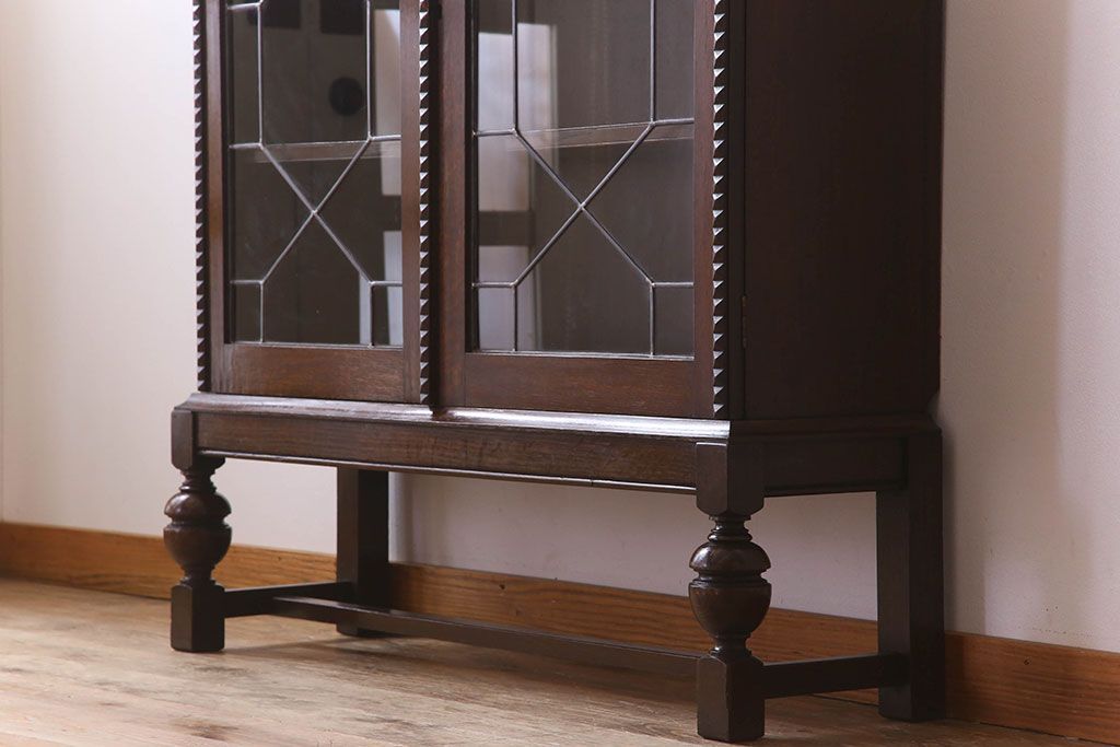 キャビネット・戸棚> 本箱 > アンティーク家具 イギリスアンティーク ステンドグラス扉のブルボーズレッグ本箱(ブックケース・収納棚)(2)