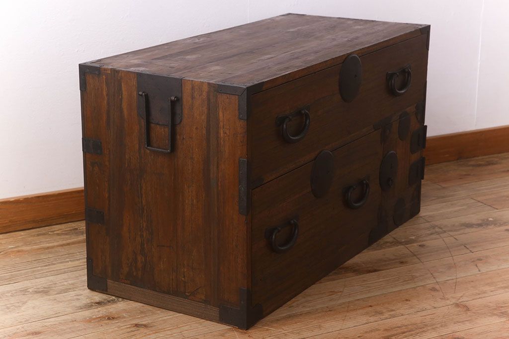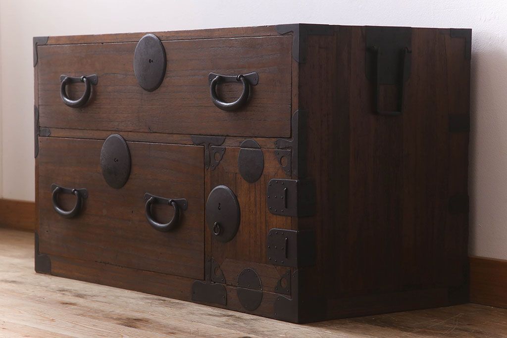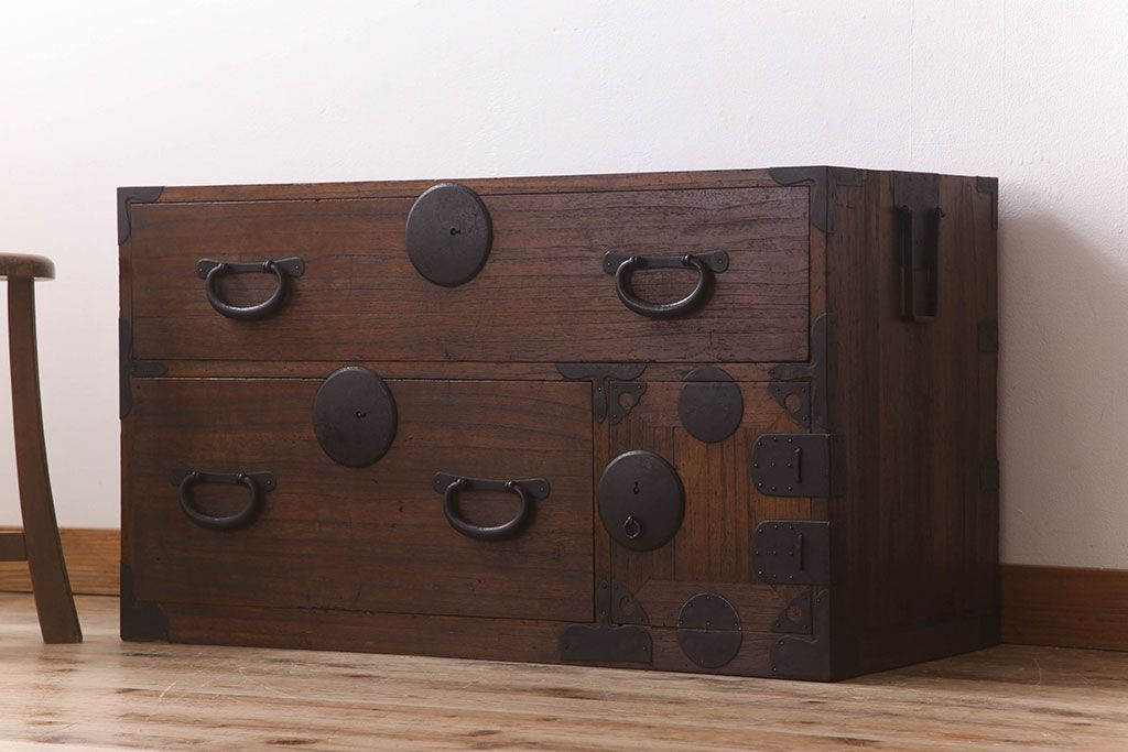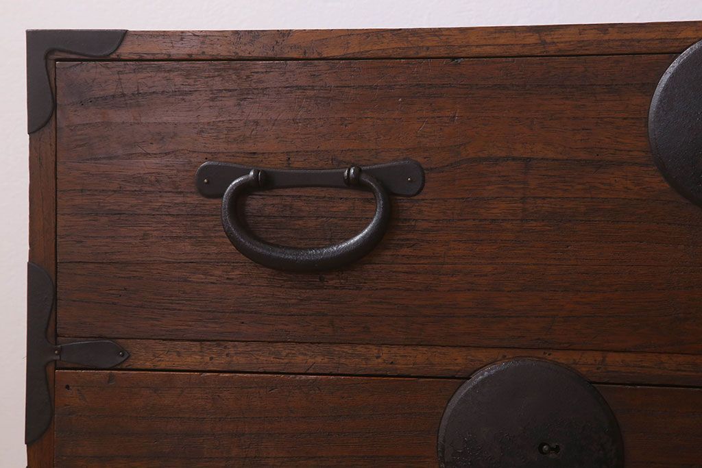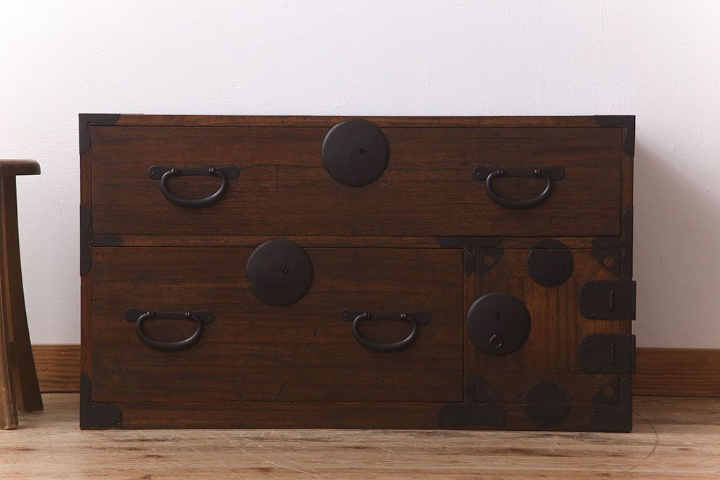 アンティーク家具 和製アンティーク 前面桐材!シンプルな丸金具の時代箪笥ローボード(衣装箪笥)