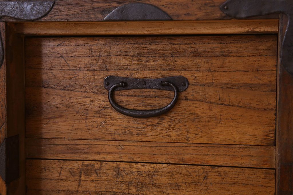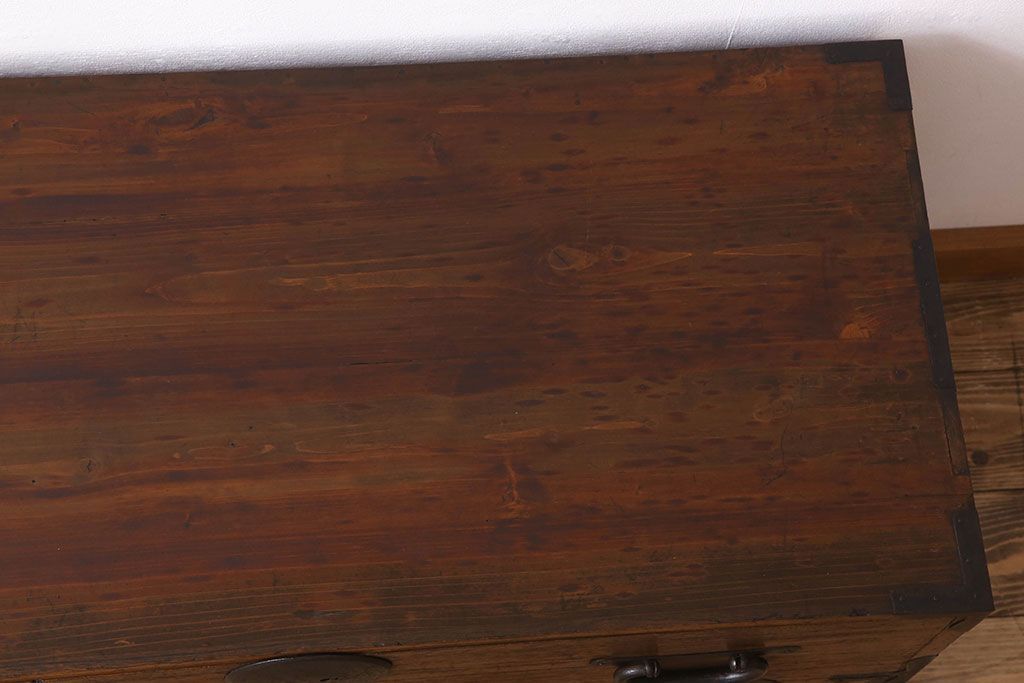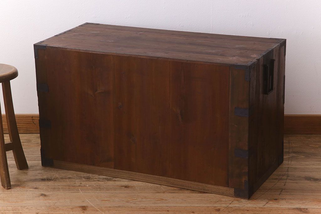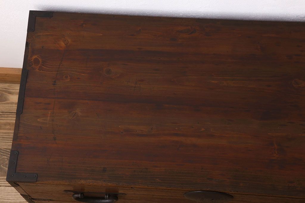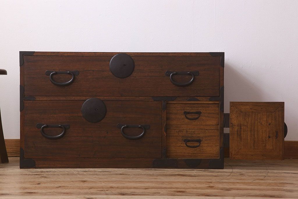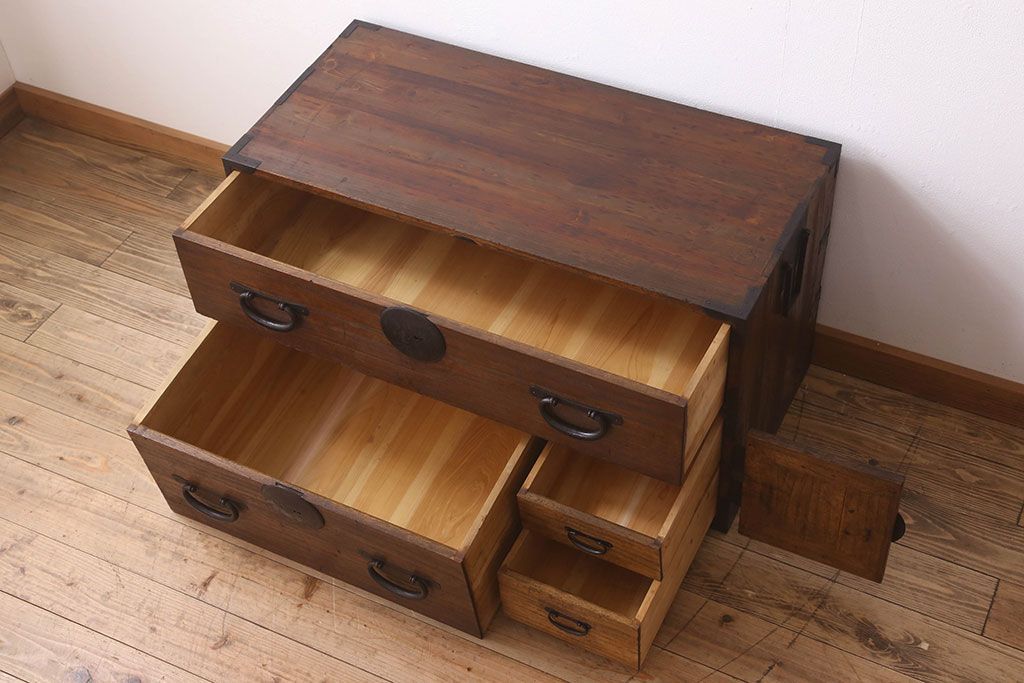 アンティーク家具 和製アンティーク 前面桐材!シンプルな丸金具の時代箪笥ローボード(衣装箪笥)
