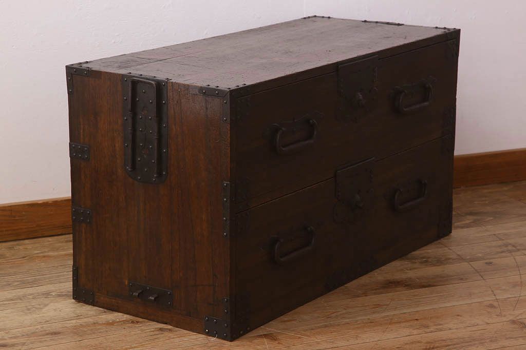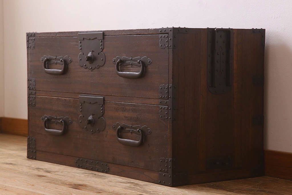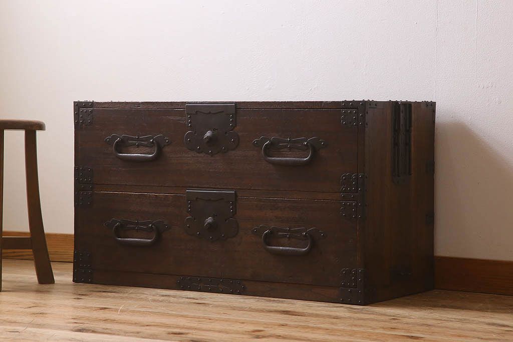 アンティーク家具 厚手金具 古民具・骨董 アンティーク衣装箪笥ローボード(時代箪笥)