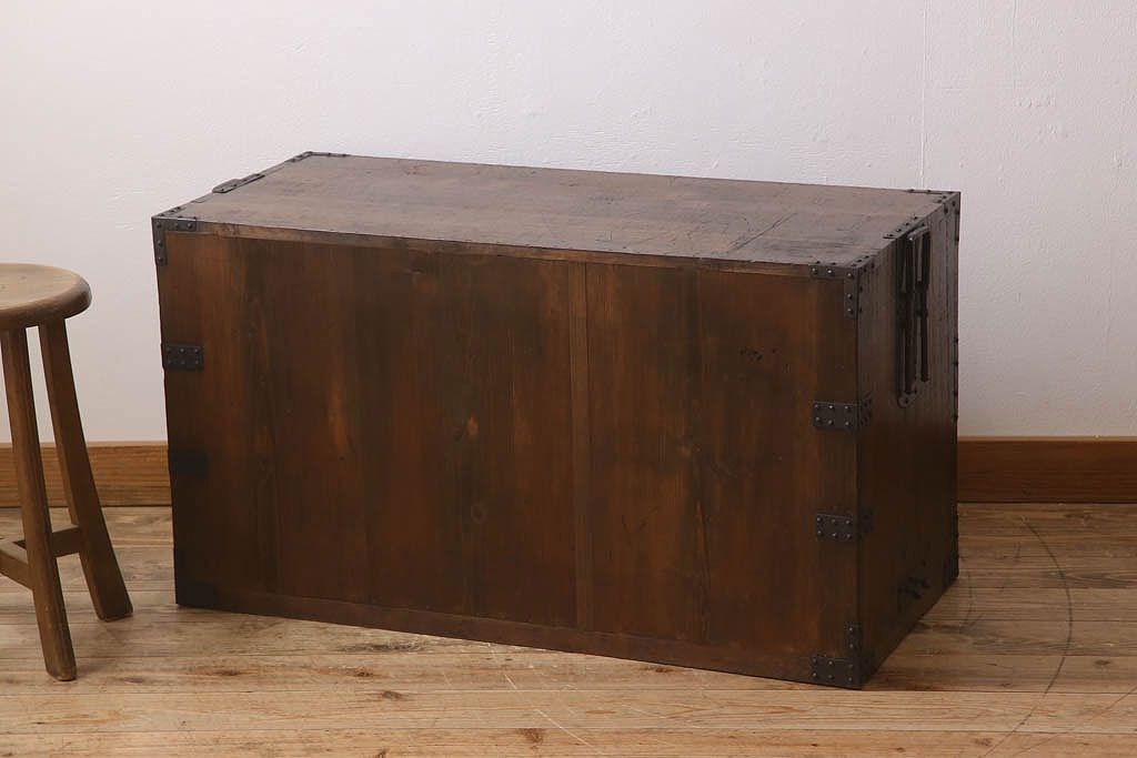 ラフジュ工房> キャビネット・戸棚> テレビ台・ローボード > アンティーク家具 厚手金具 古民具・骨董 アンティーク衣装箪笥ローボード(時代箪笥)