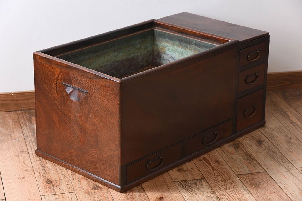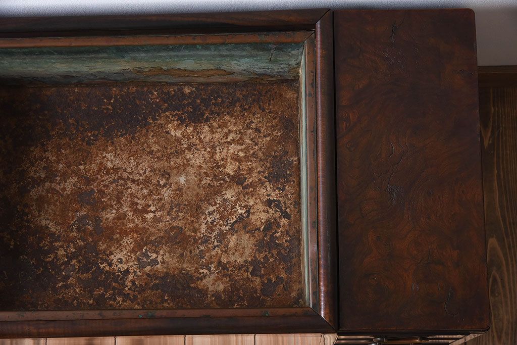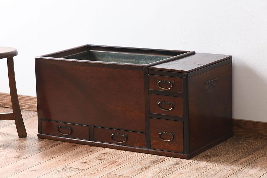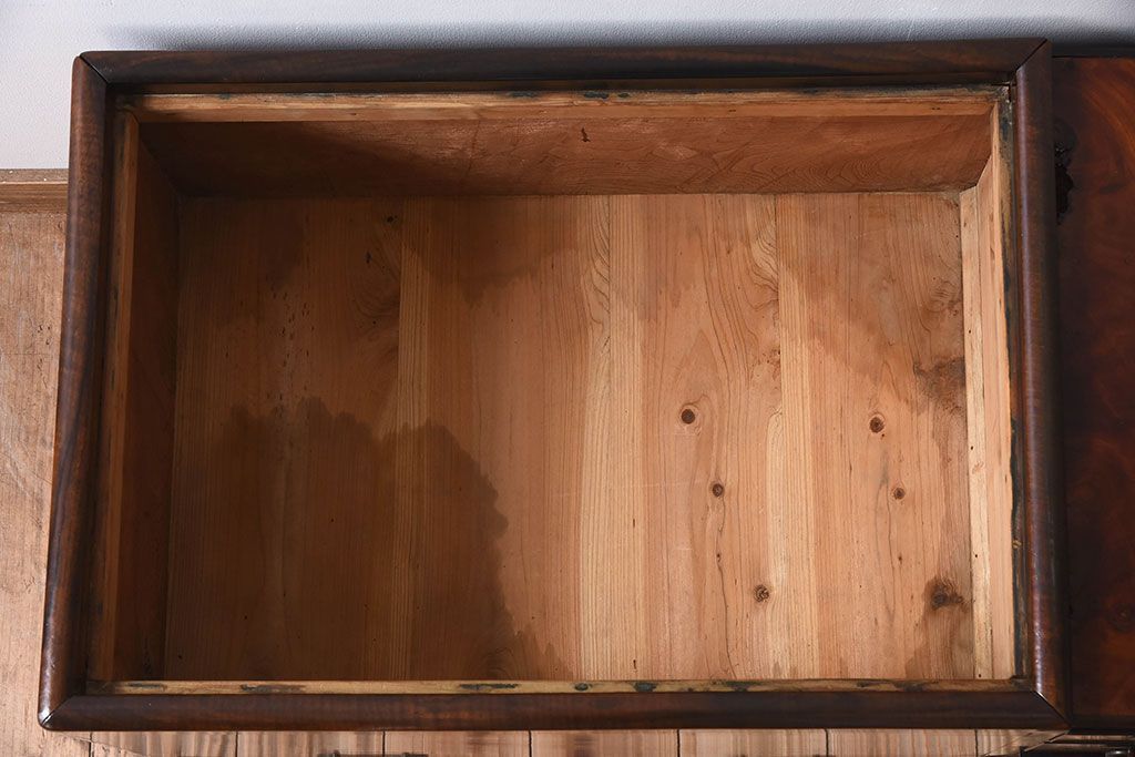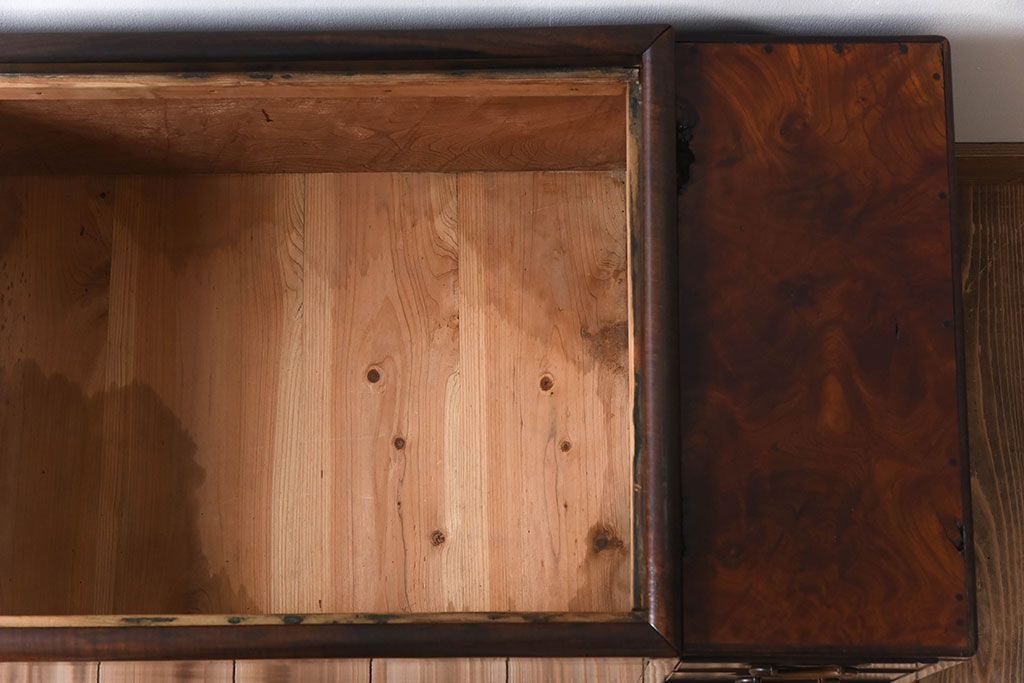 アンティーク雑貨 玉杢 総欅材 明治大正期 アンティーク長火鉢