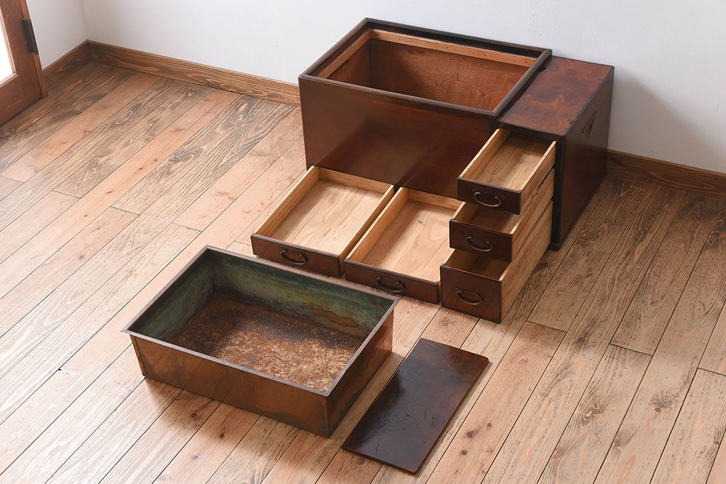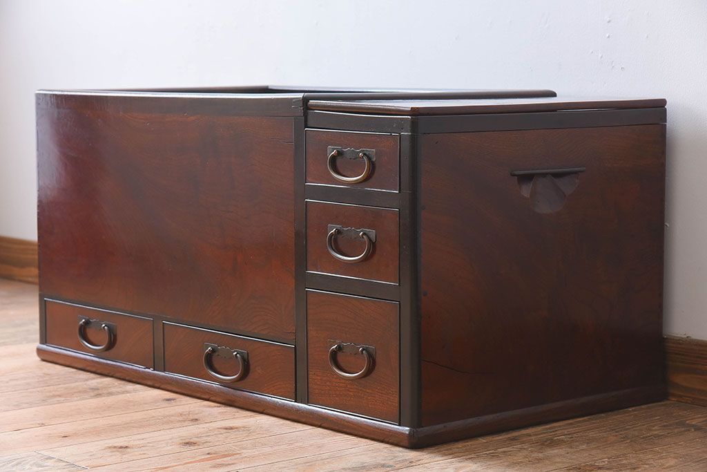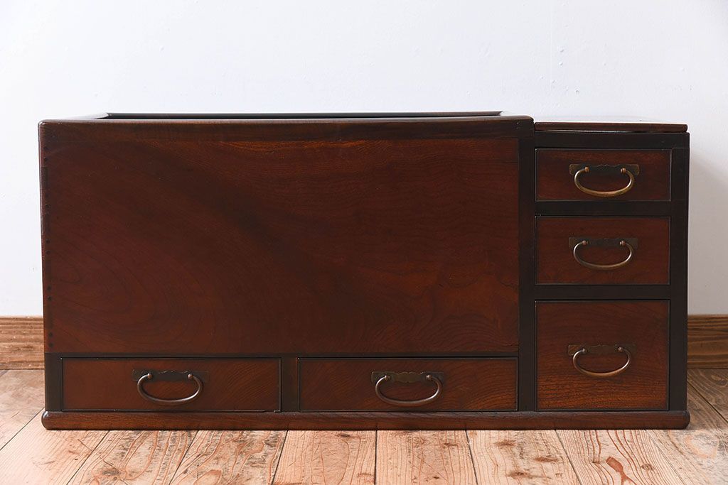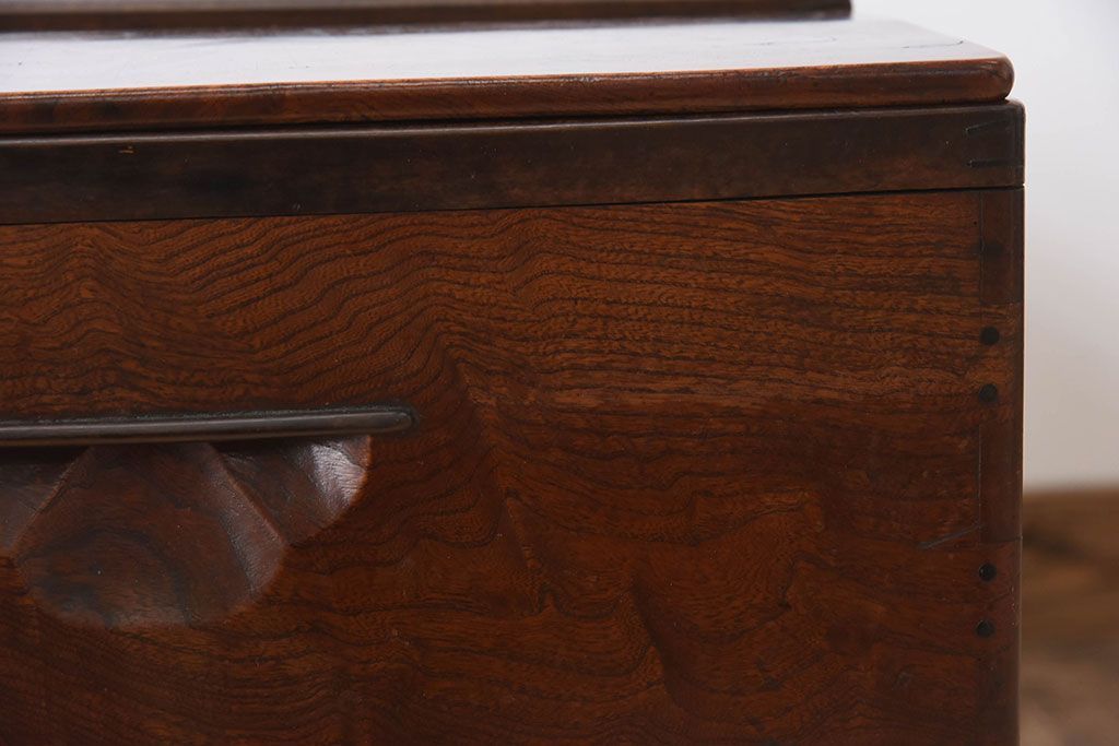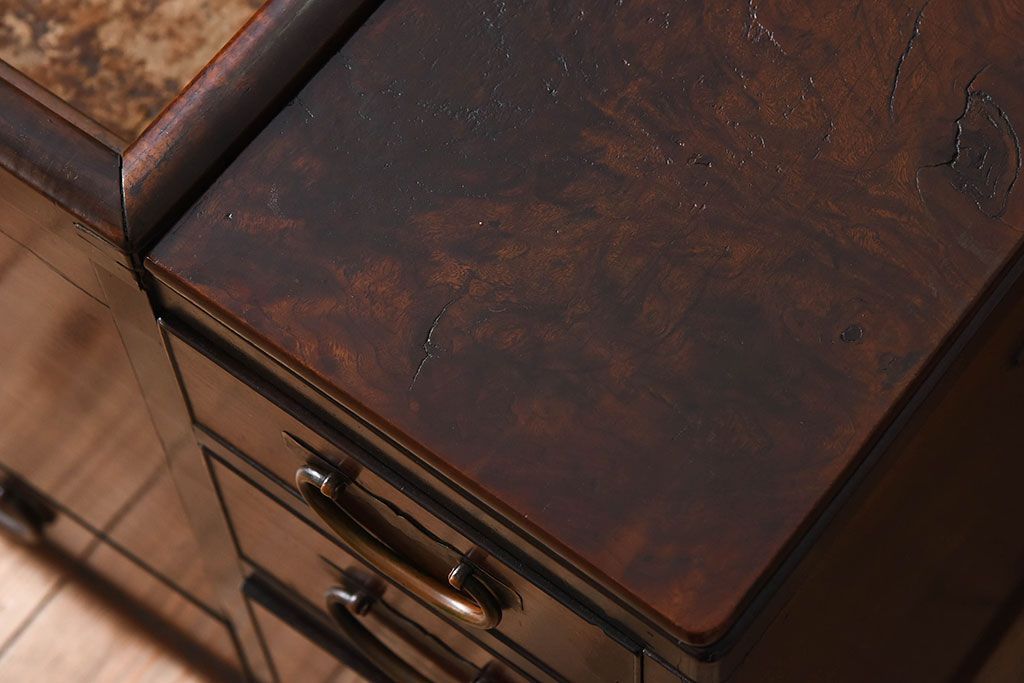 アンティーク雑貨 玉杢 総欅材 明治大正期 アンティーク長火鉢