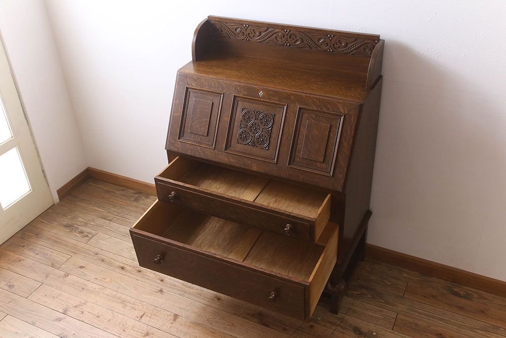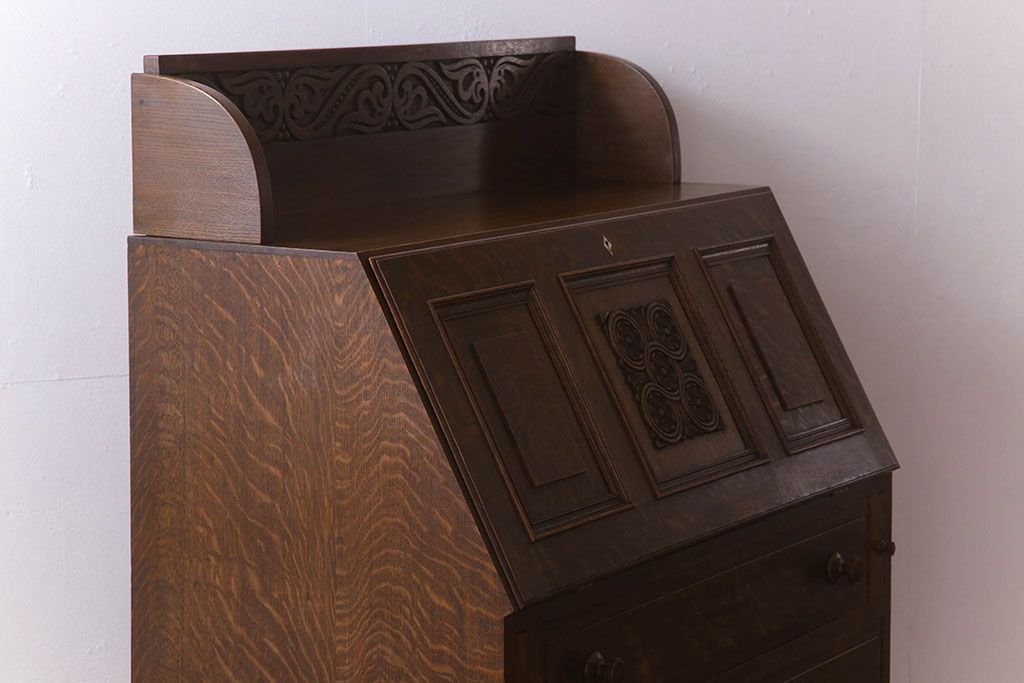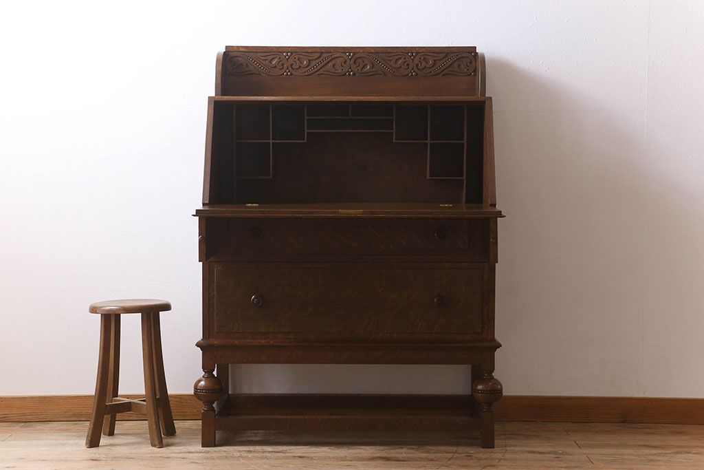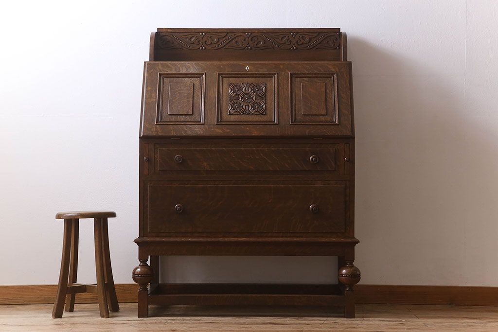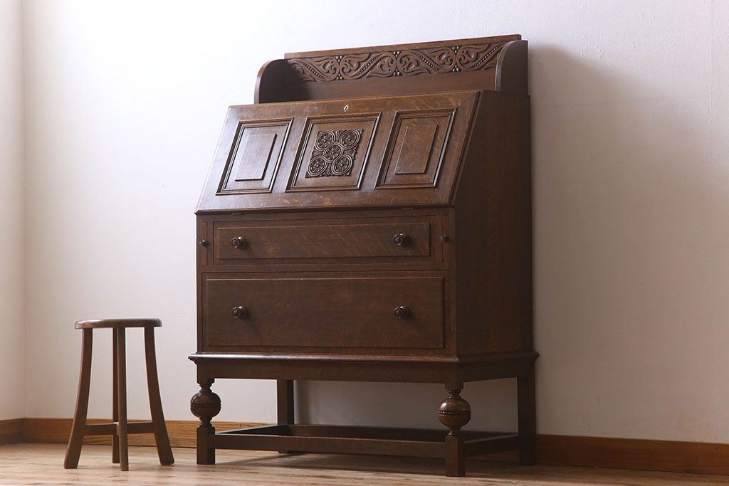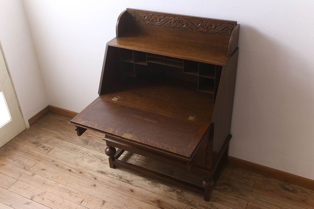 アンティーク家具 イギリスアンティーク 彫刻入り!上質なオーク材製のライティングビューロー
