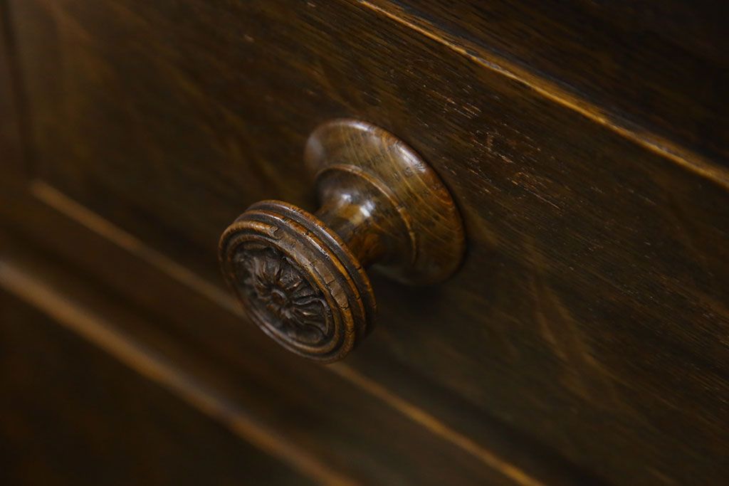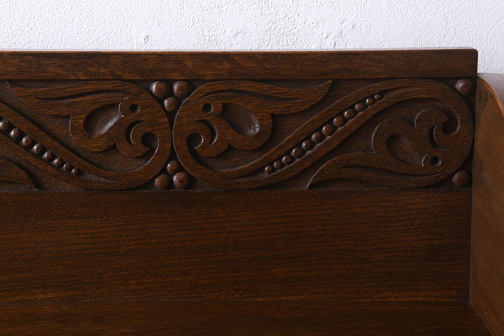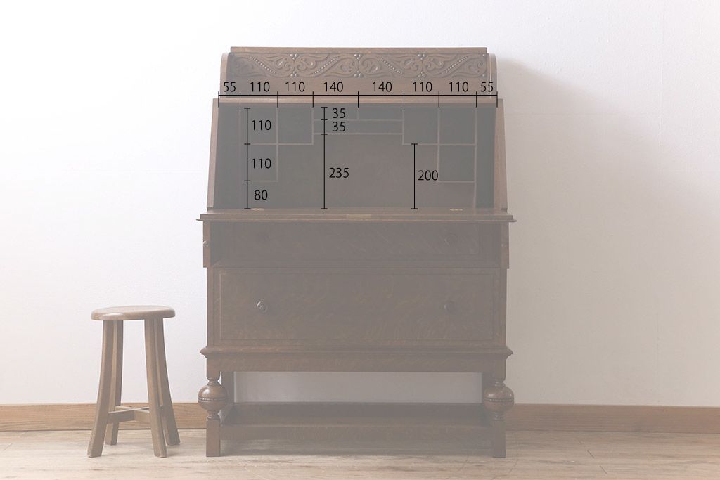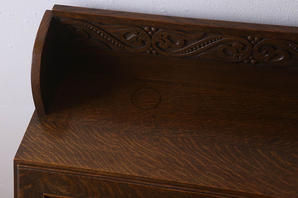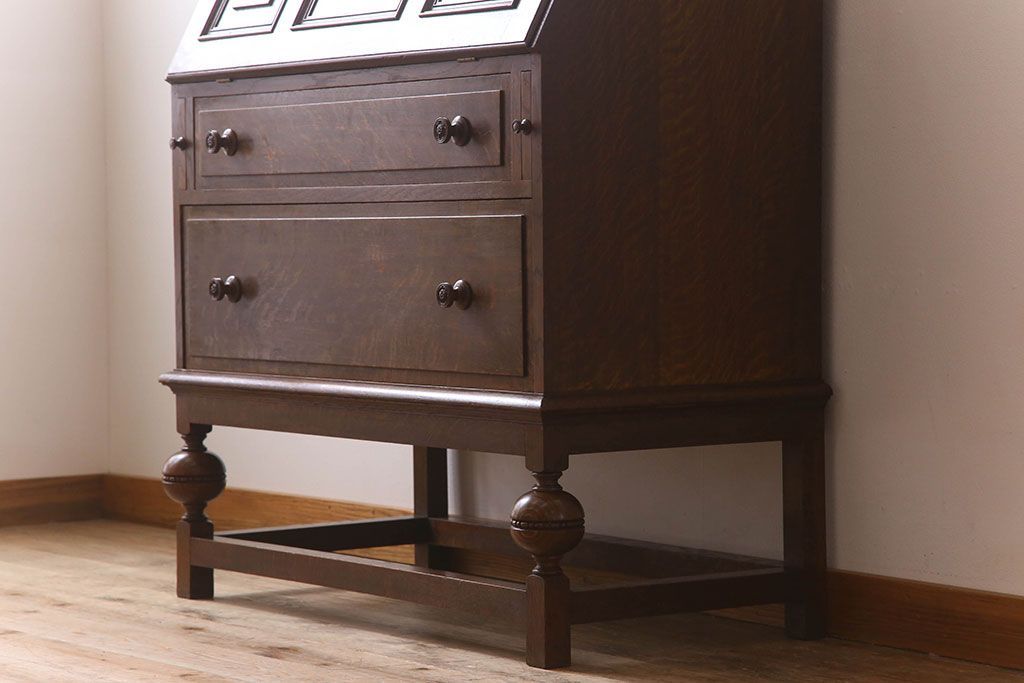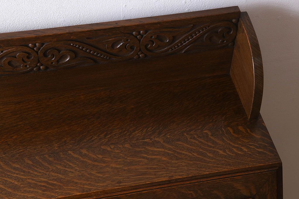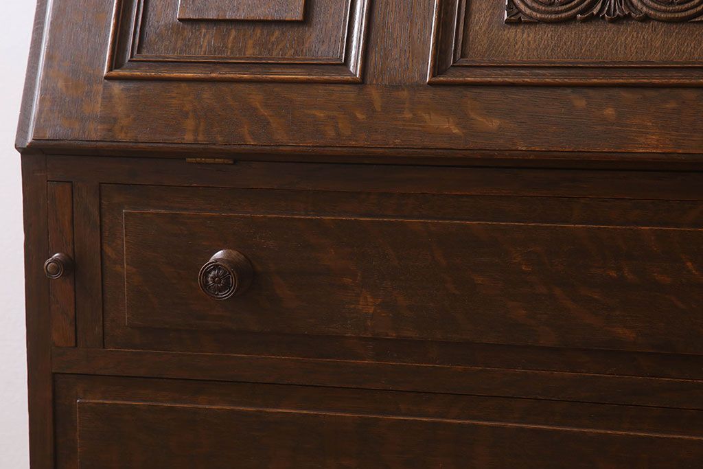 アンティーク家具 イギリスアンティーク 彫刻入り!上質なオーク材製のライティングビューロー